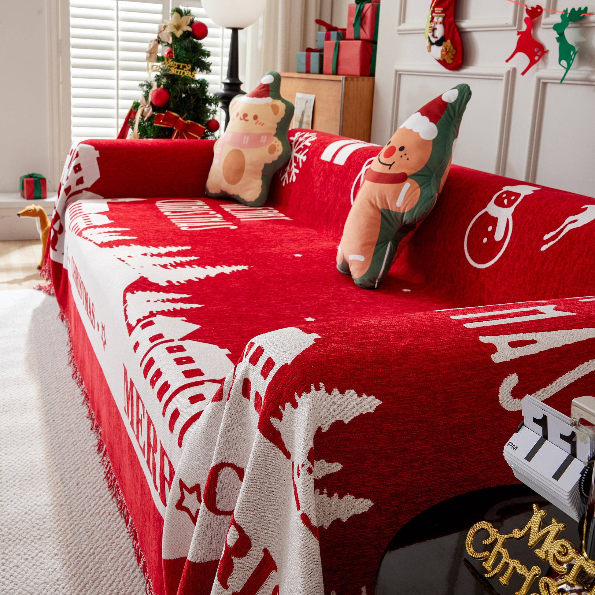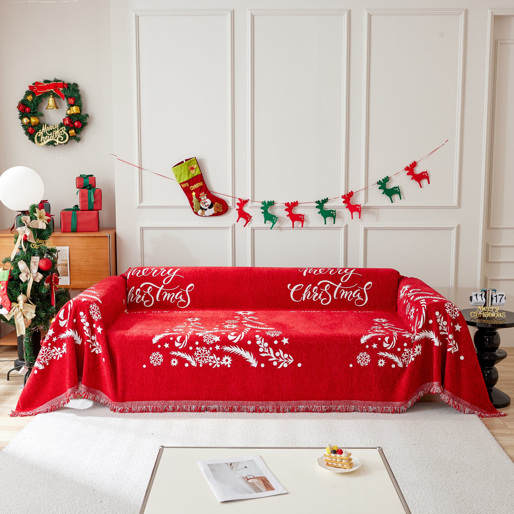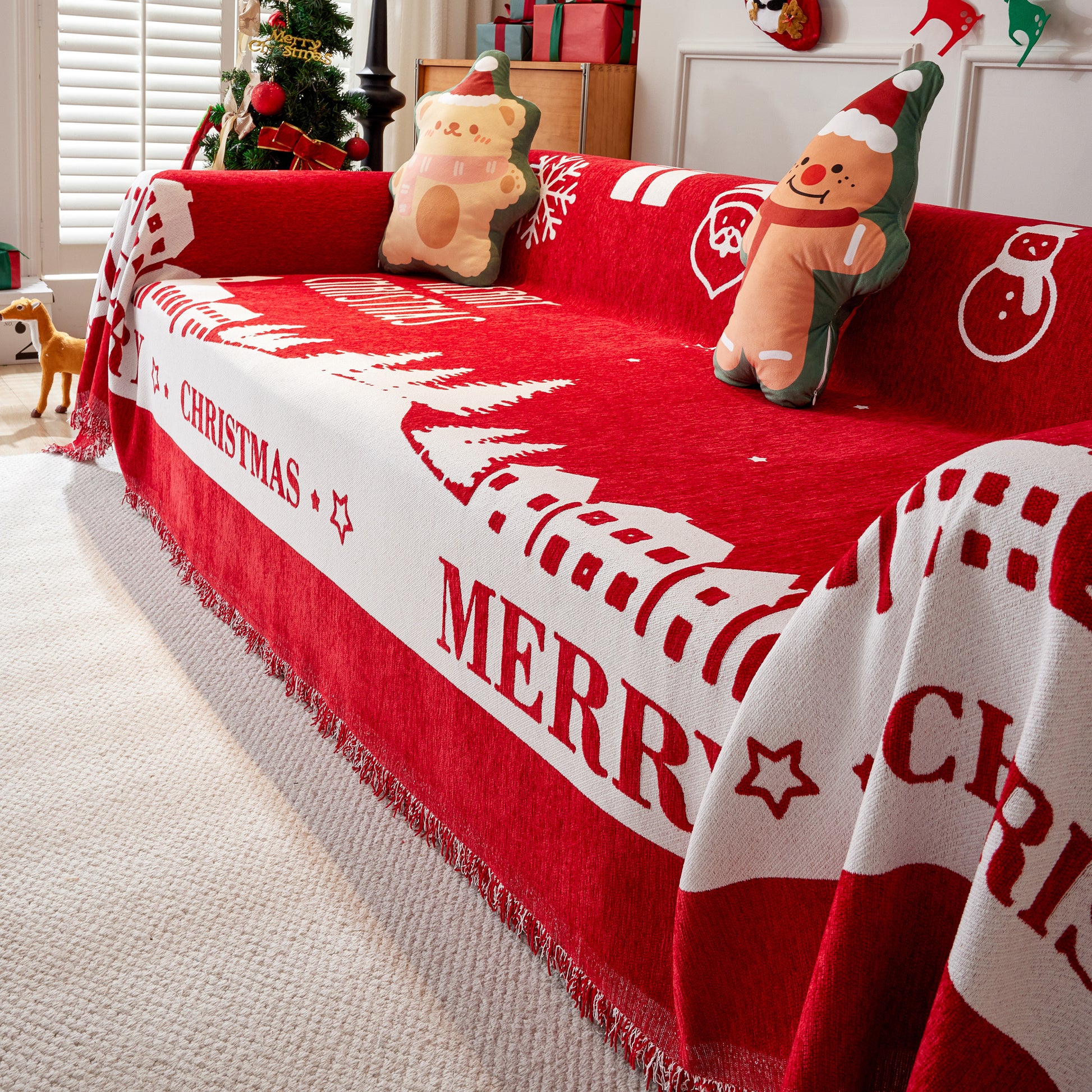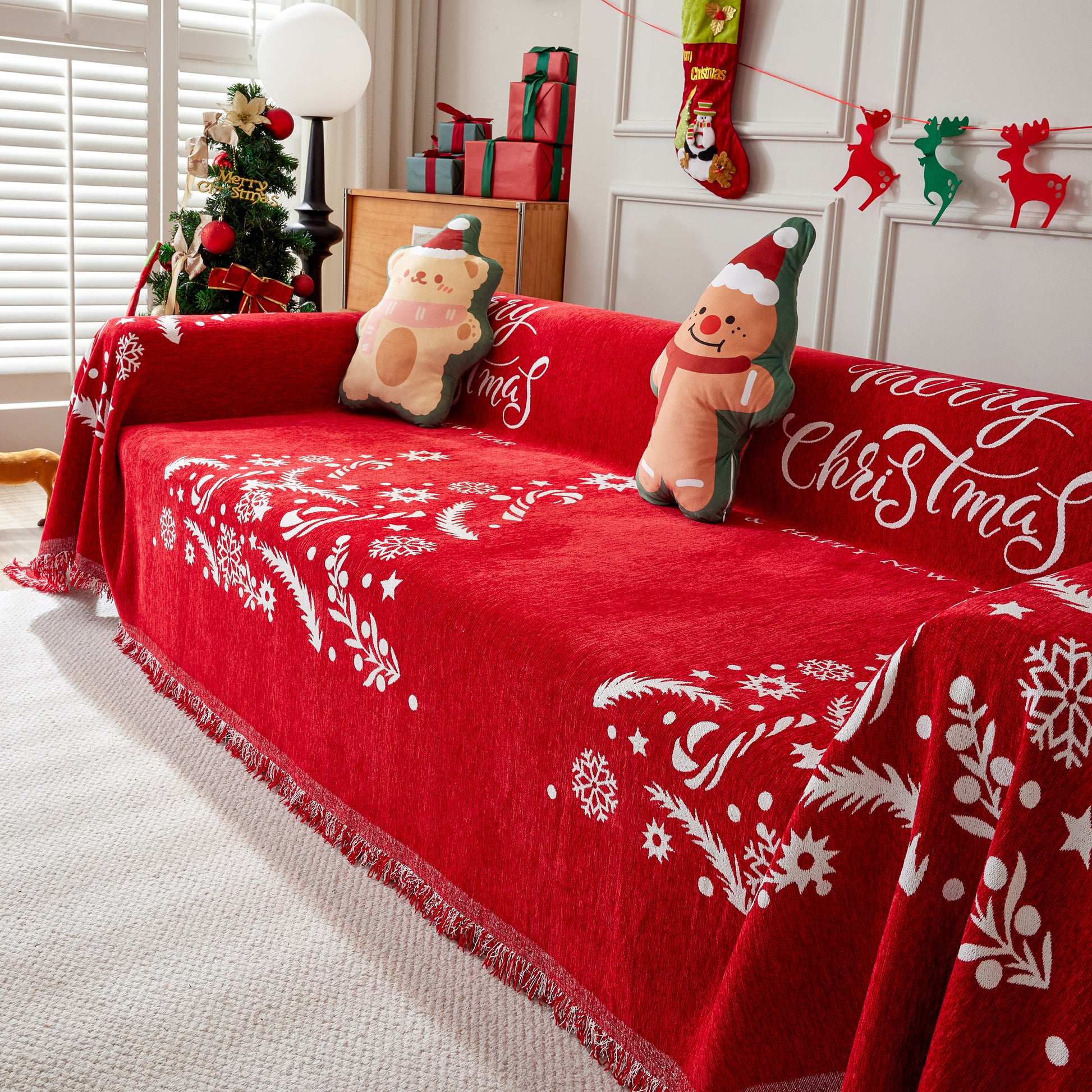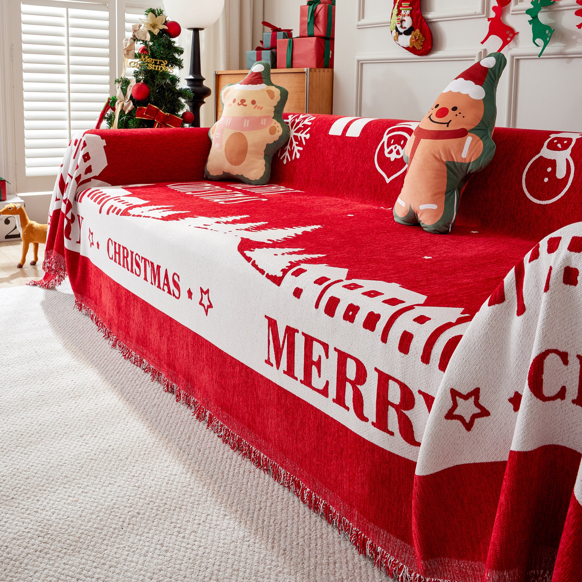 Merry Christmas Cozy Chenille Couch Cover Blanket, Non Slip Sofa Cover, Furniture Covers for Pets