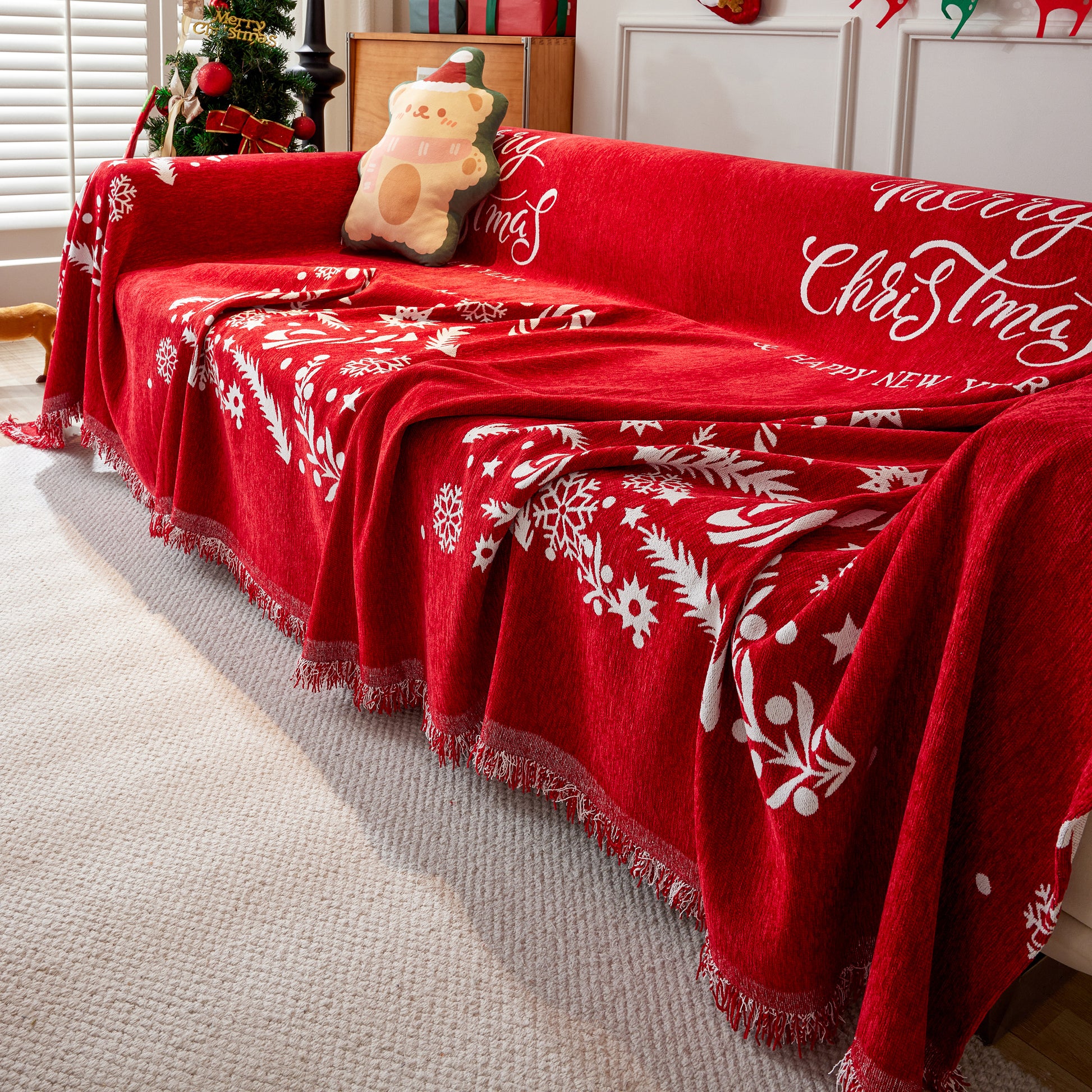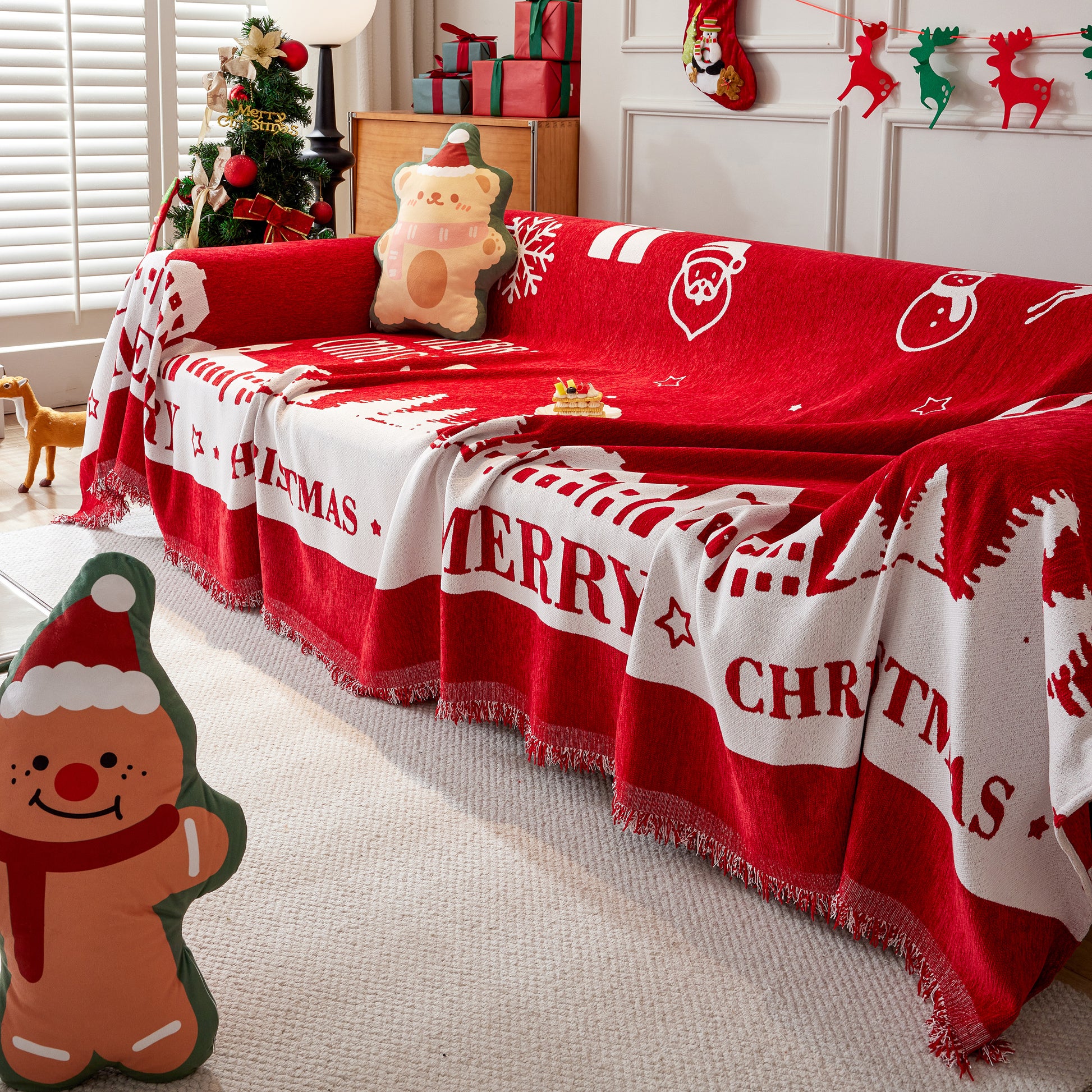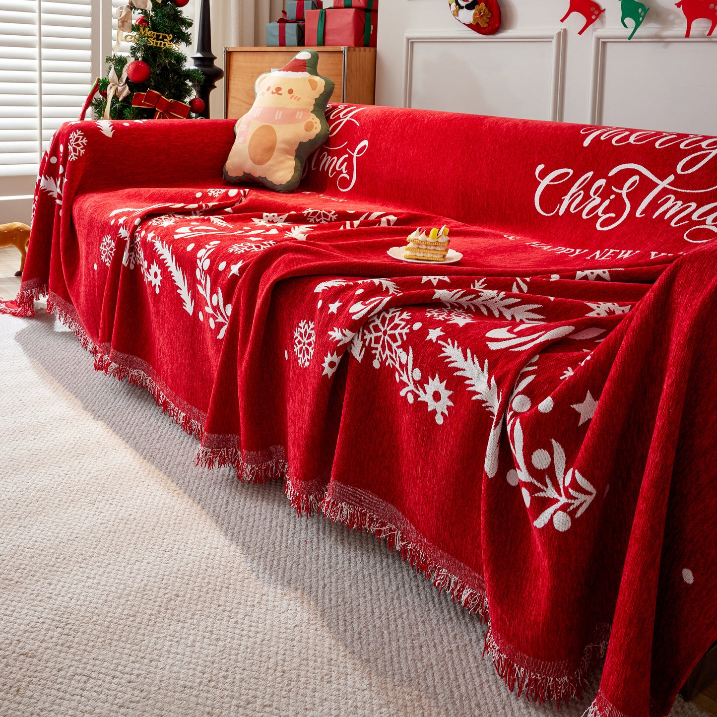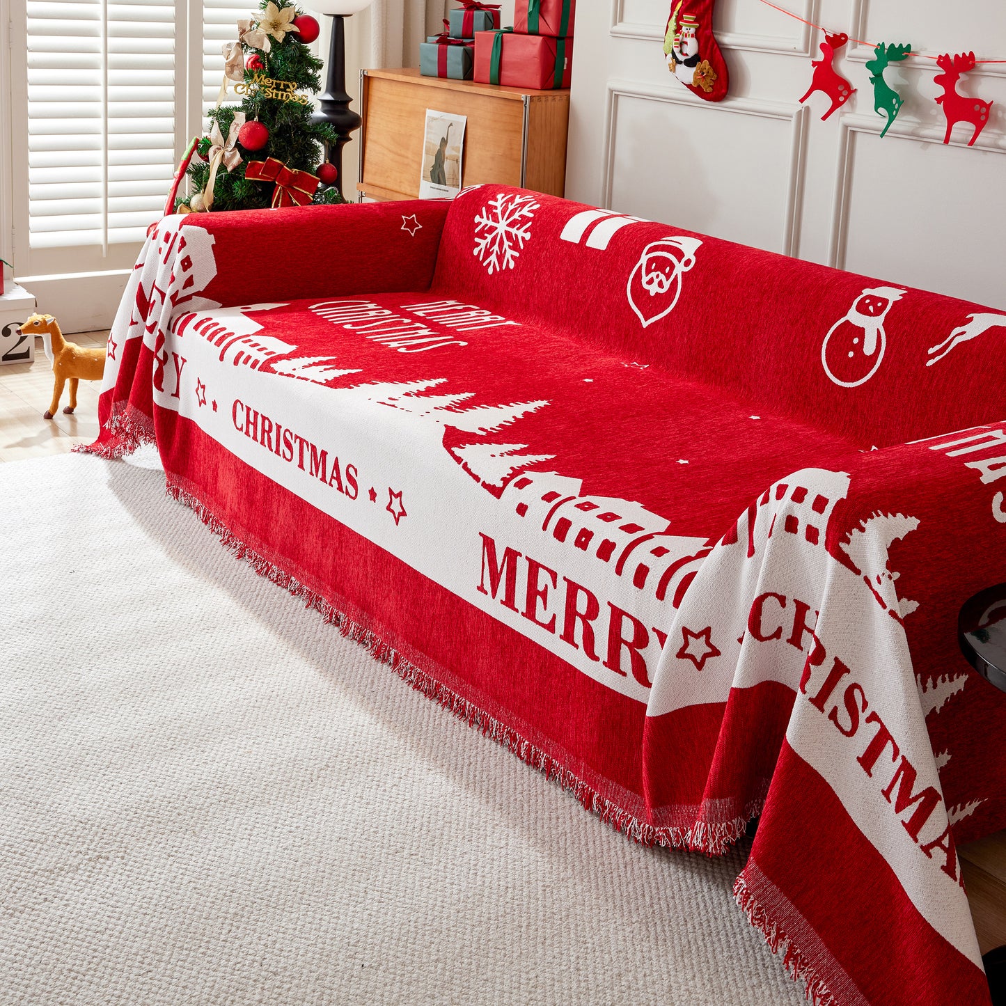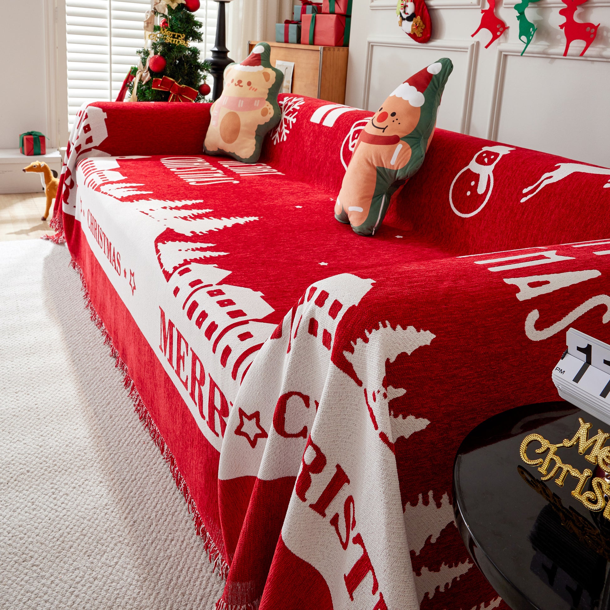Merry Christmas Cozy Chenille Couch Cover Blanket, Non Slip Sofa Cover, Furniture Covers for Pets