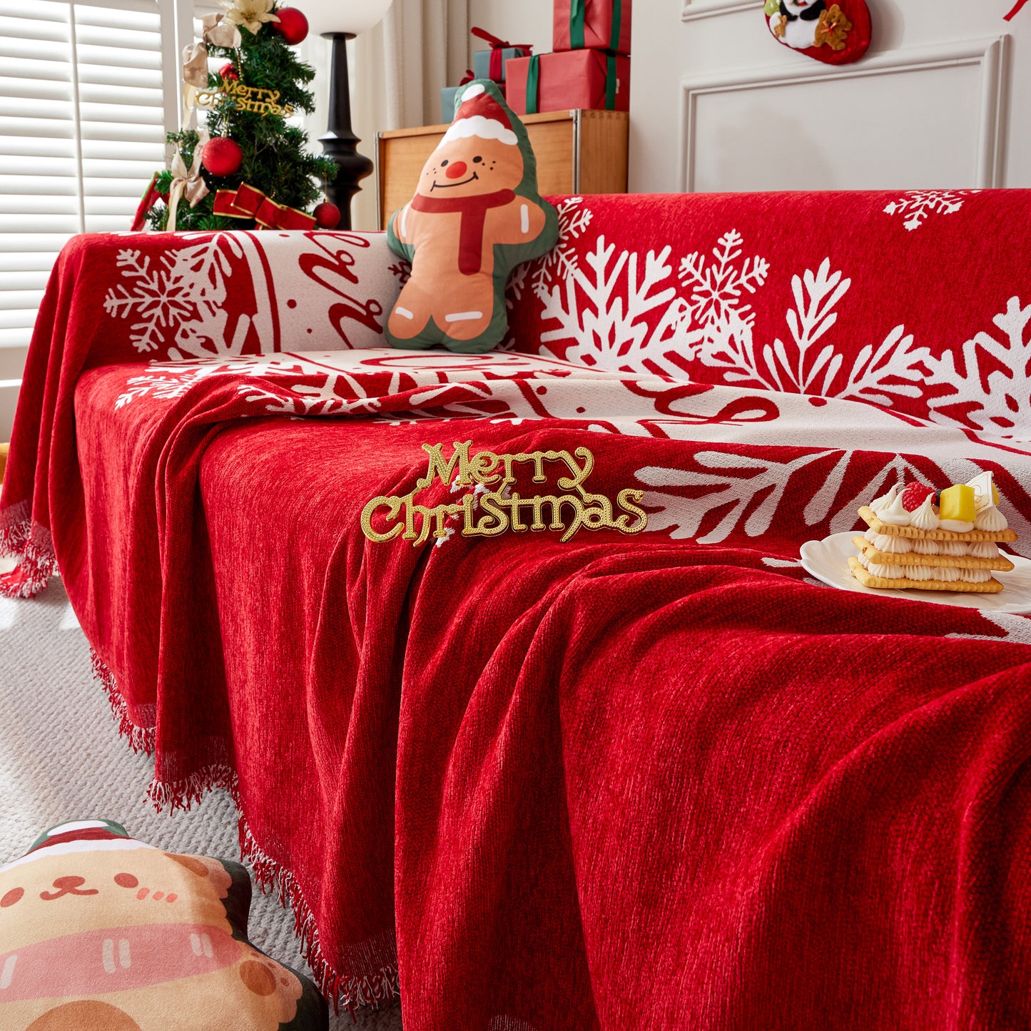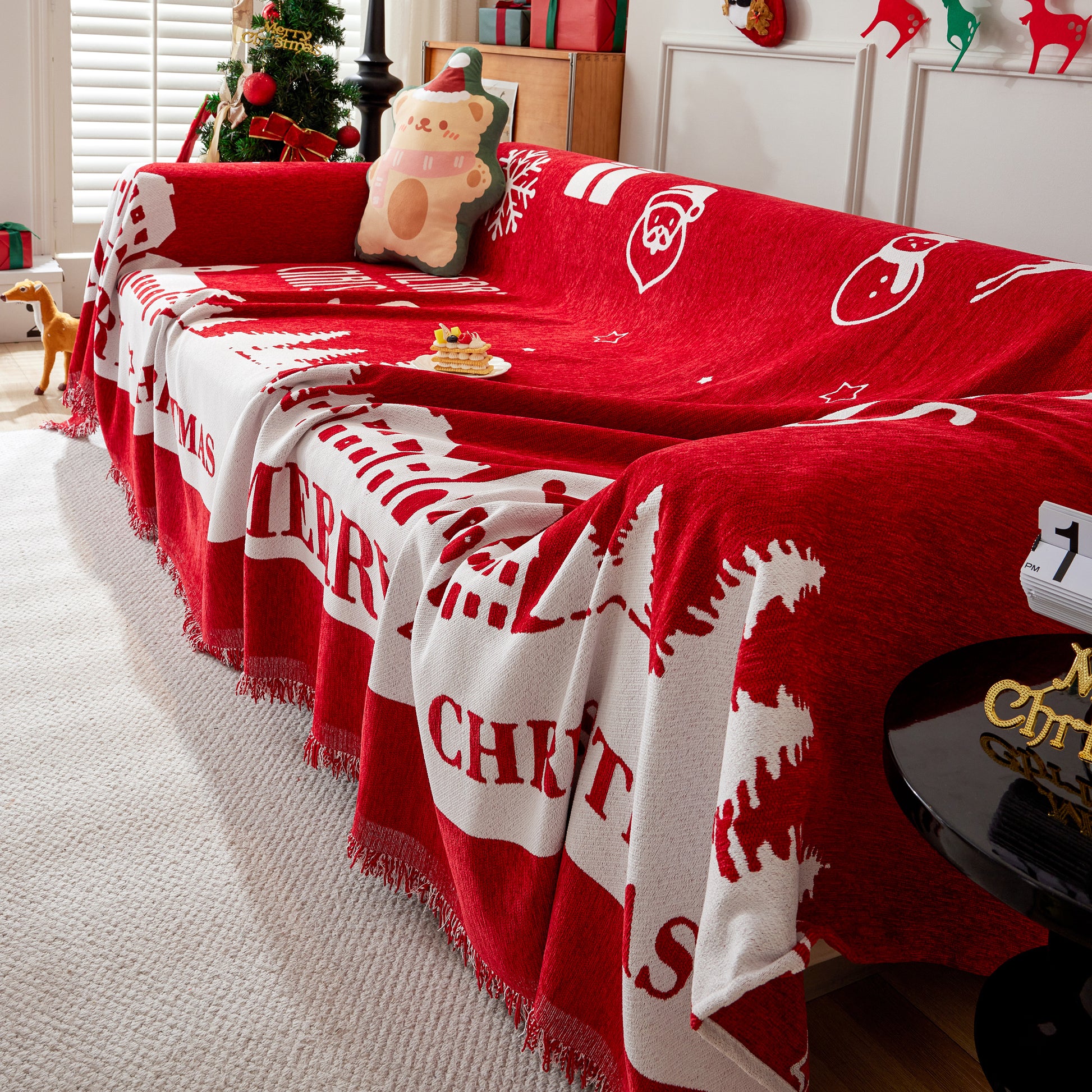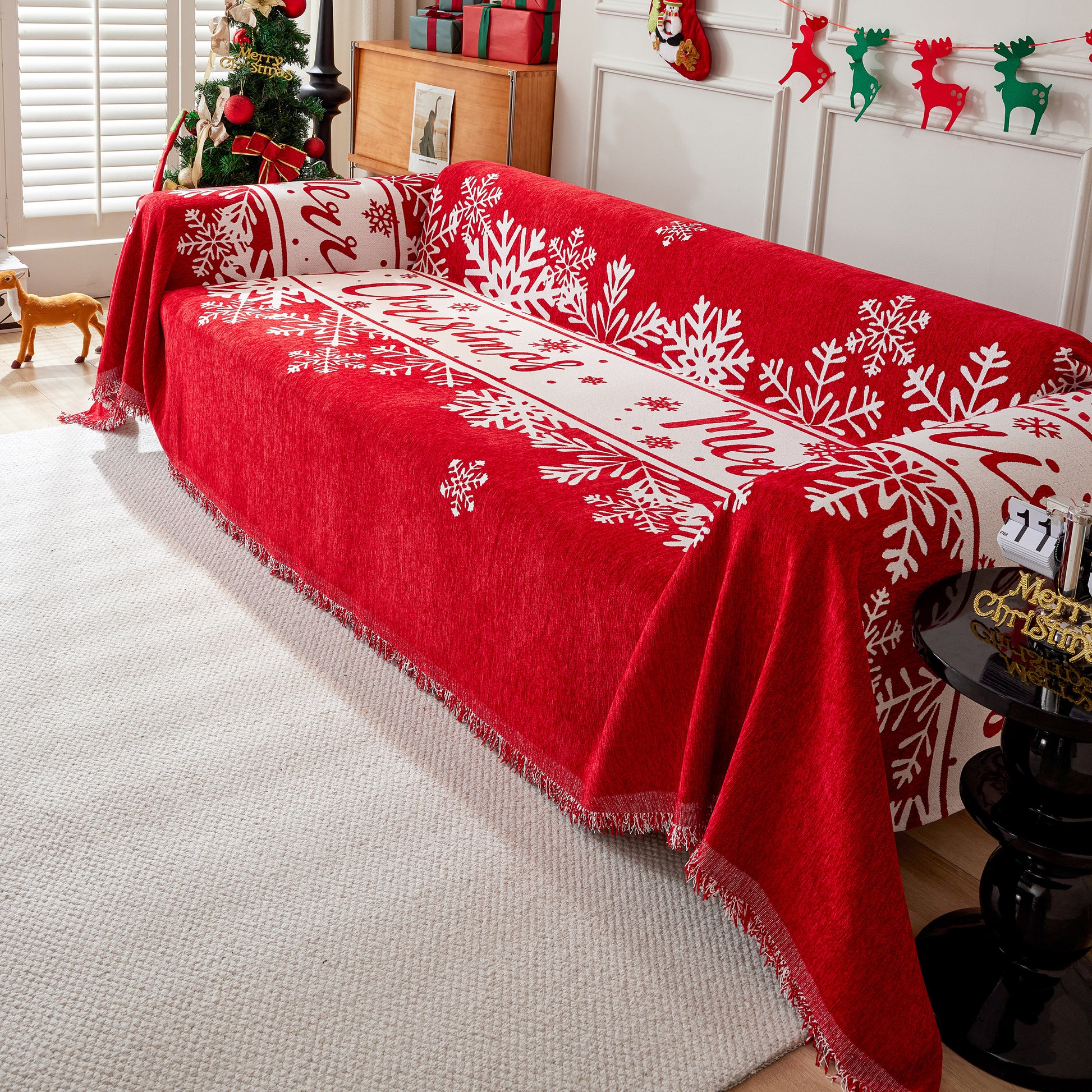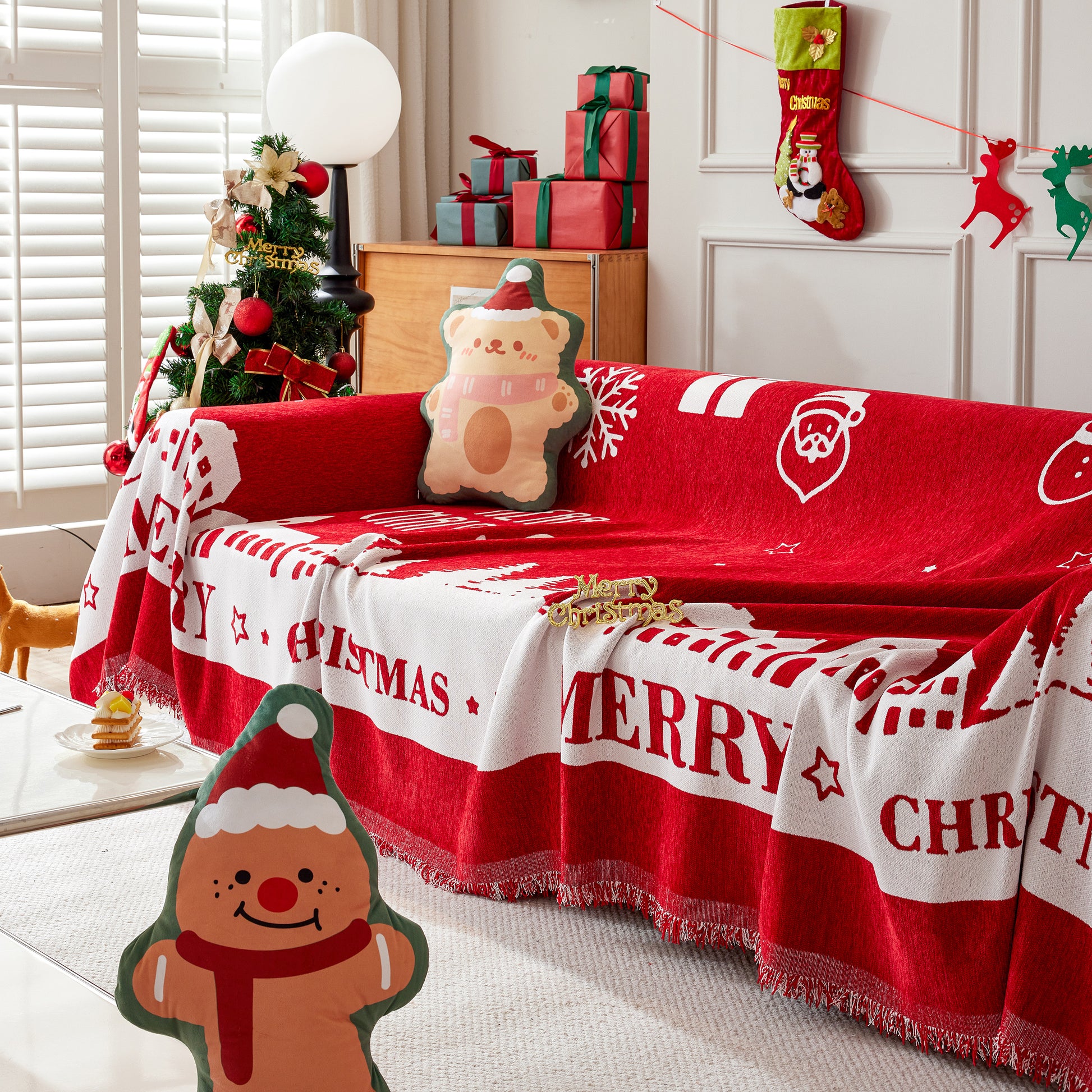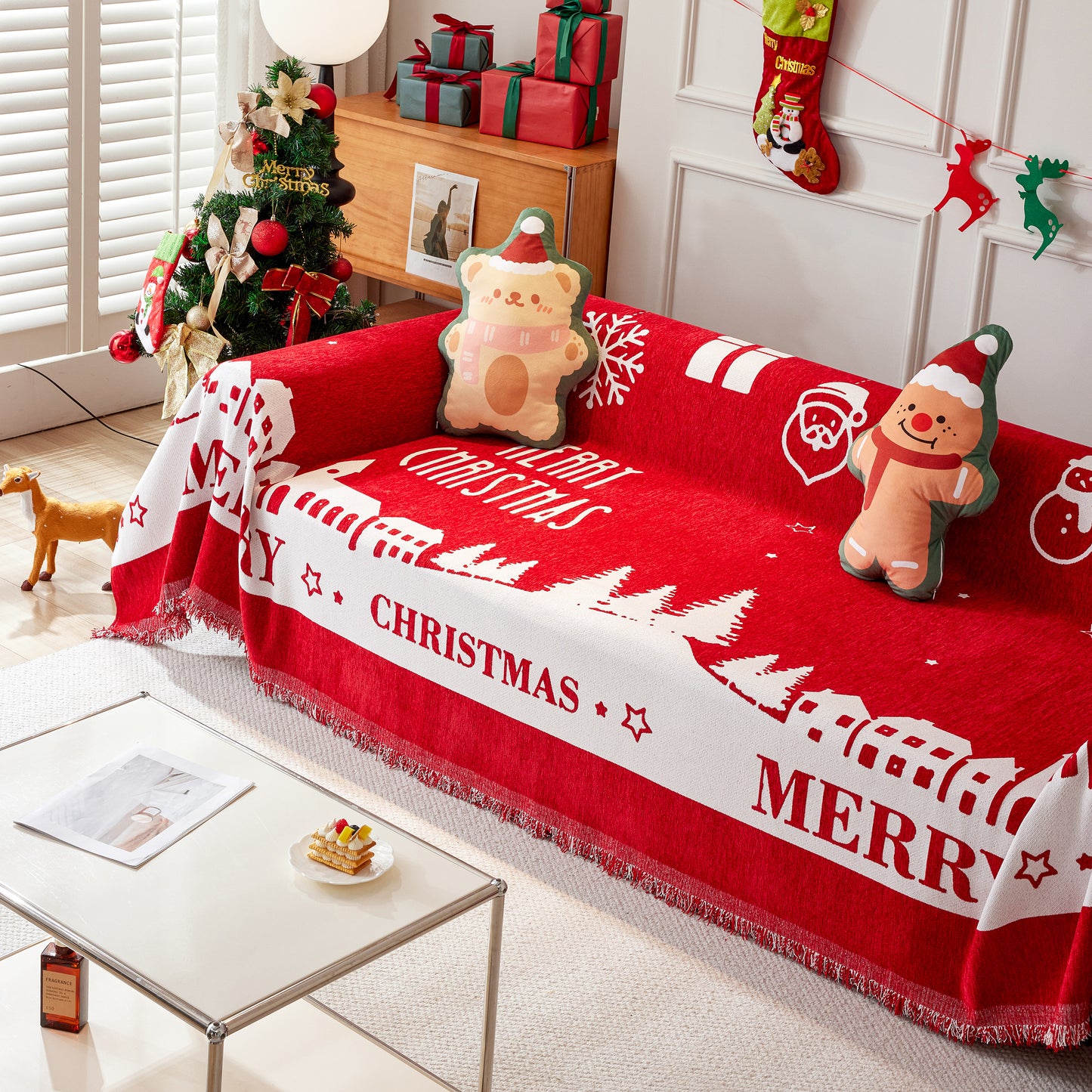 Merry Christmas Cozy Chenille Couch Cover Blanket, Non Slip Sofa Cover, Furniture Covers for Pets