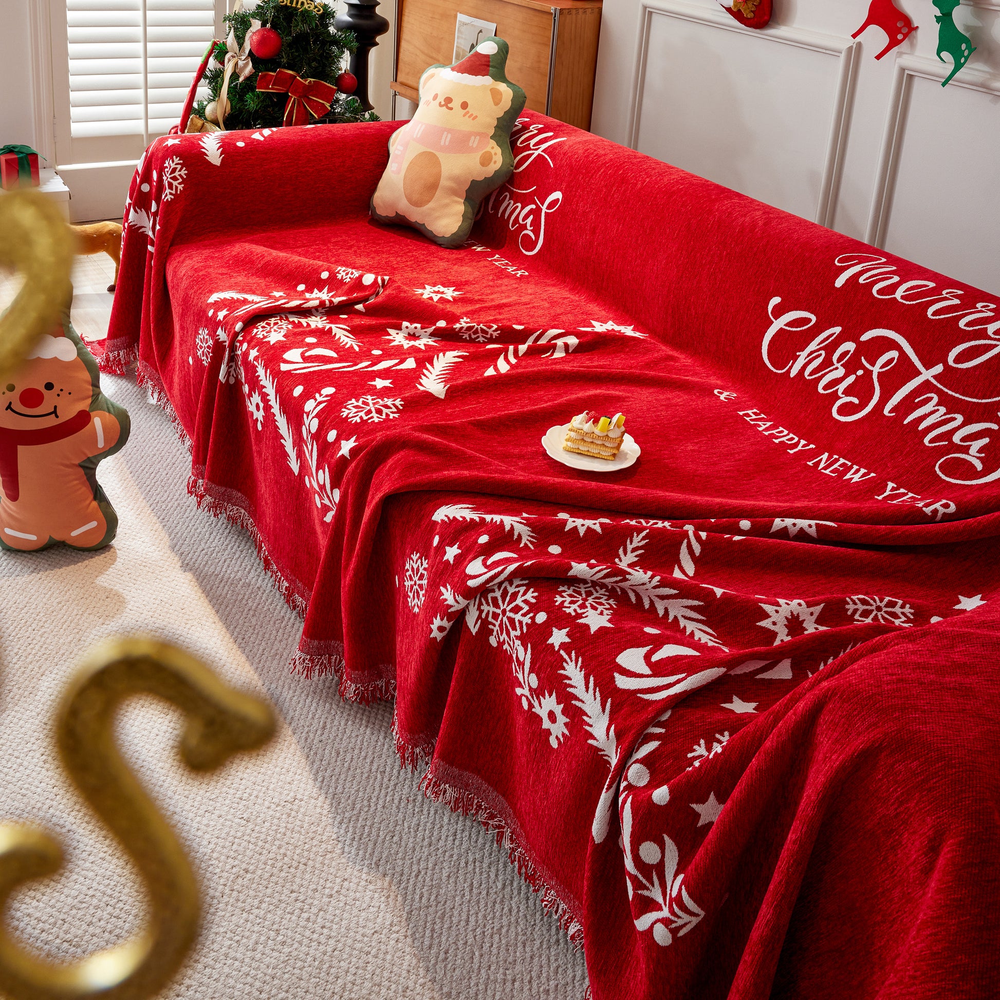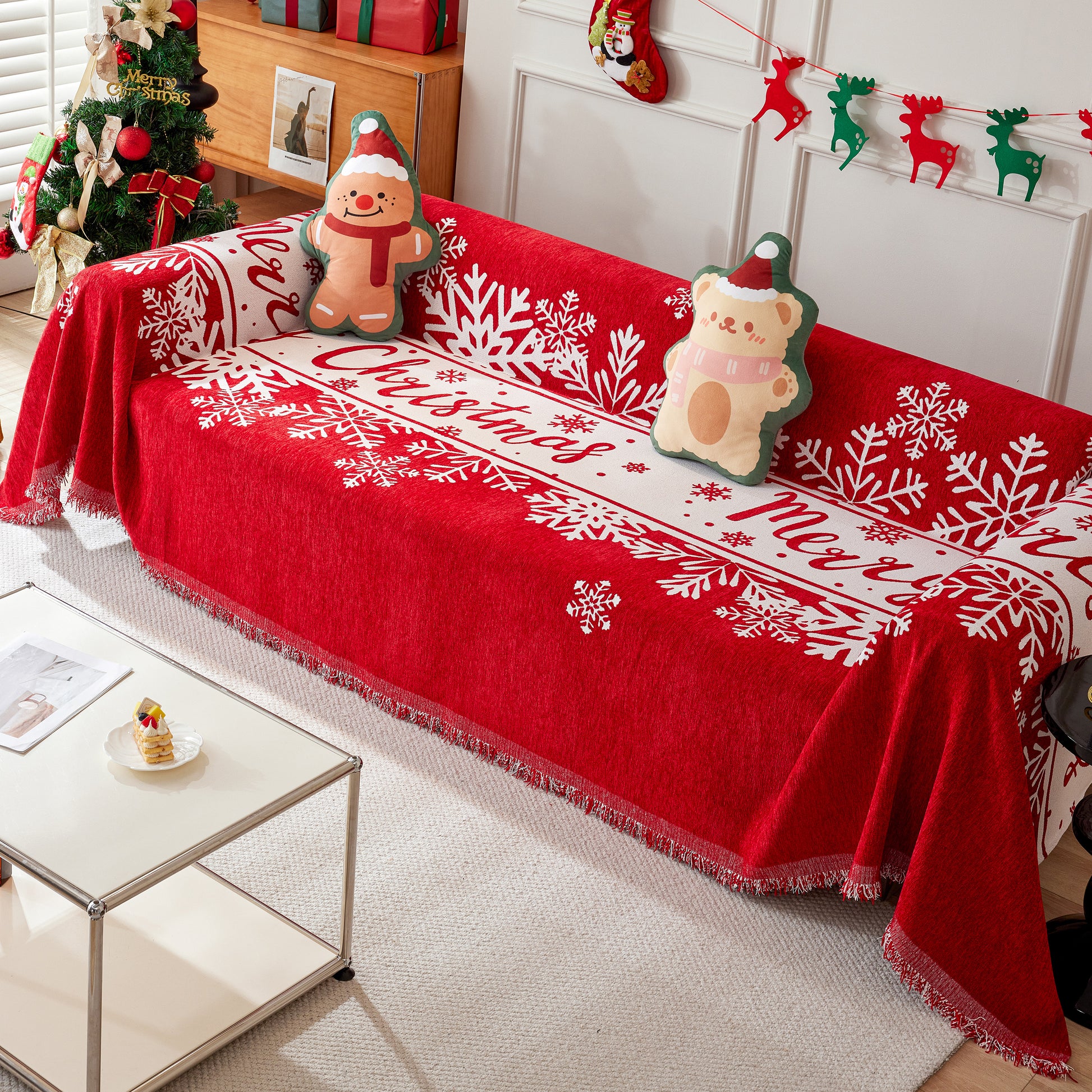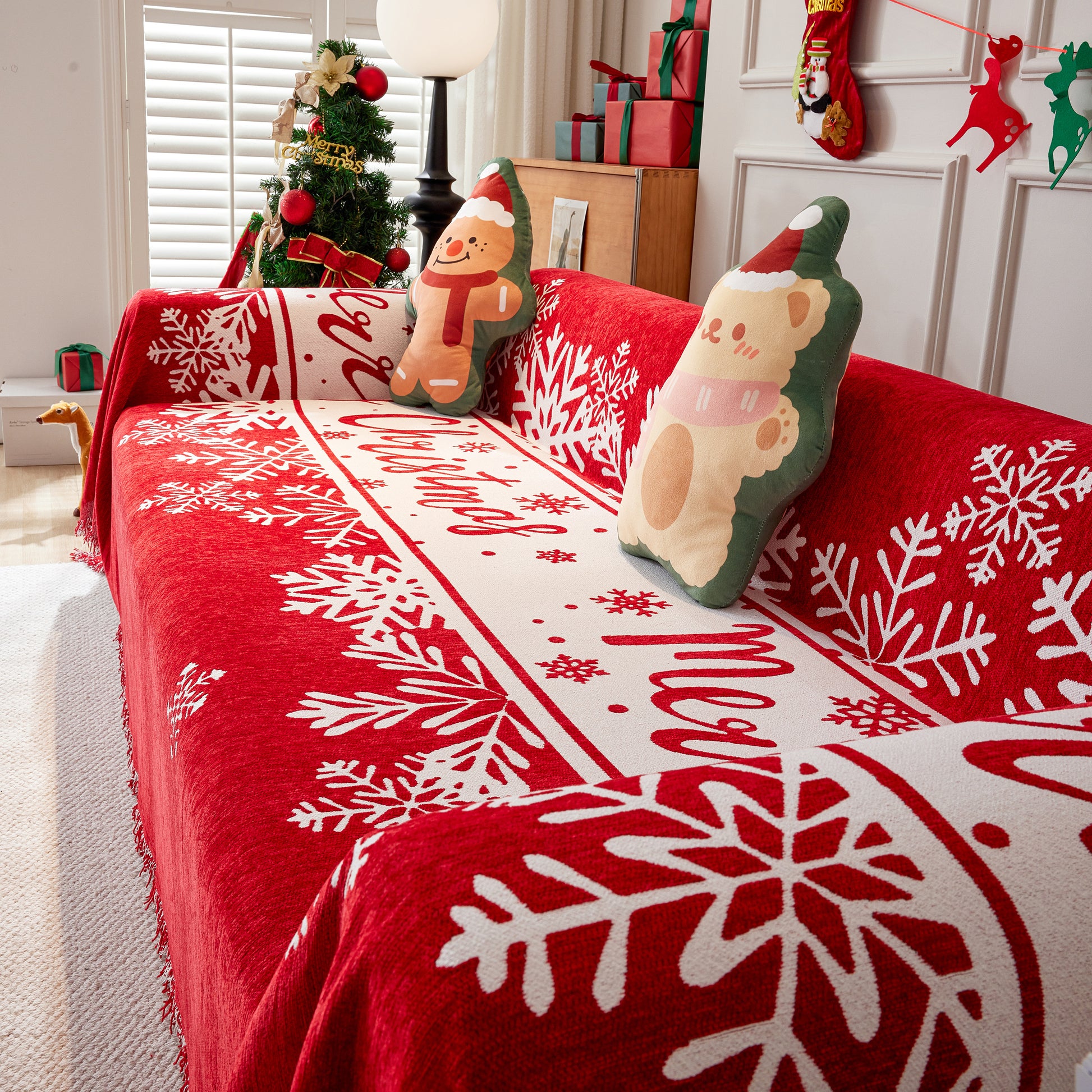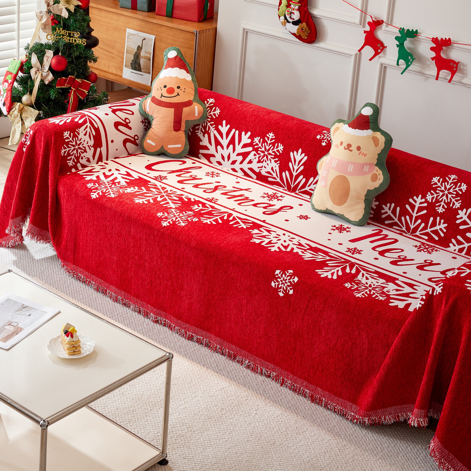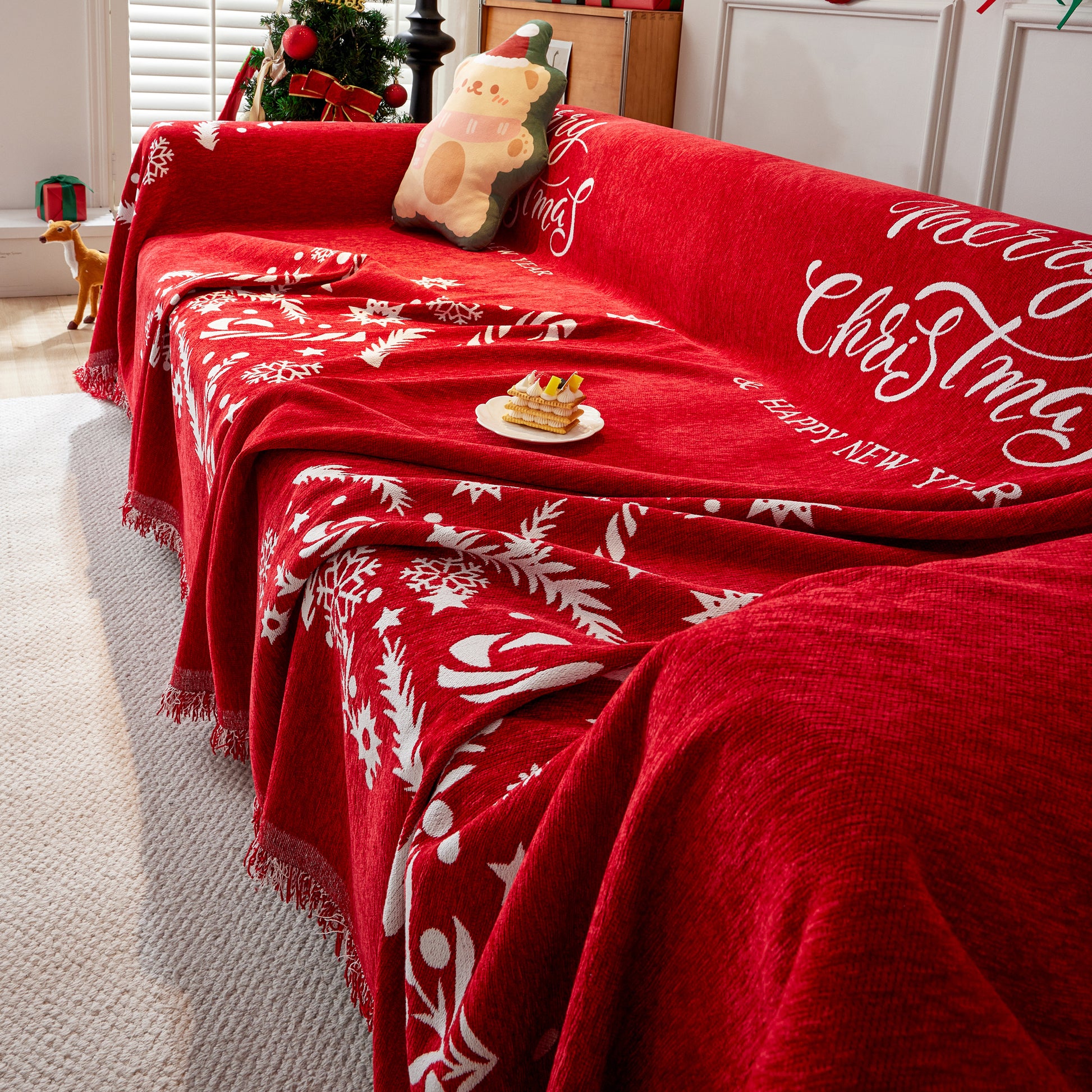 Merry Christmas Cozy Chenille Couch Cover Blanket, Non Slip Sofa Cover, Furniture Covers for Pets