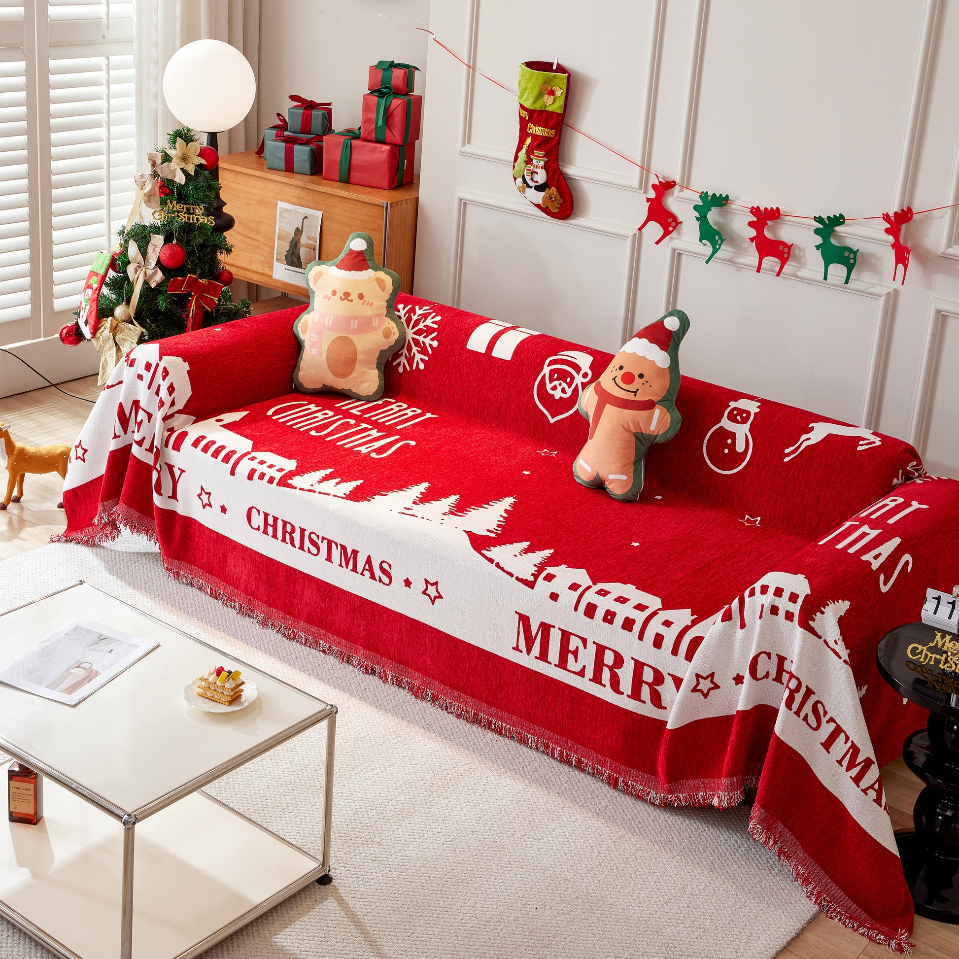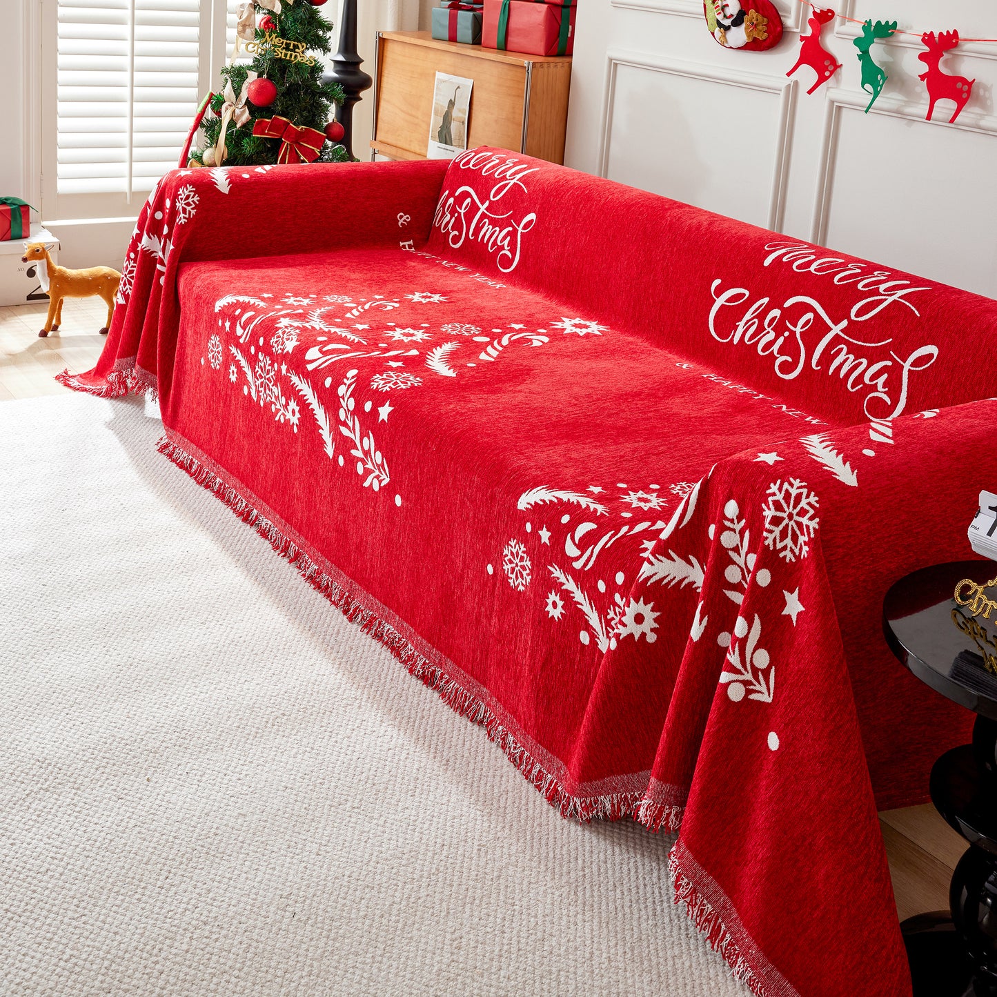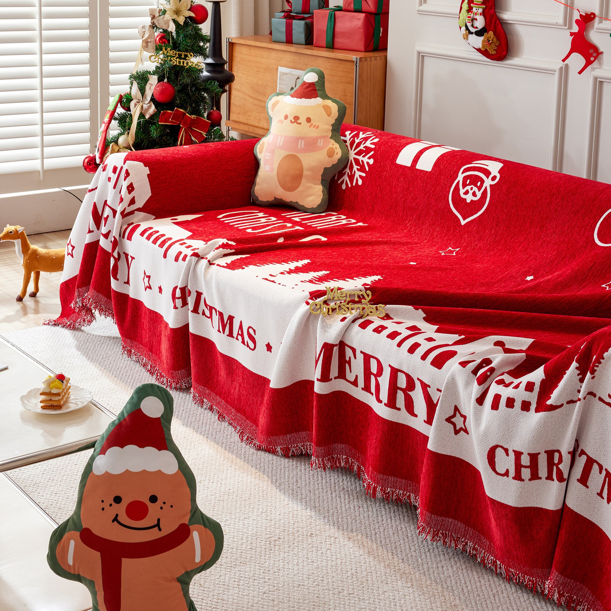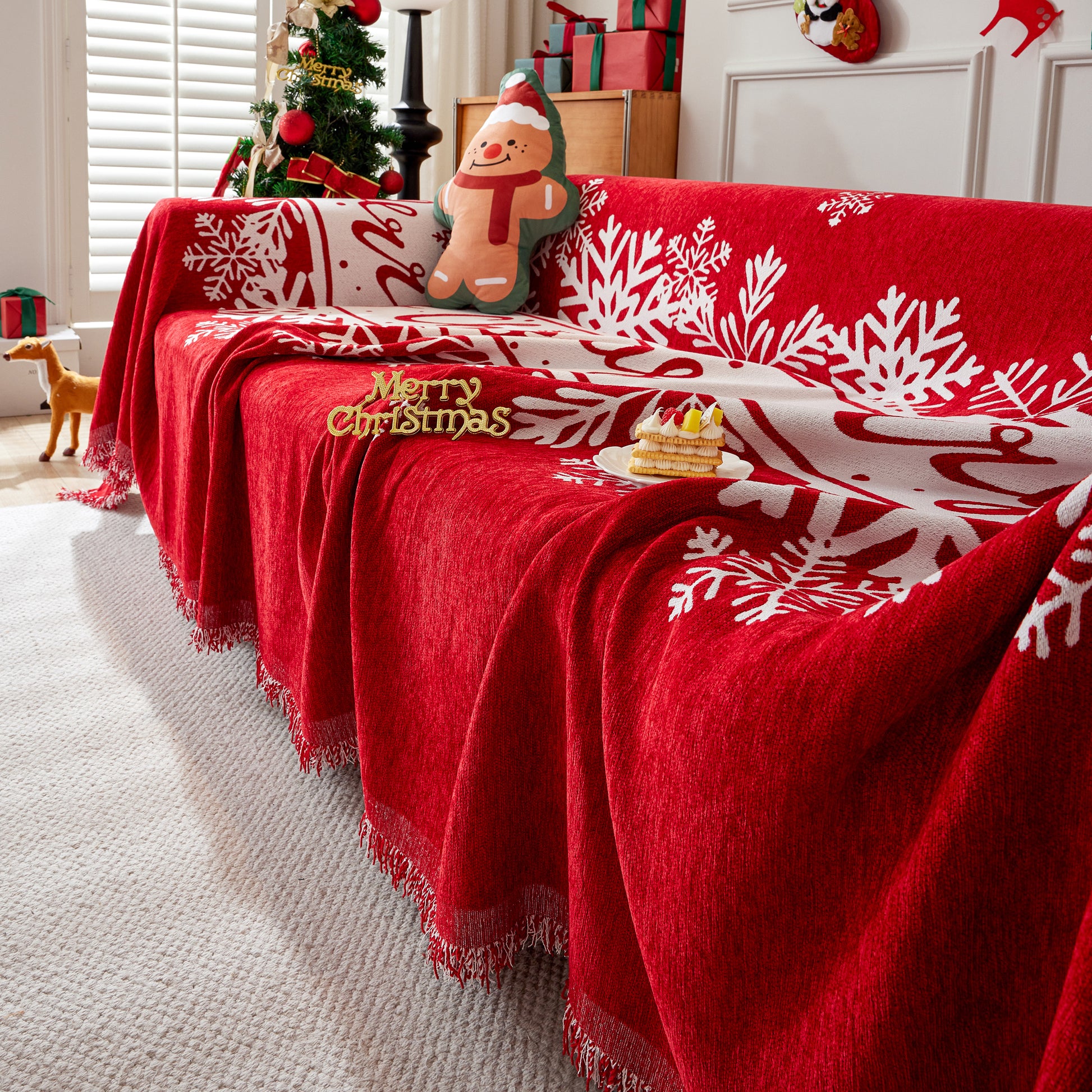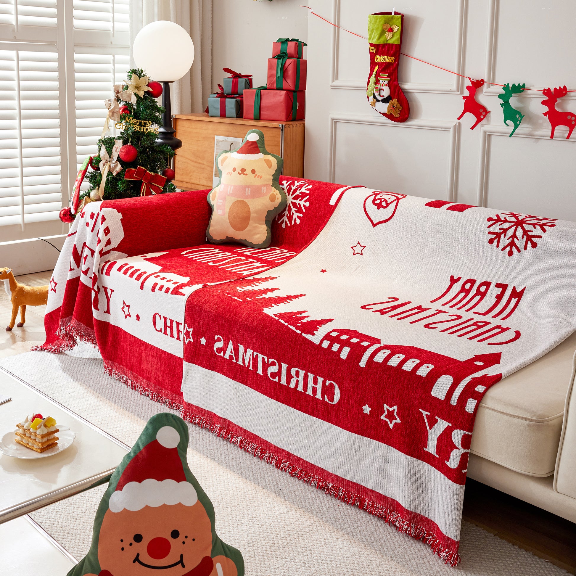Merry Christmas Cozy Chenille Couch Cover Blanket, Non Slip Sofa Cover, Furniture Covers for Pets