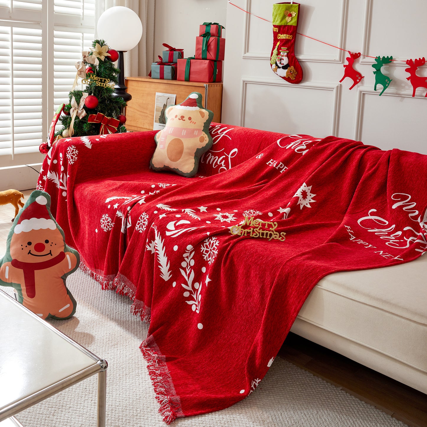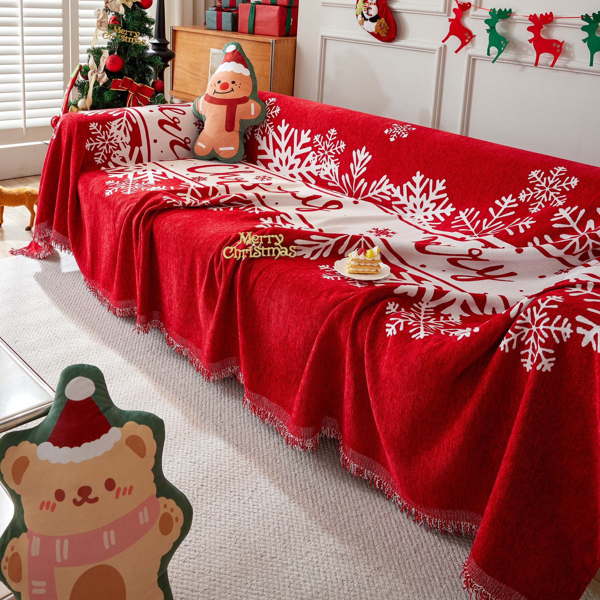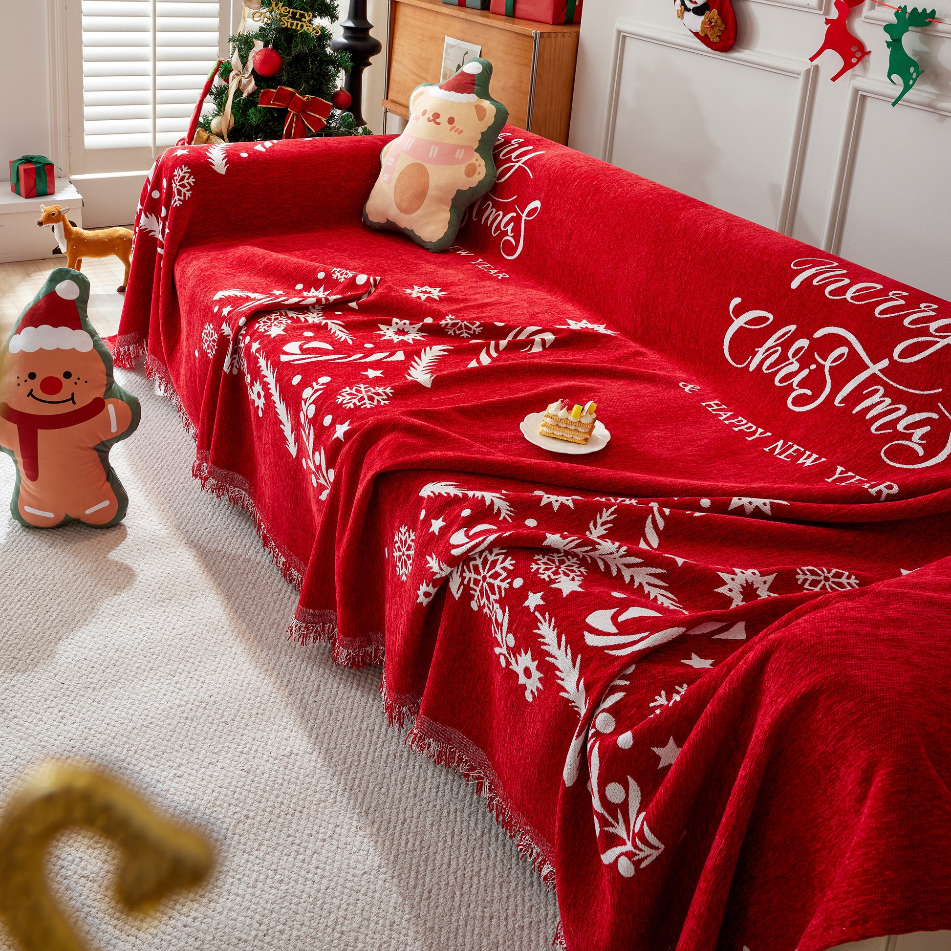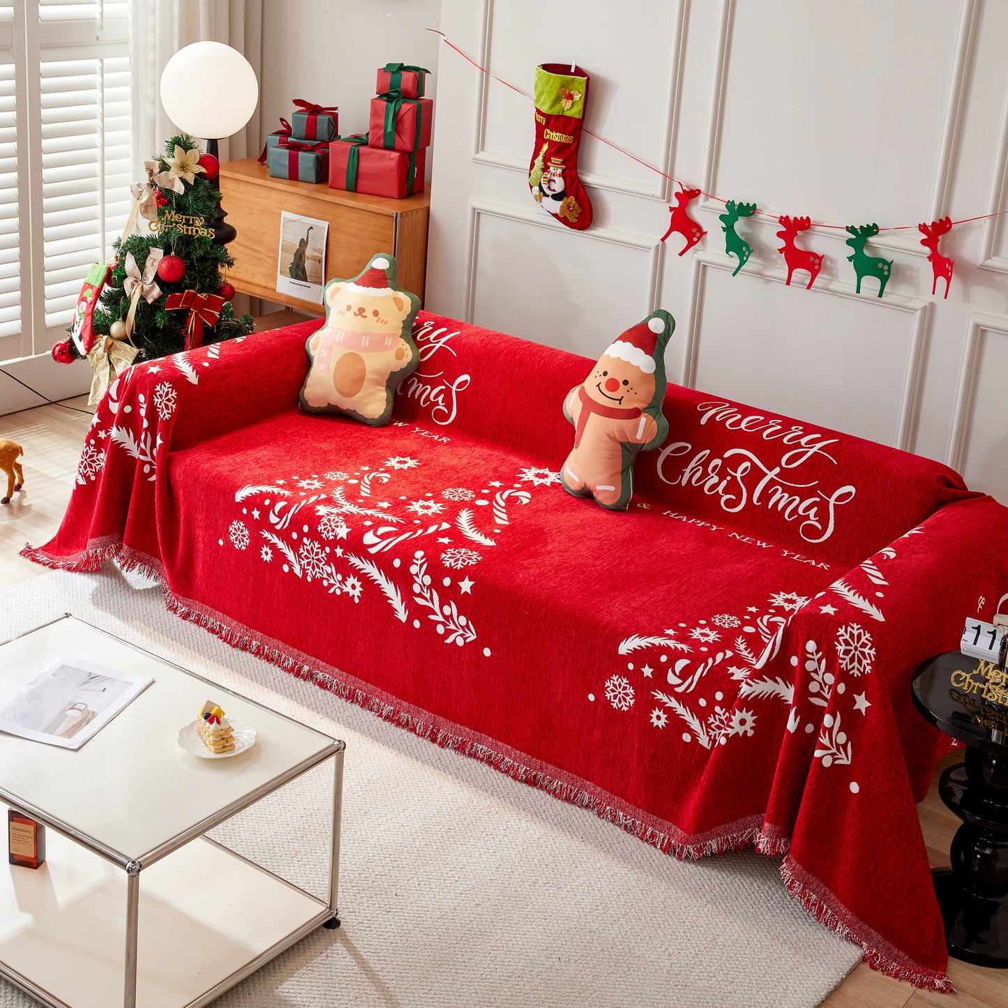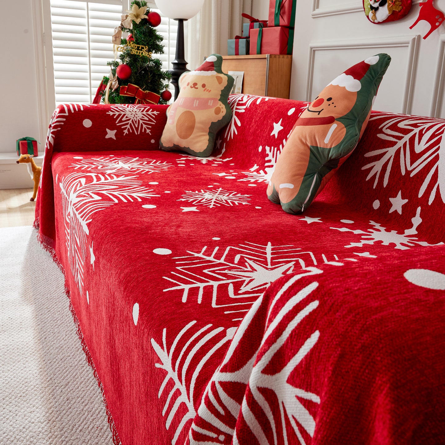 Merry Christmas Cozy Chenille Couch Cover Blanket, Non Slip Sofa Cover, Furniture Covers for Pets