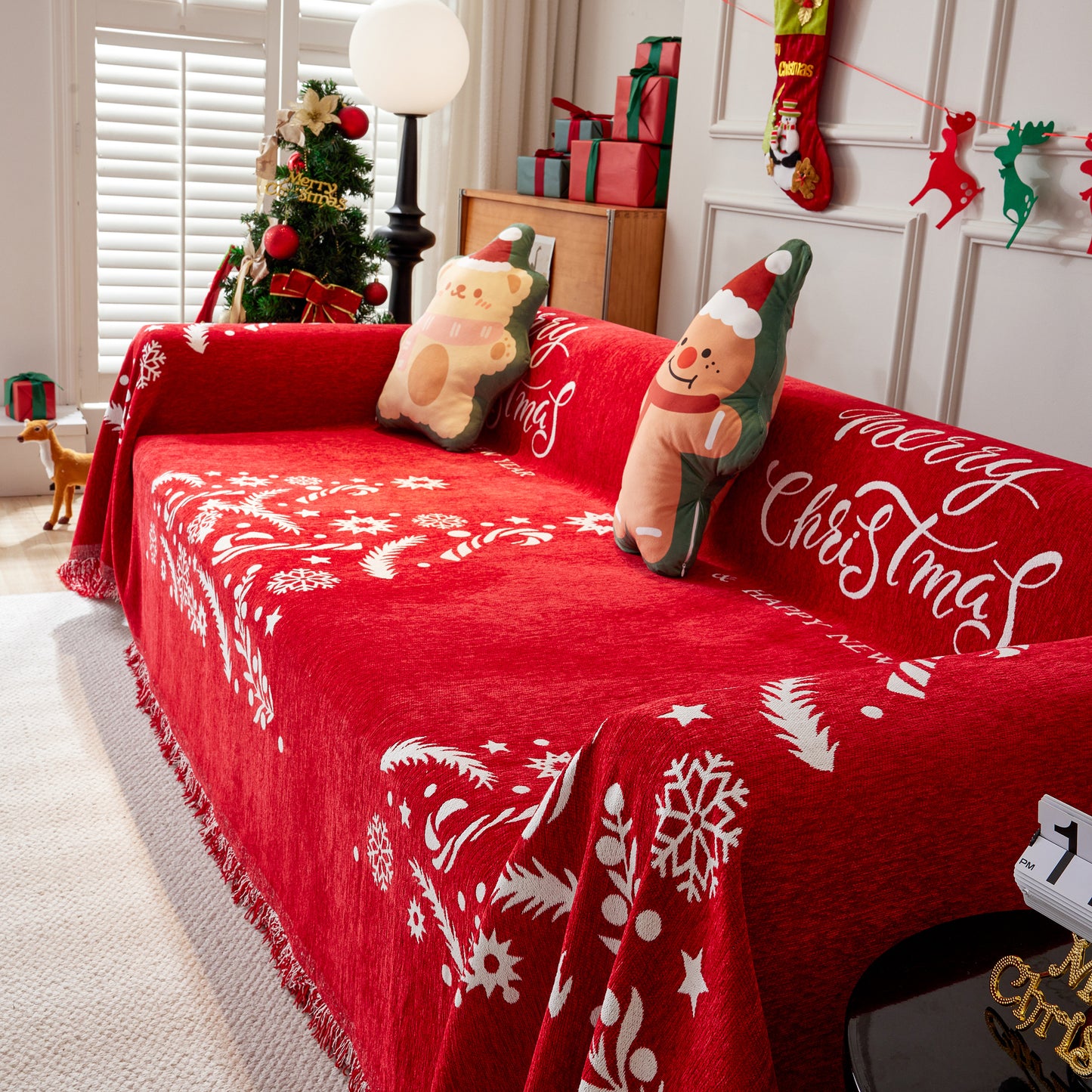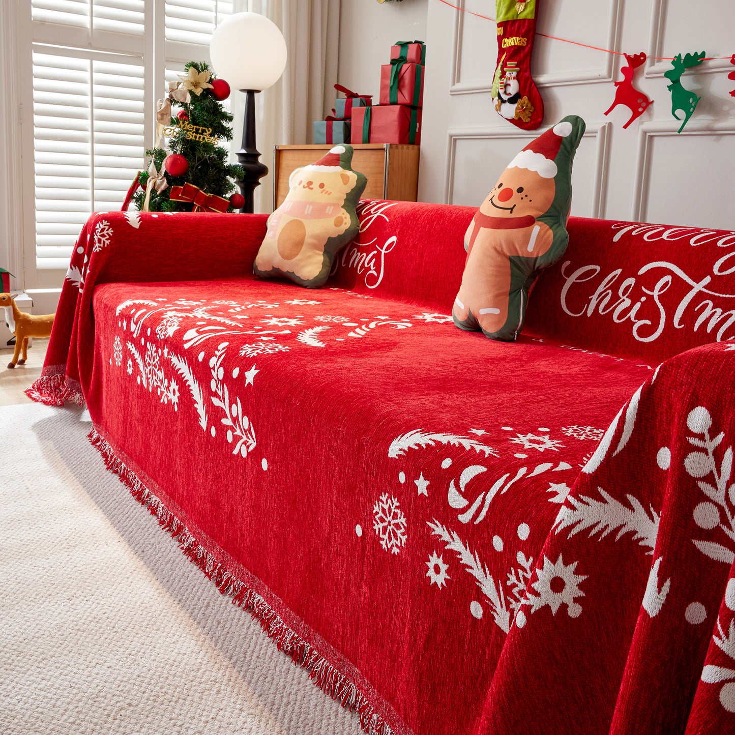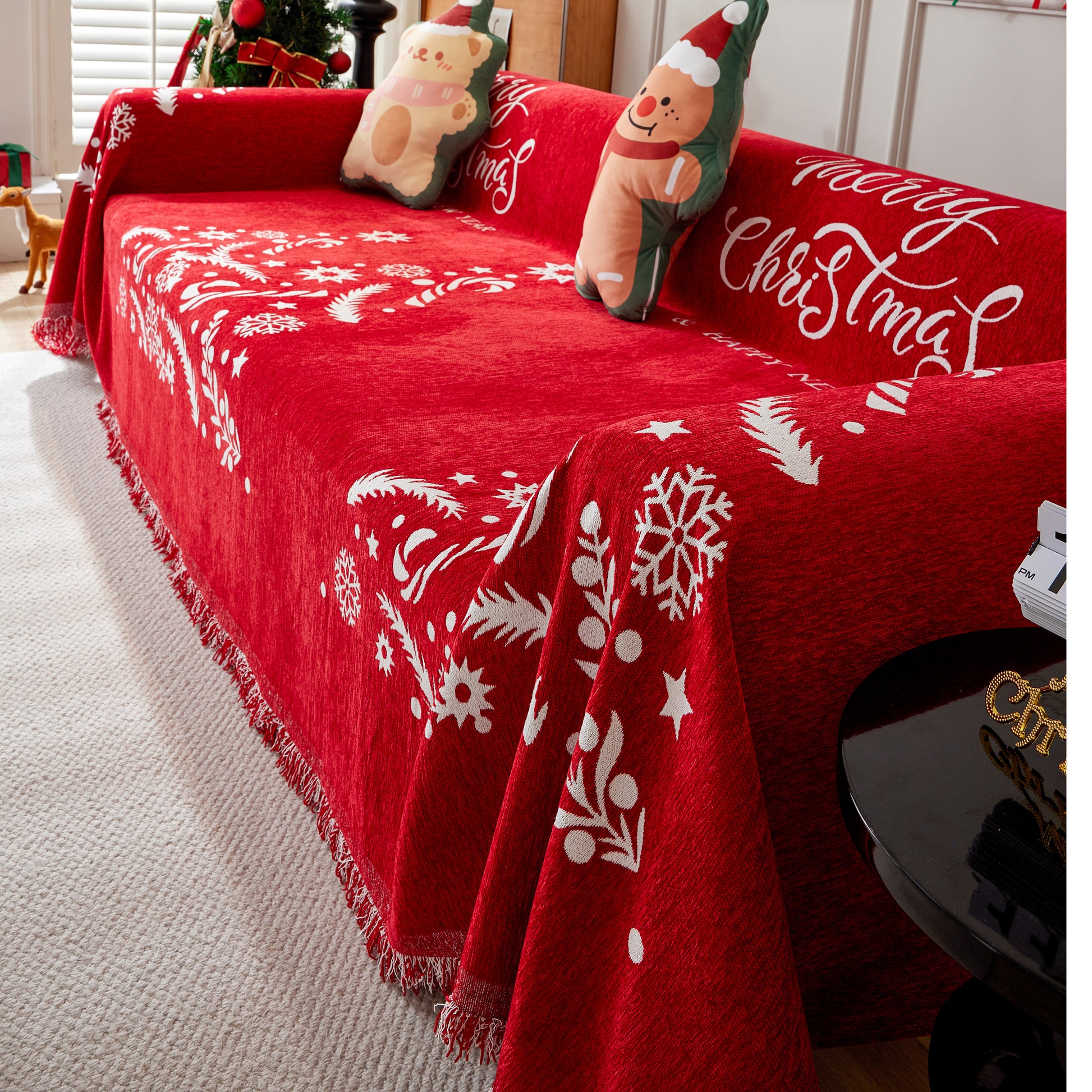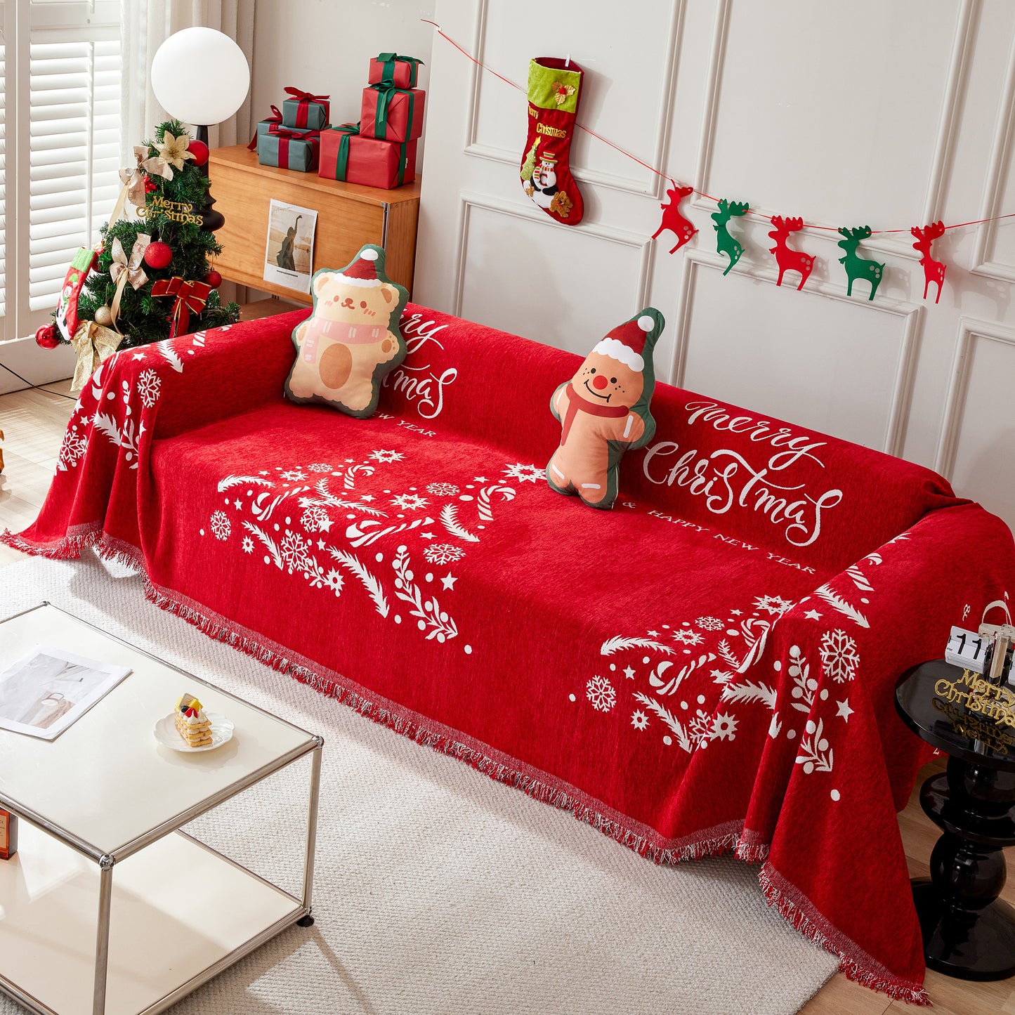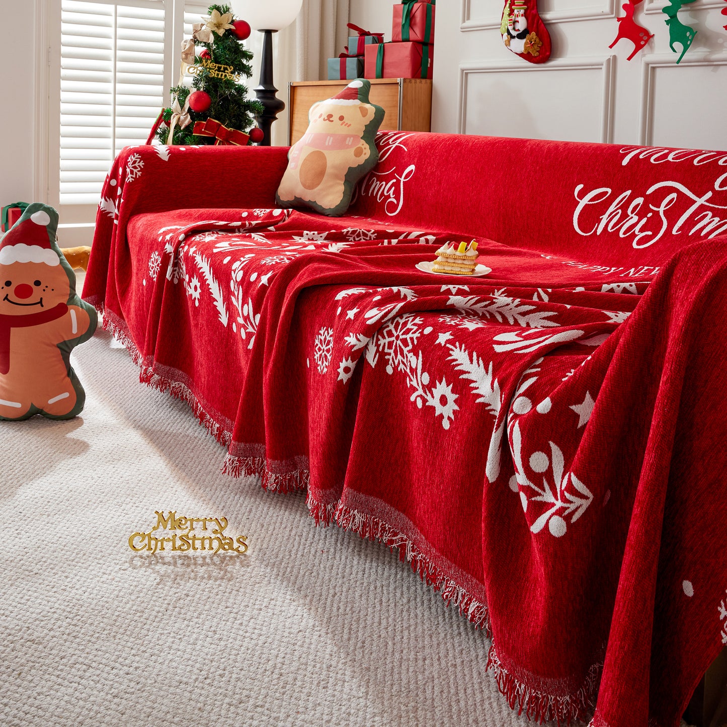 Merry Christmas Cozy Chenille Couch Cover Blanket, Non Slip Sofa Cover, Furniture Covers for Pets