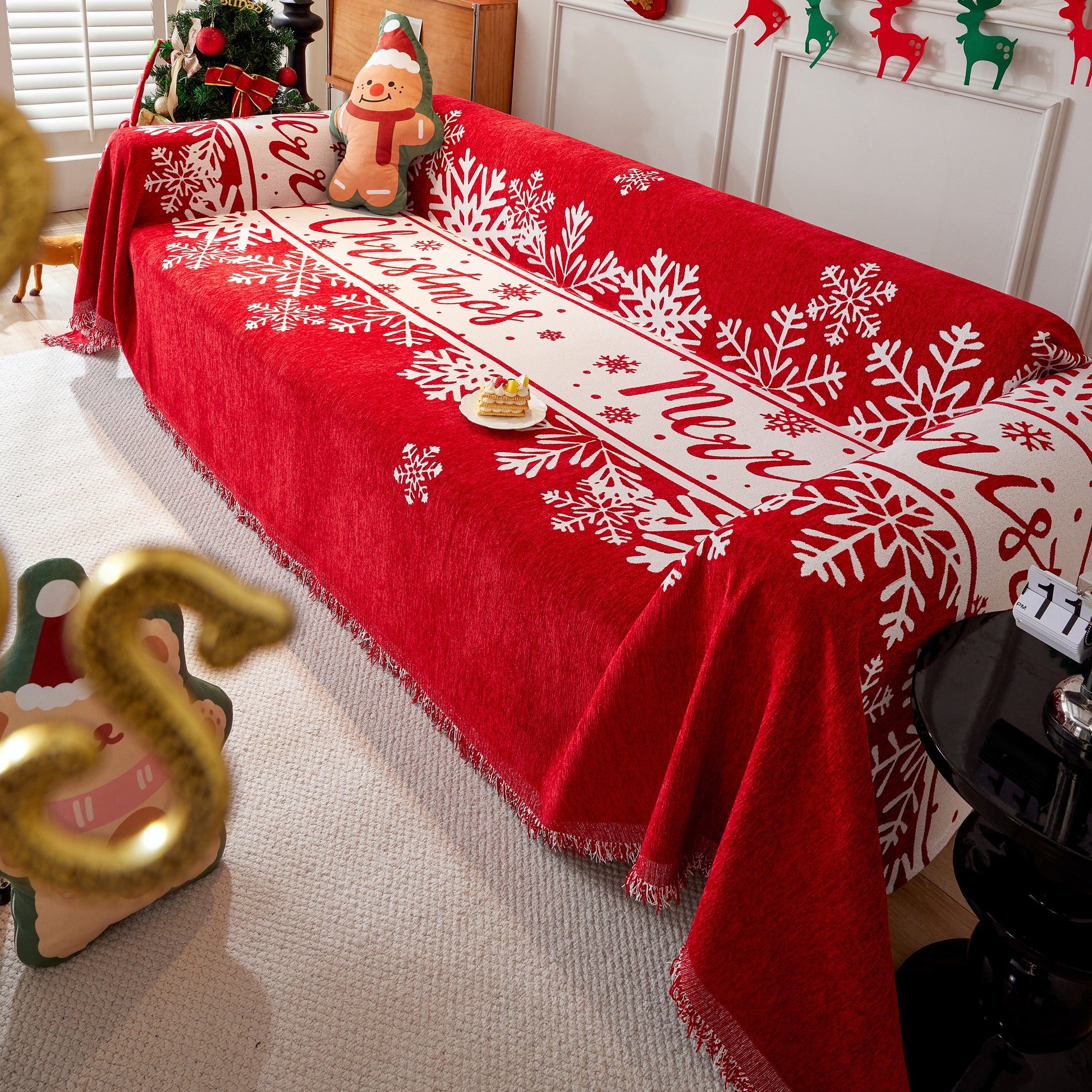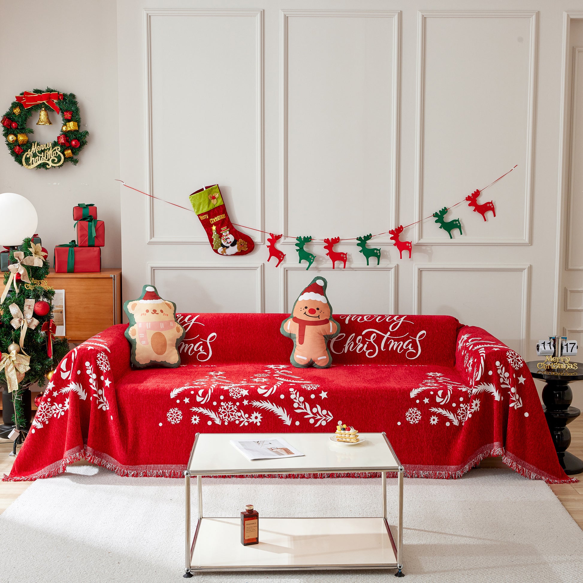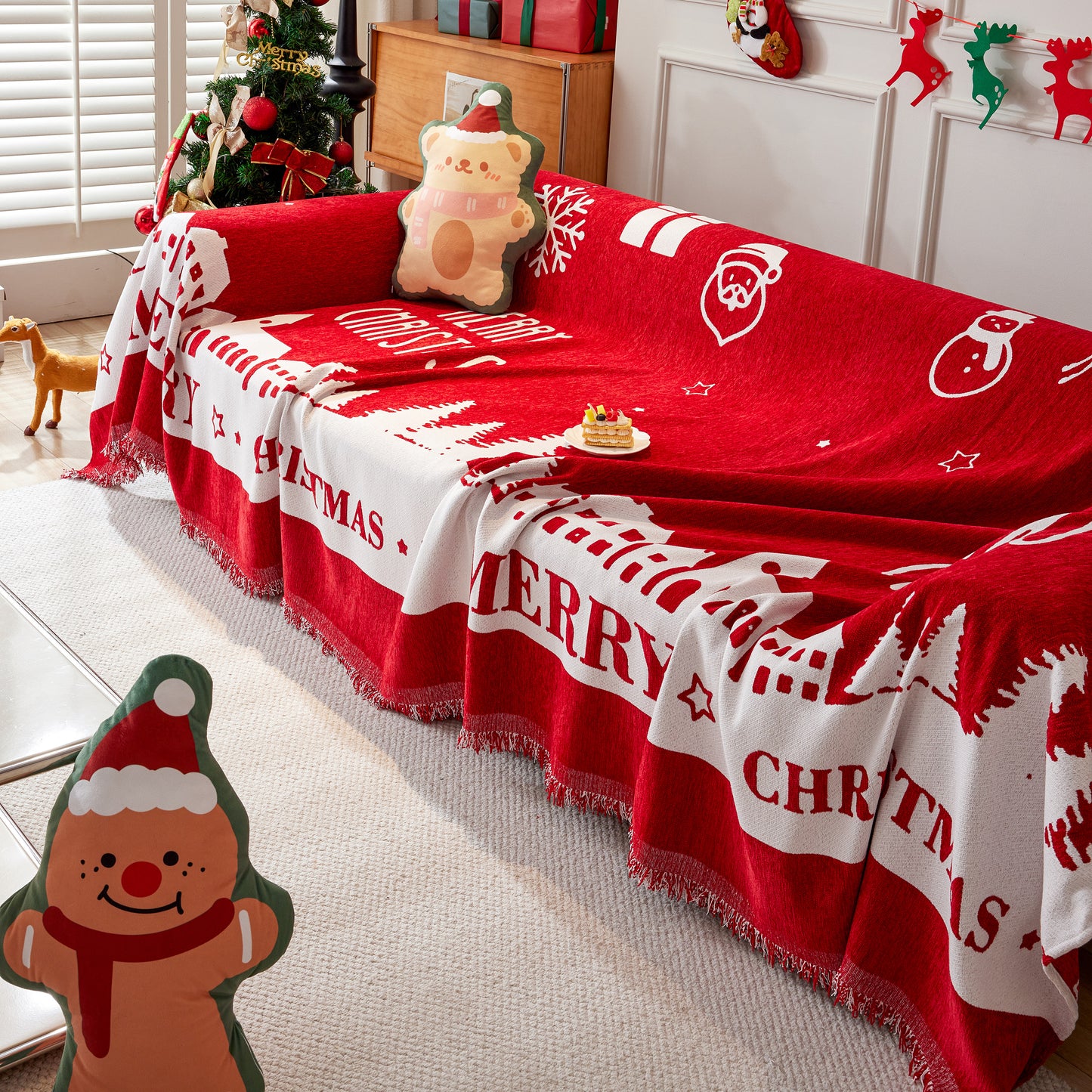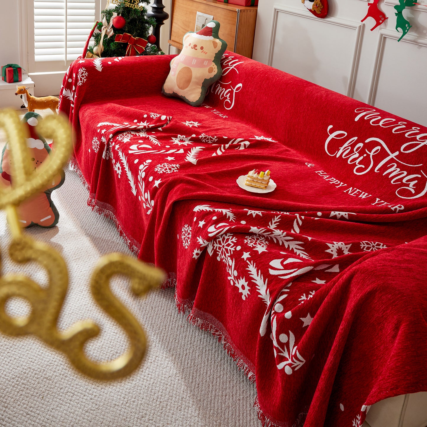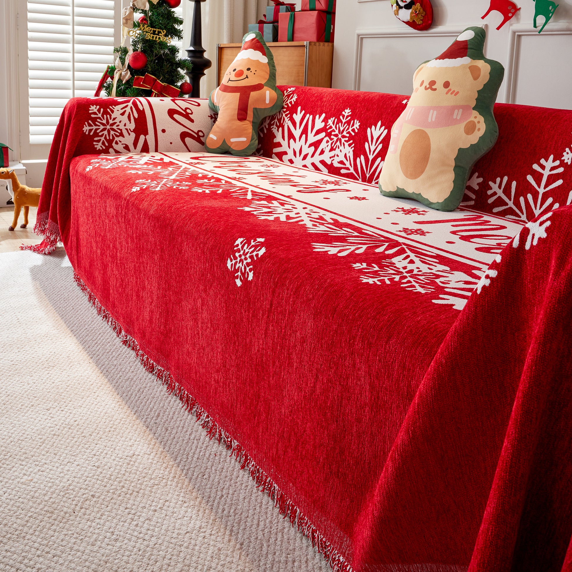 Merry Christmas Cozy Chenille Couch Cover Blanket, Non Slip Sofa Cover, Furniture Covers for Pets
