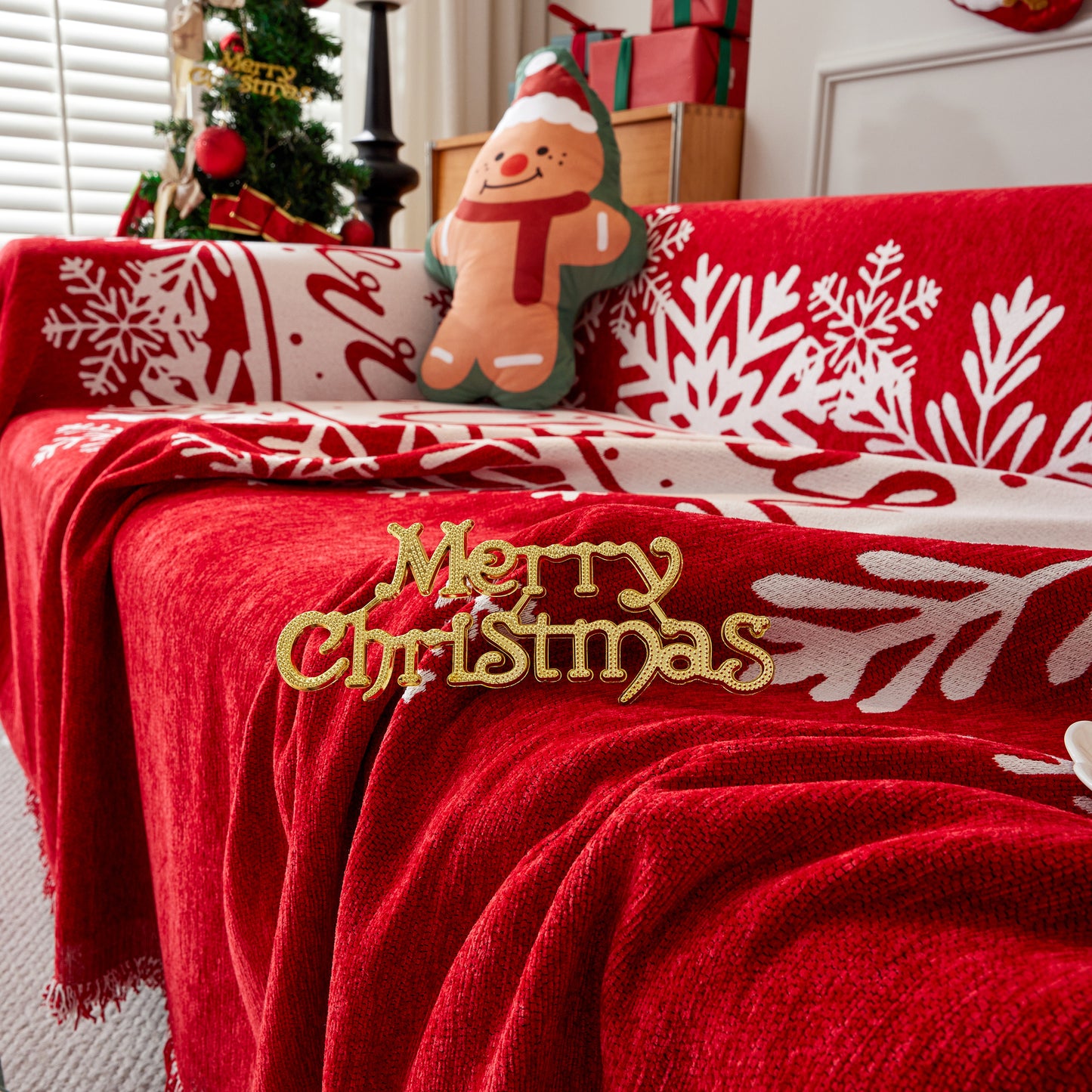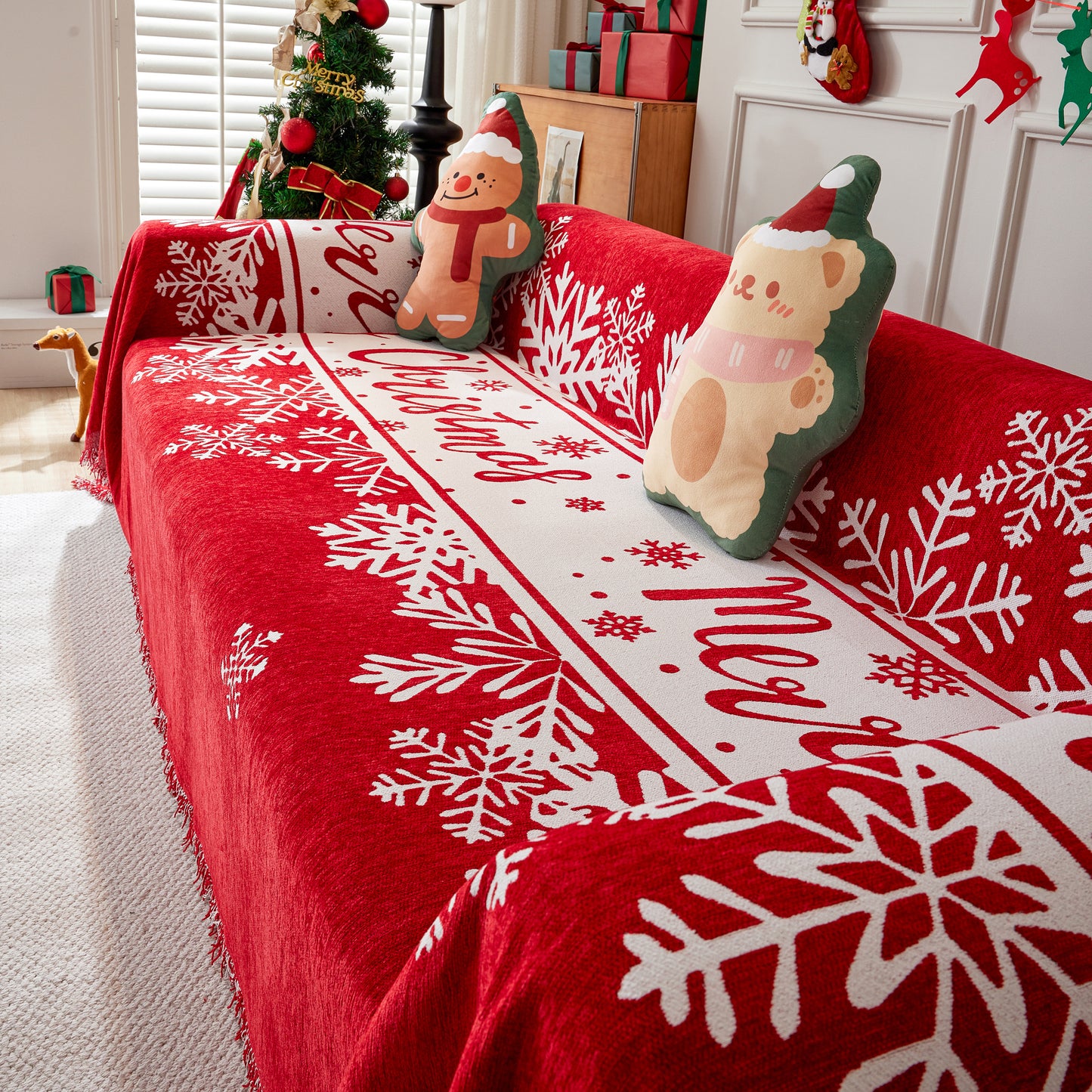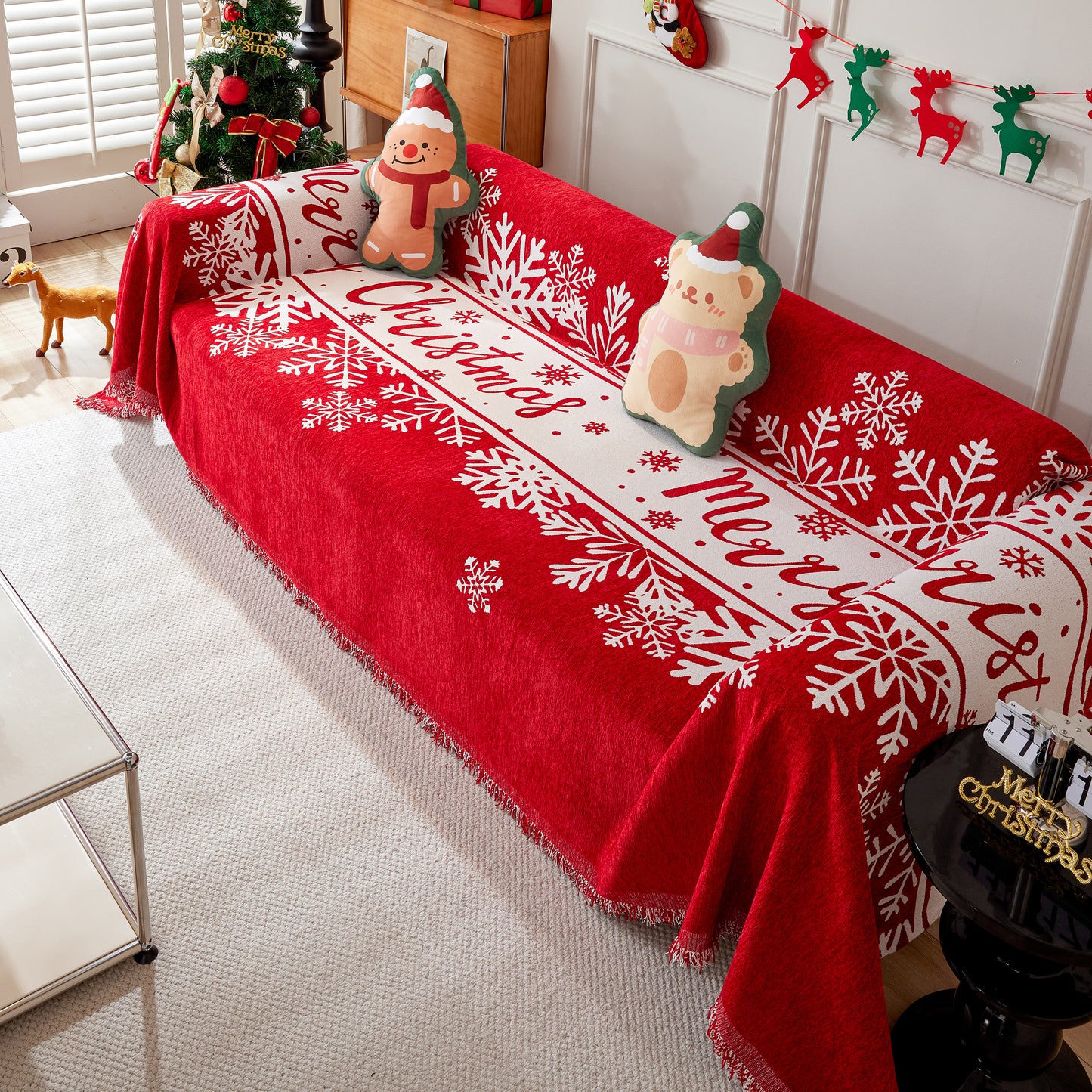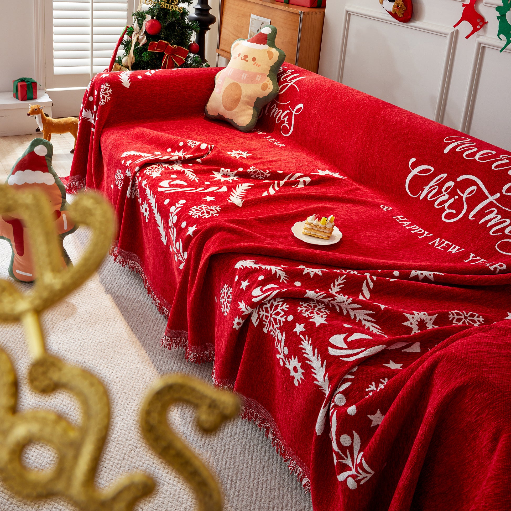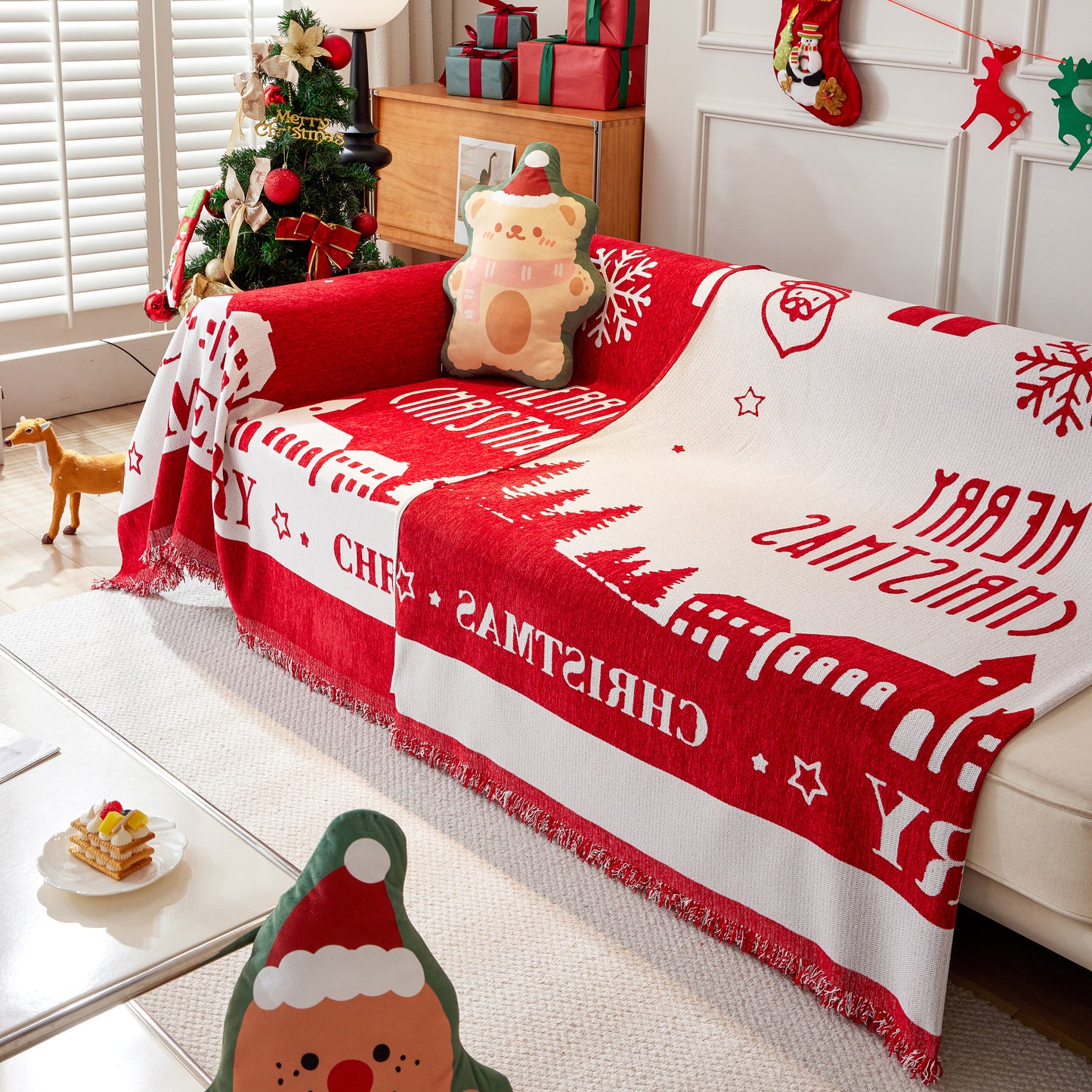 Merry Christmas Cozy Chenille Couch Cover Blanket, Non Slip Sofa Cover, Furniture Covers for Pets