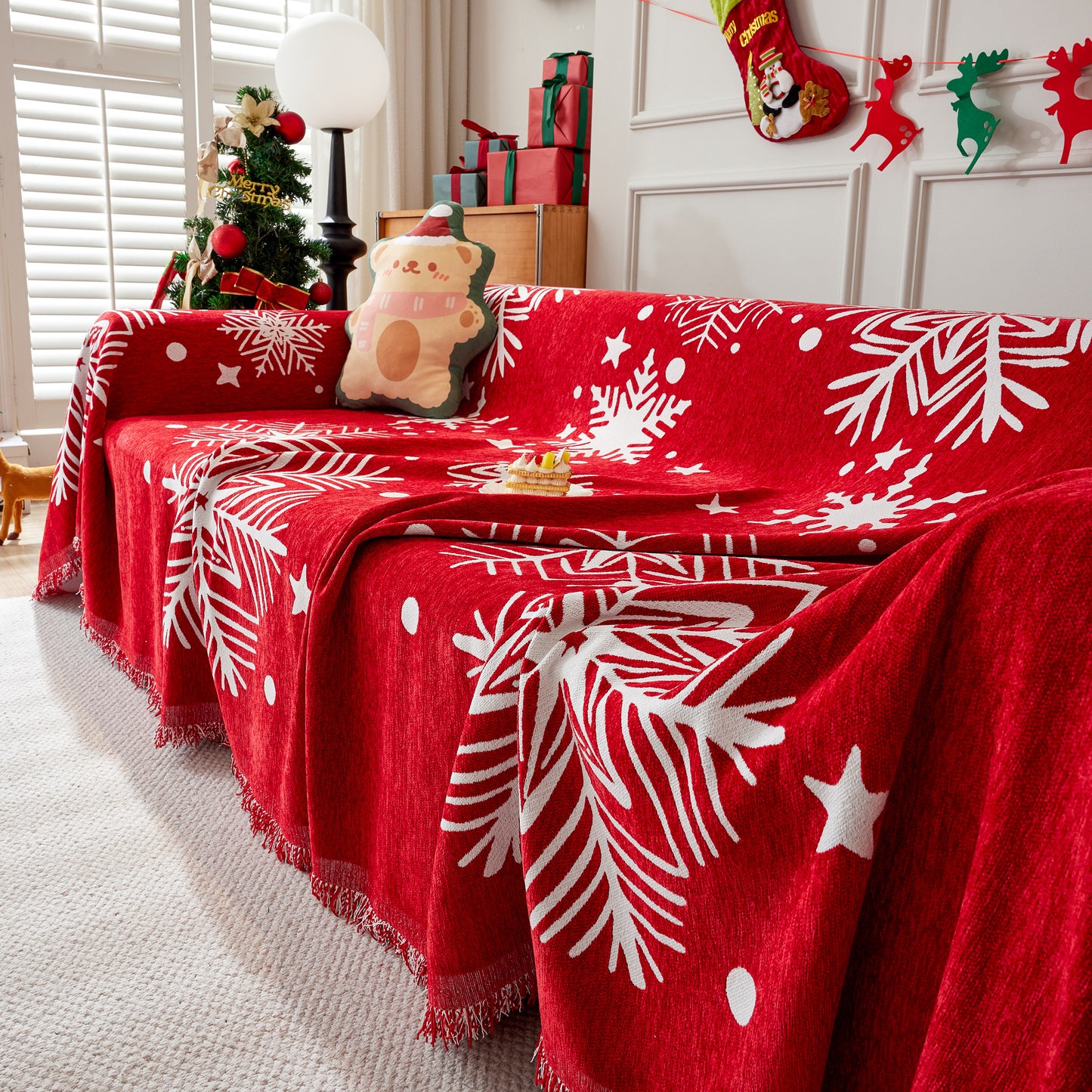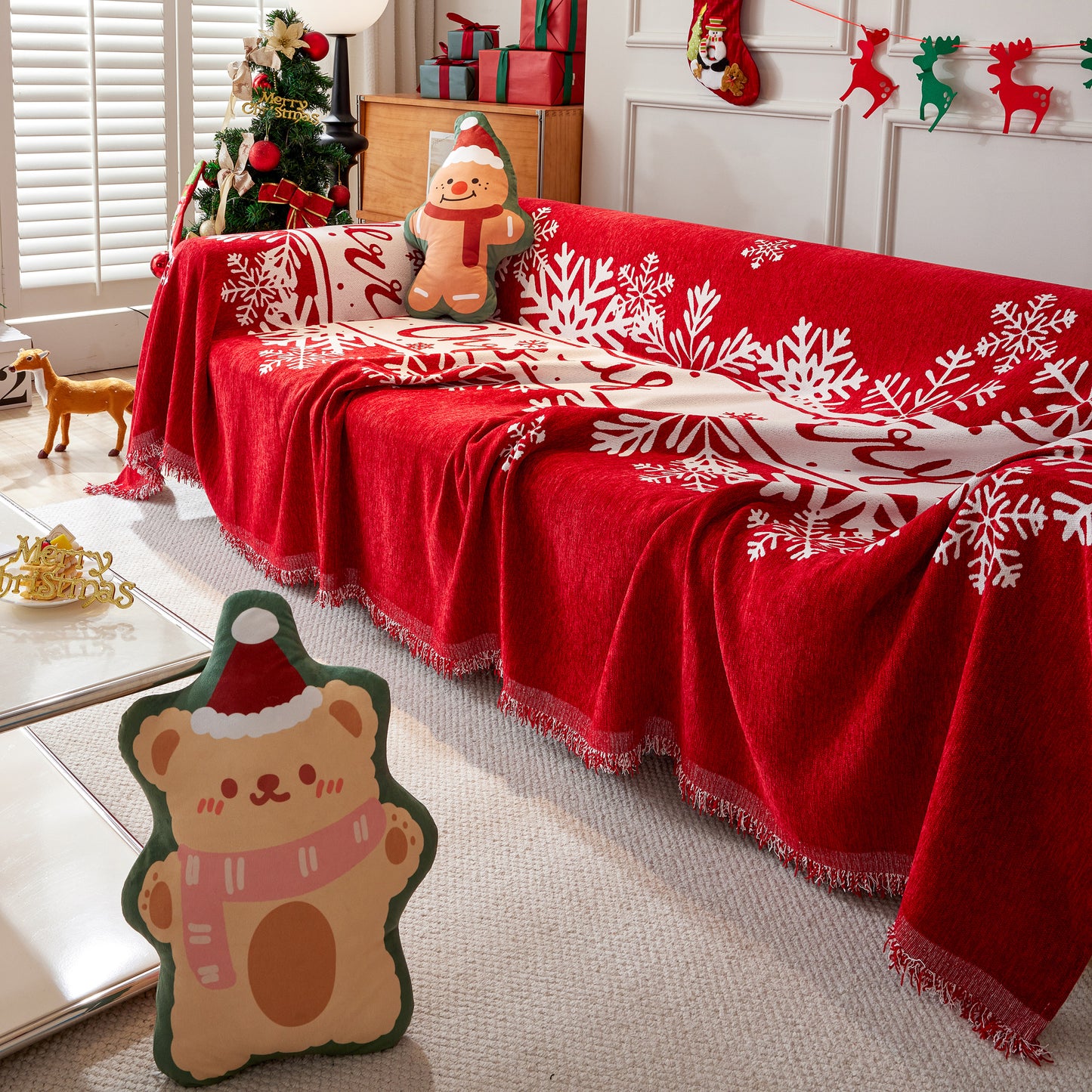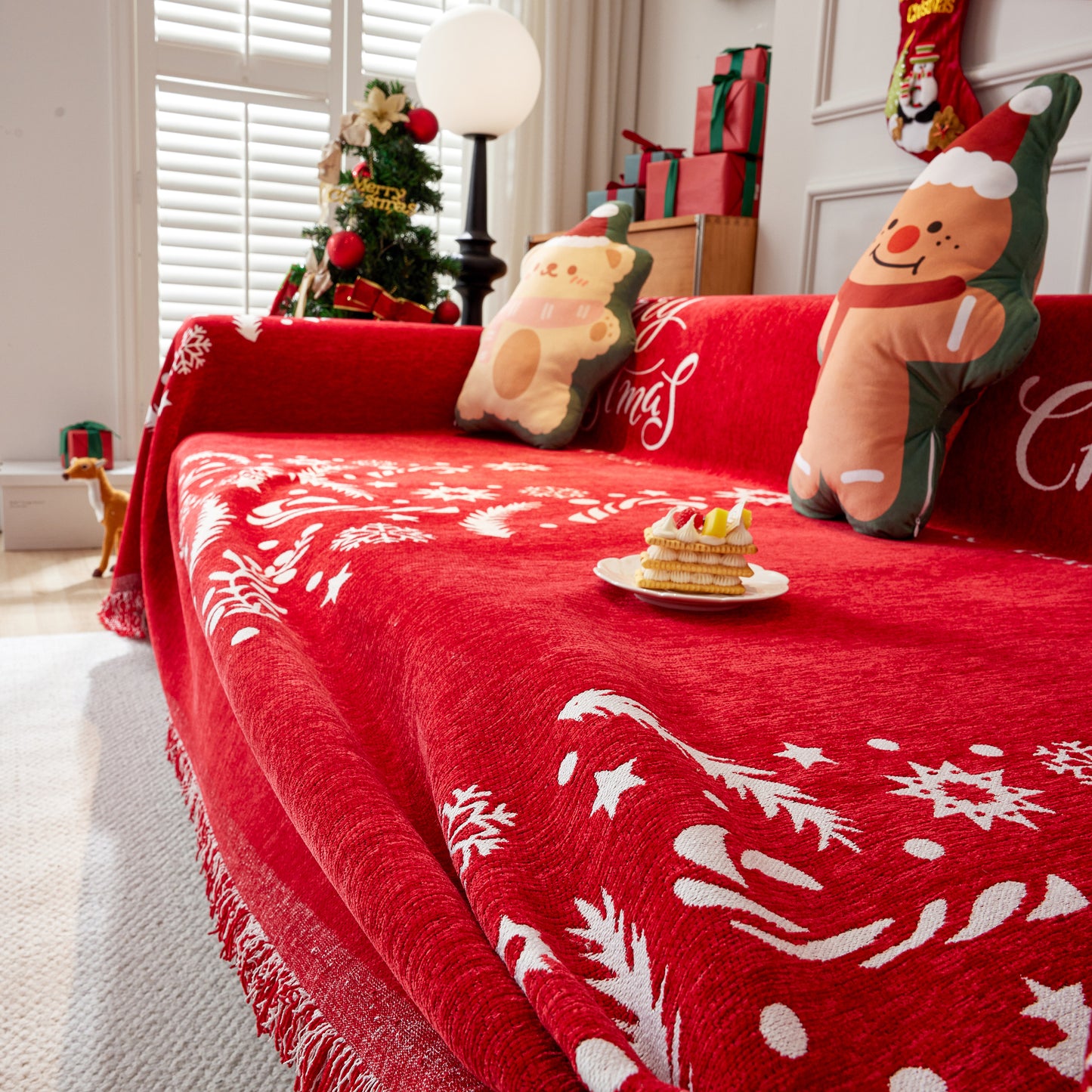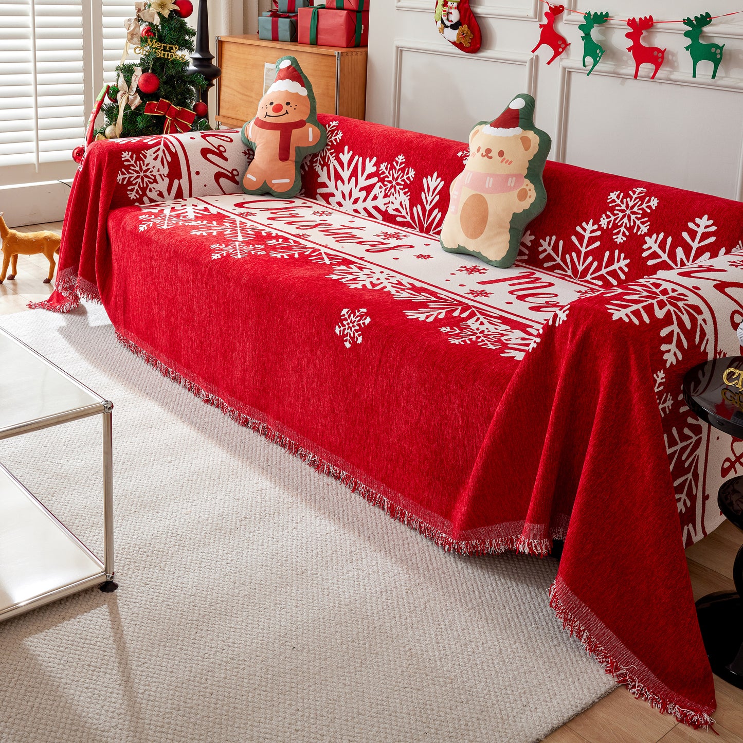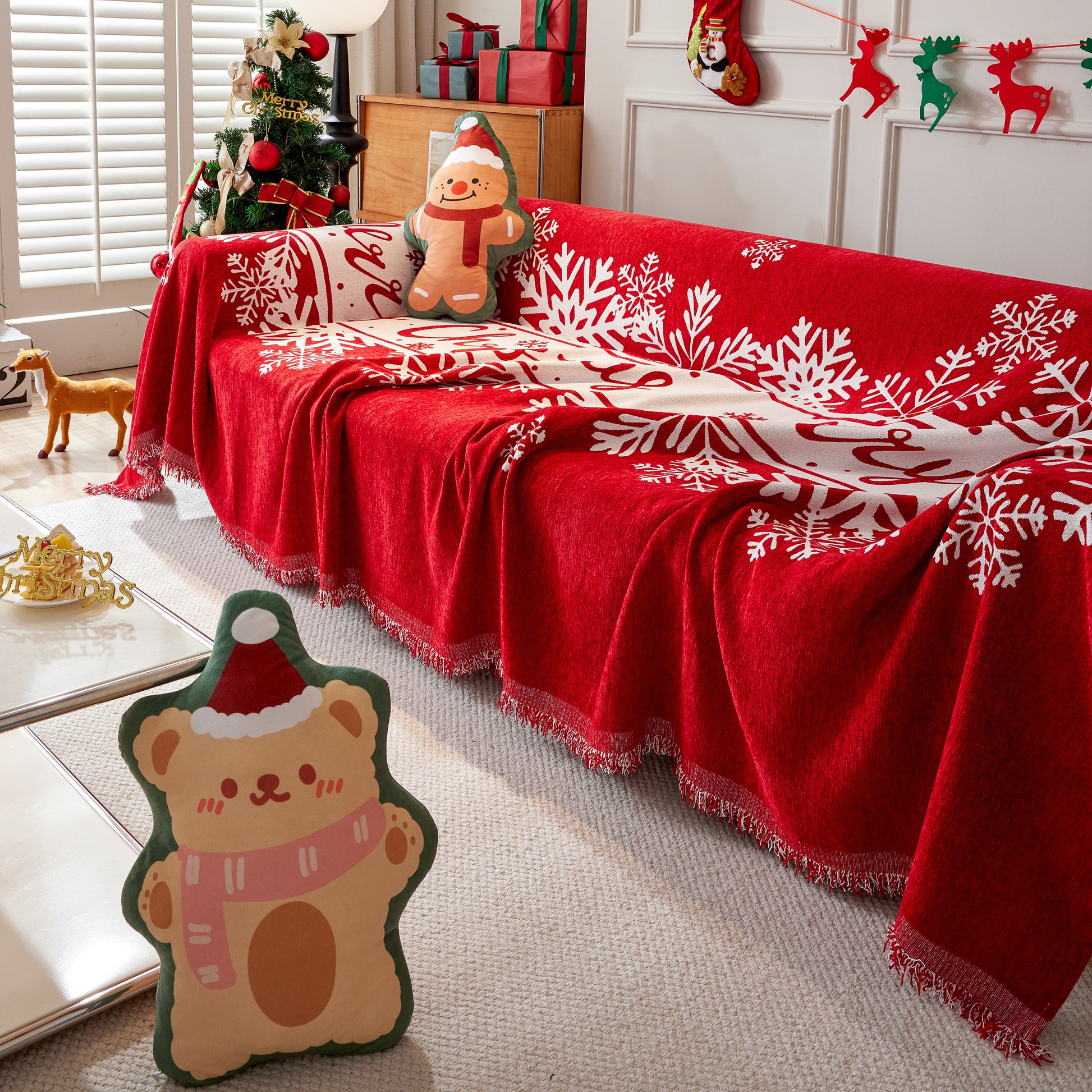 Merry Christmas Cozy Chenille Couch Cover Blanket, Non Slip Sofa Cover, Furniture Covers for Pets