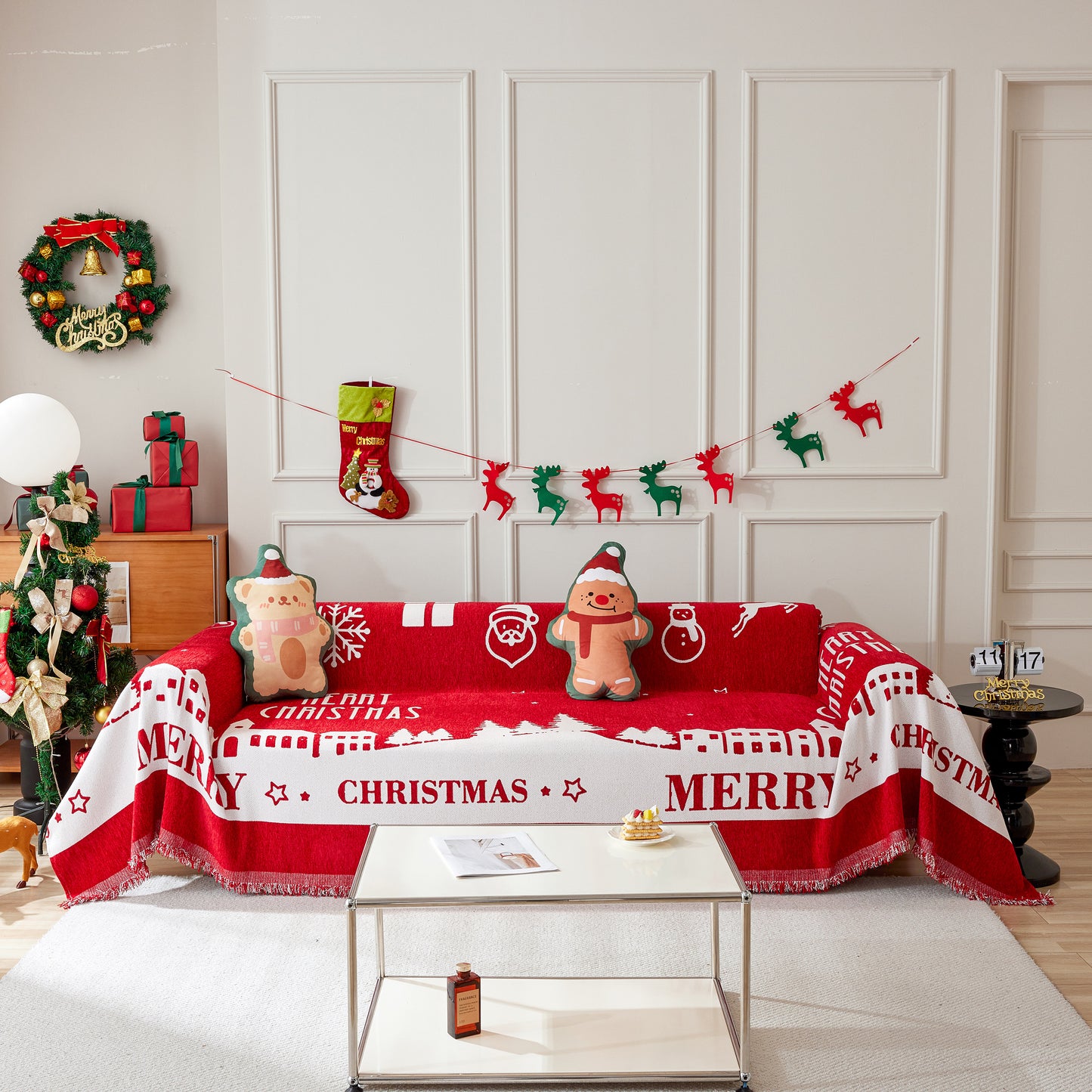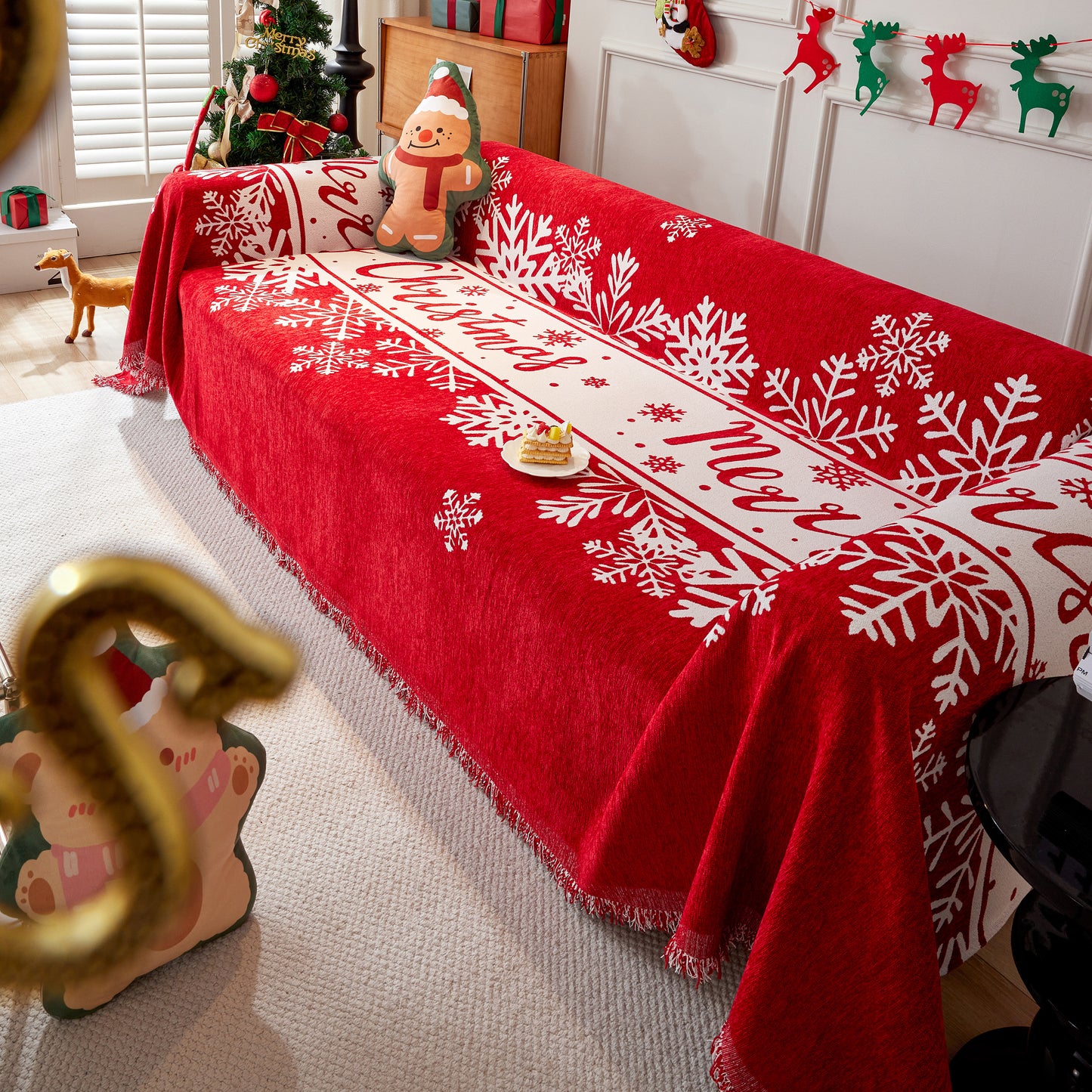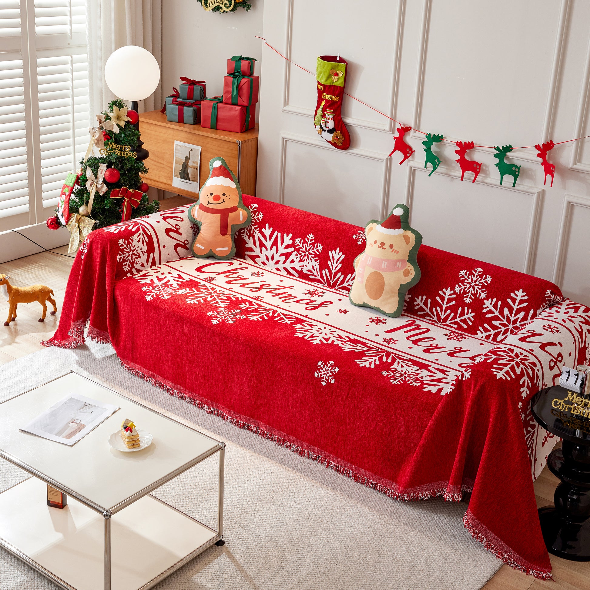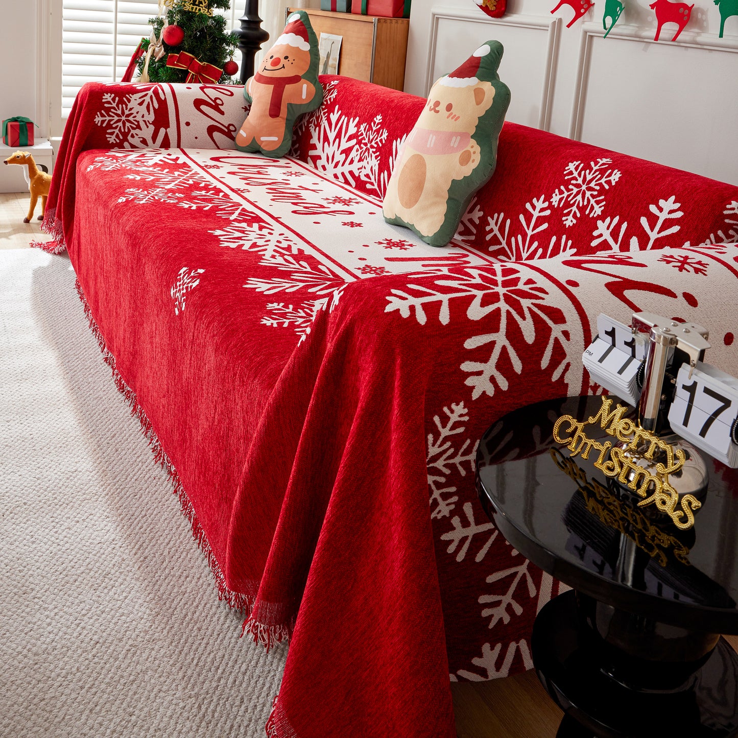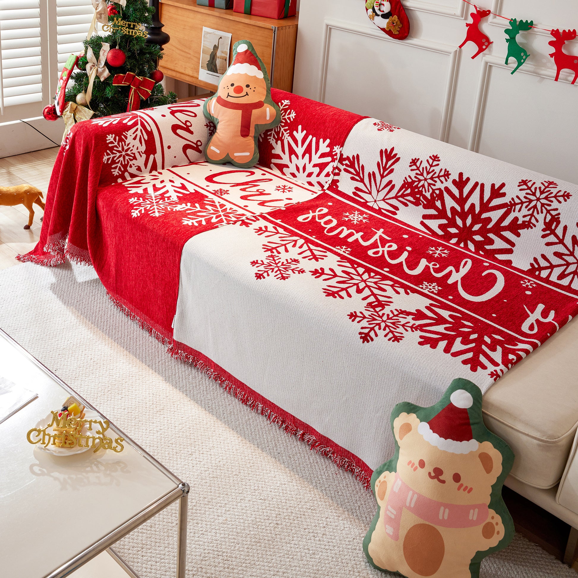 Merry Christmas Cozy Chenille Couch Cover Blanket, Non Slip Sofa Cover, Furniture Covers for Pets