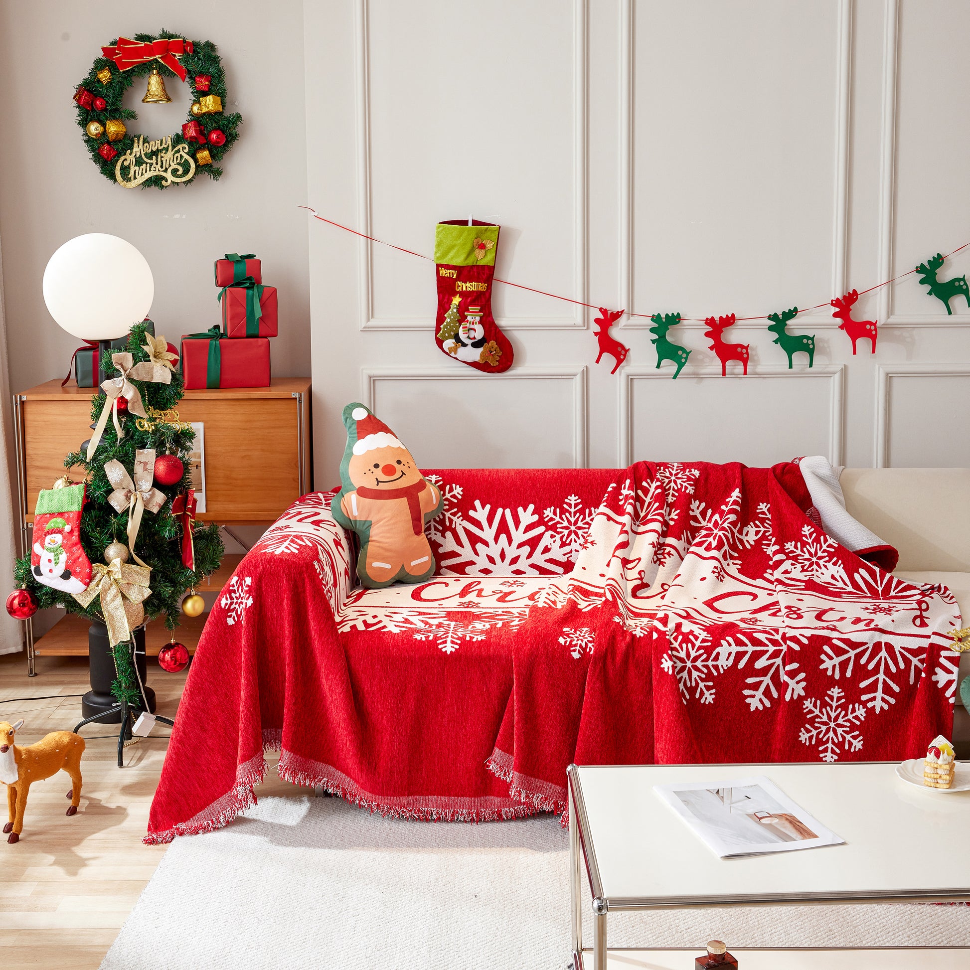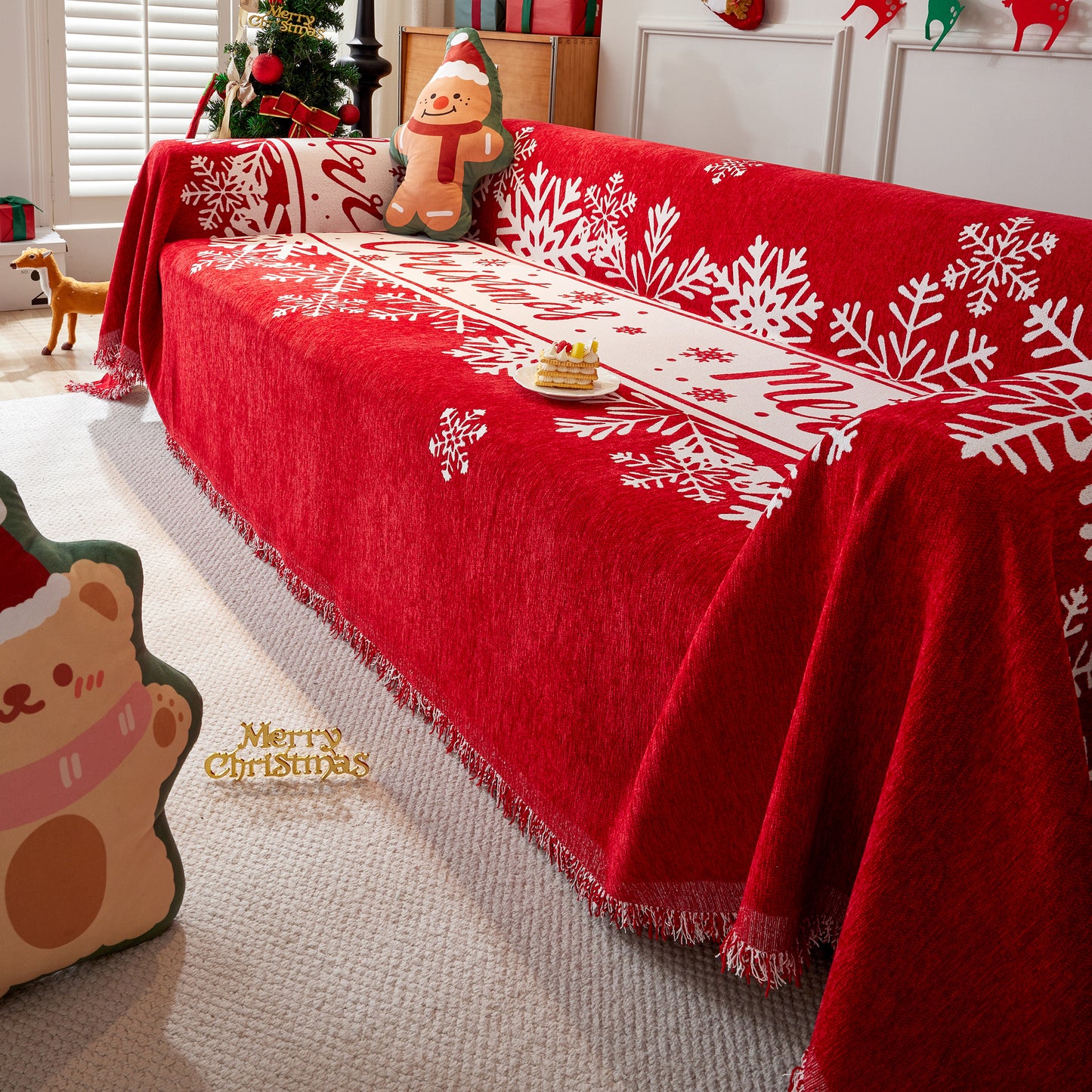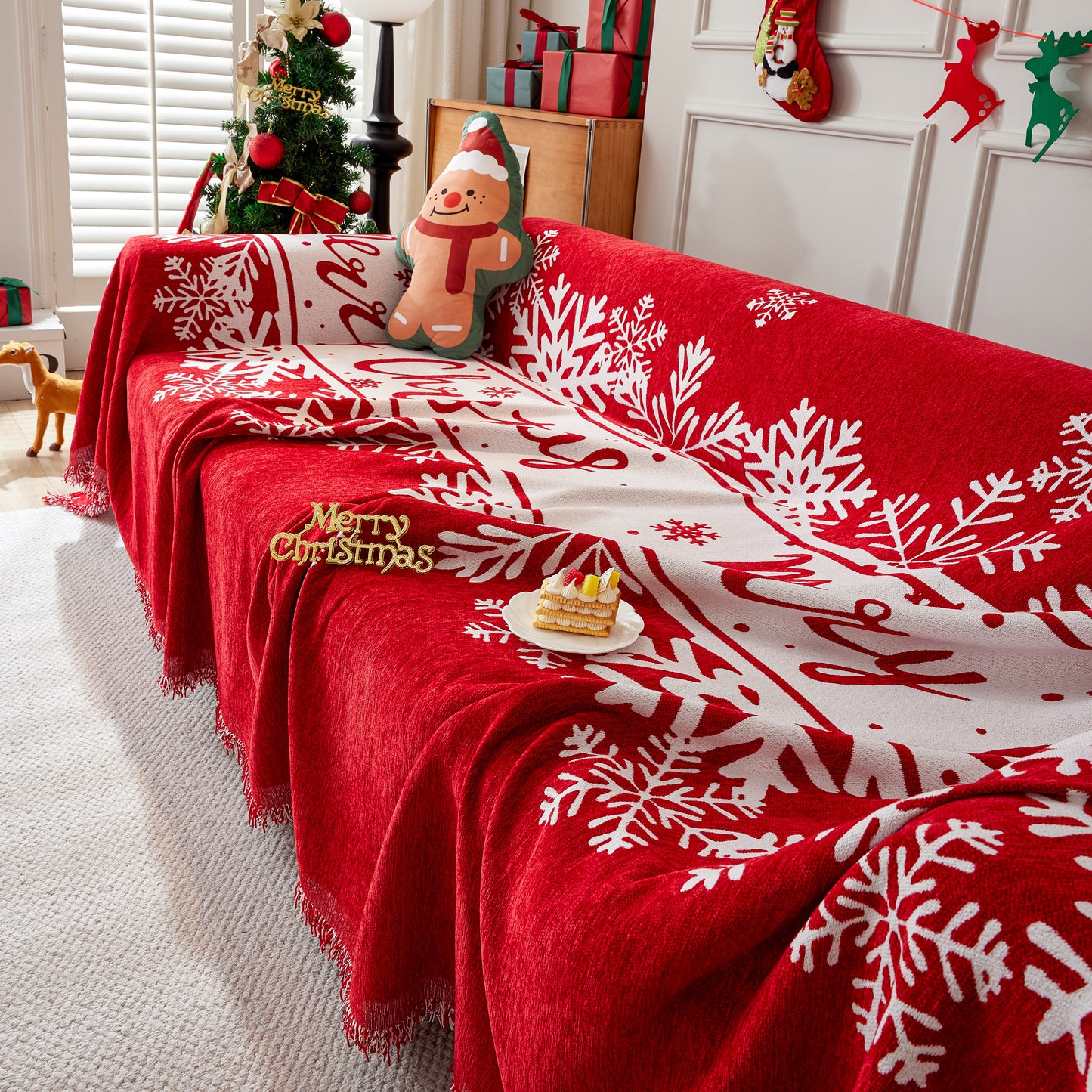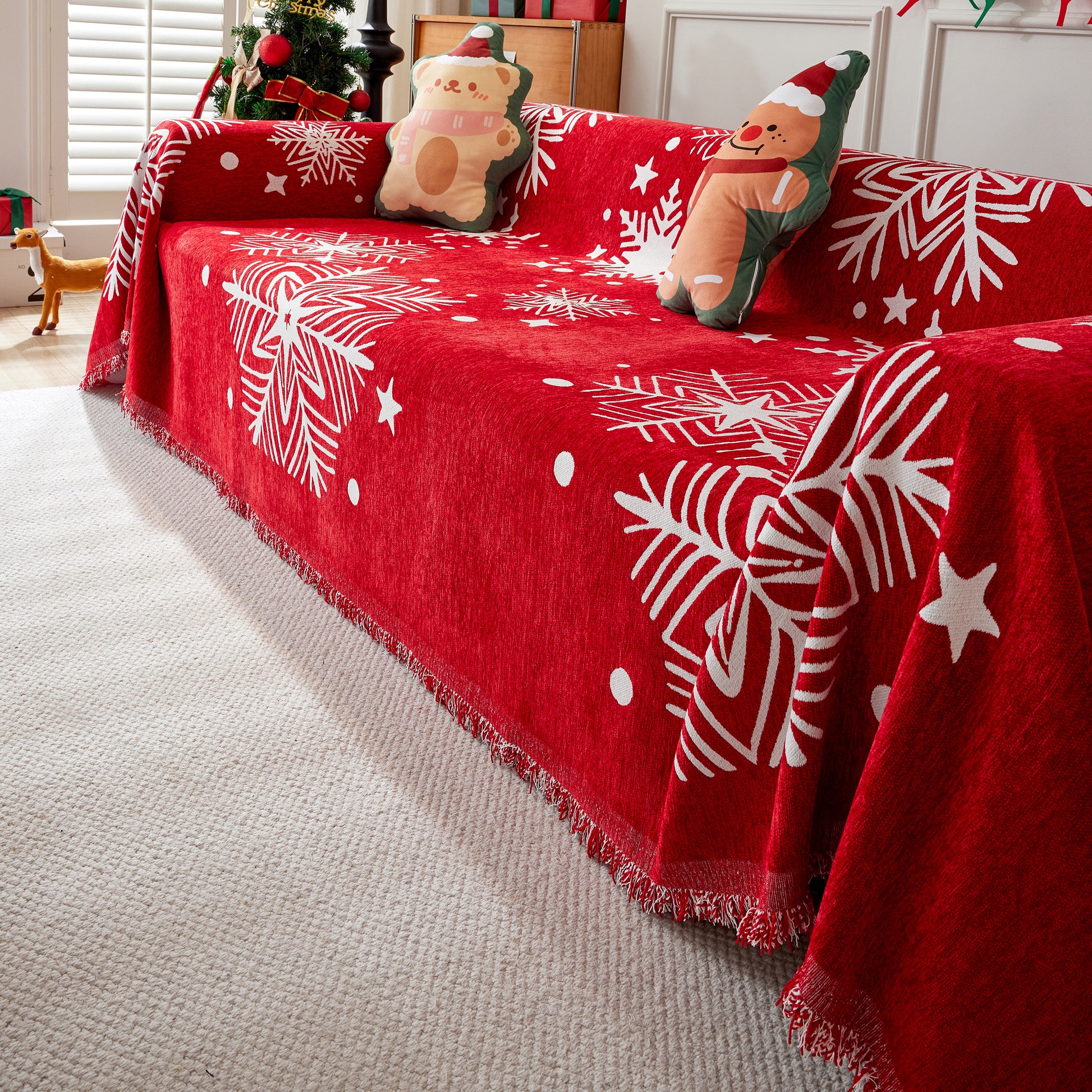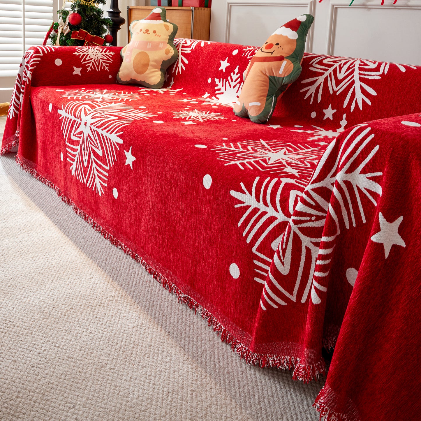 Merry Christmas Cozy Chenille Couch Cover Blanket, Non Slip Sofa Cover, Furniture Covers for Pets