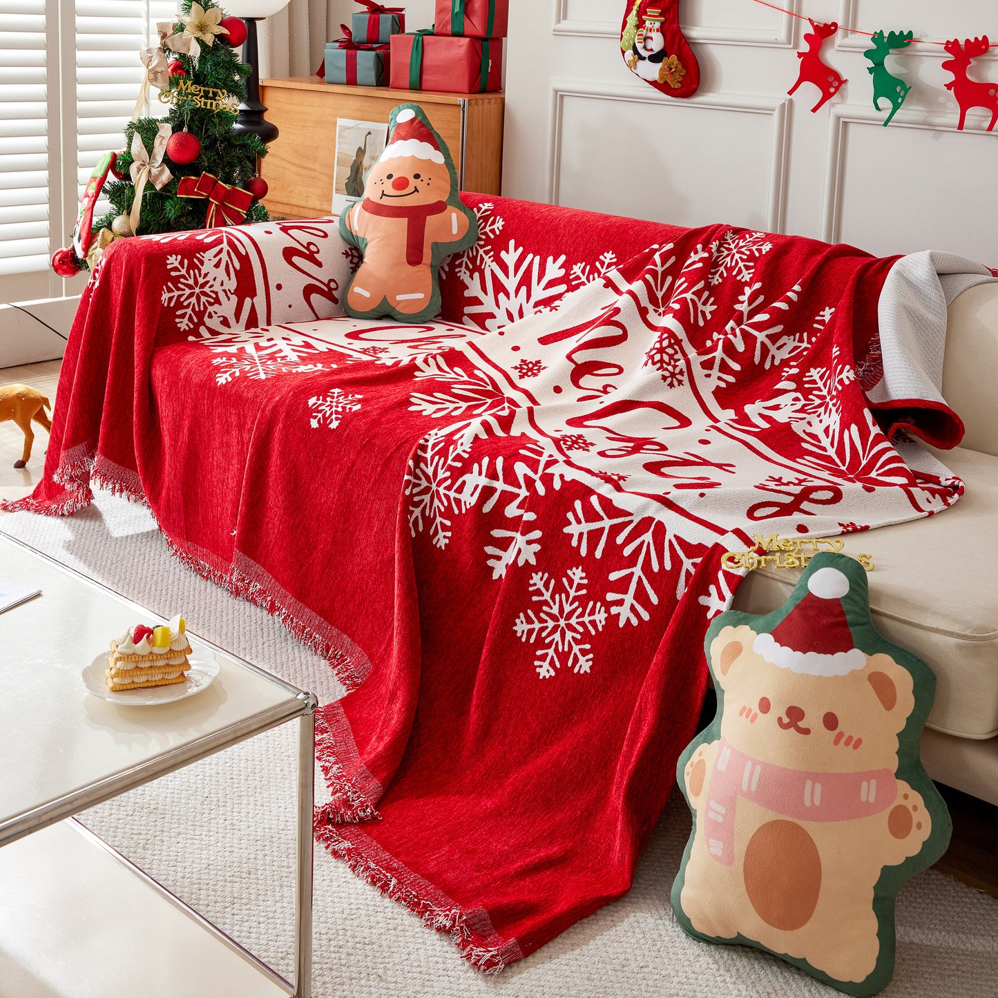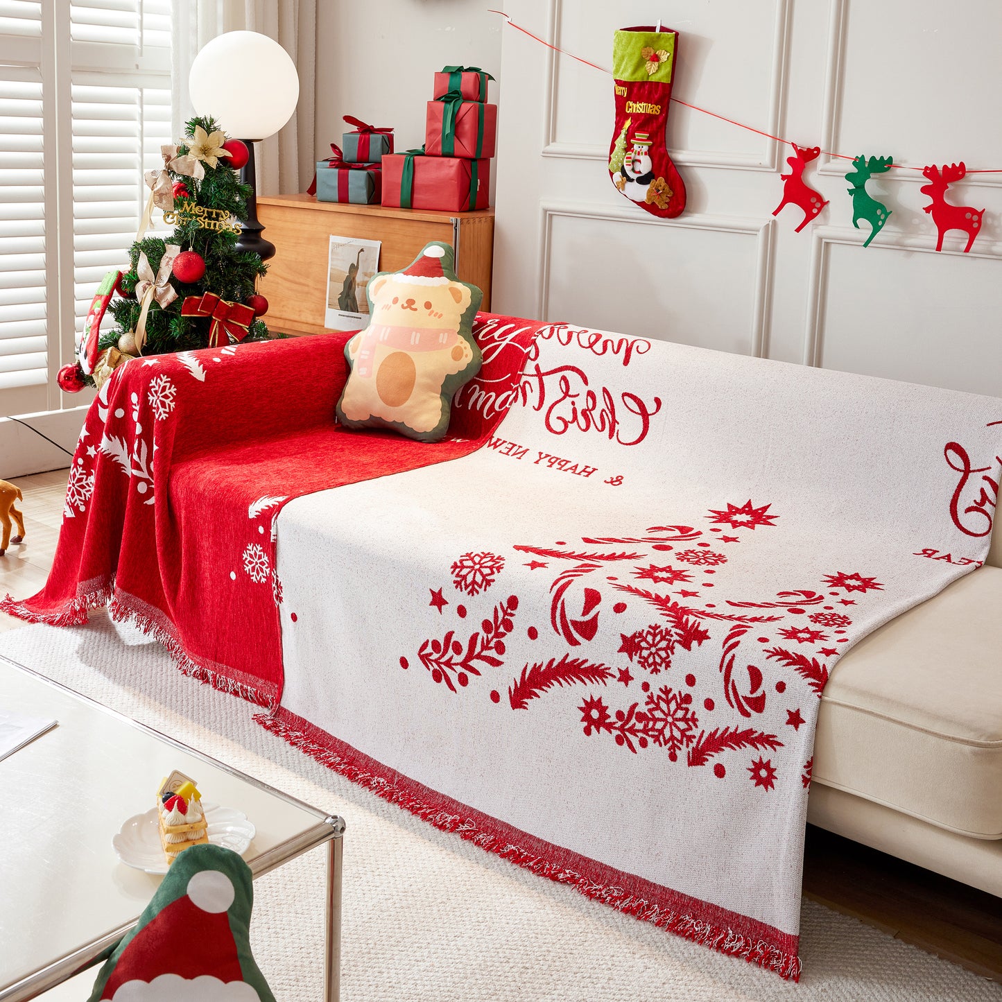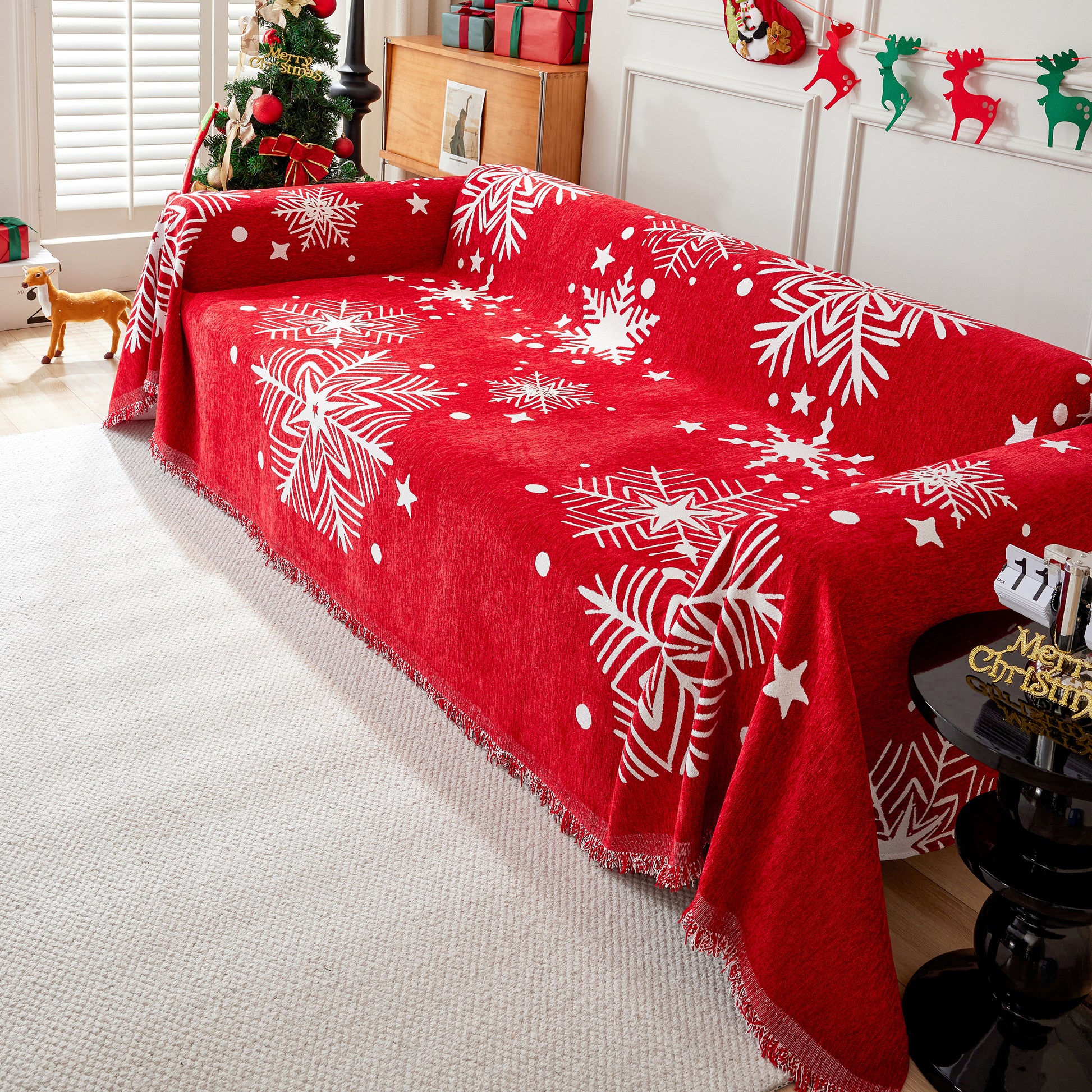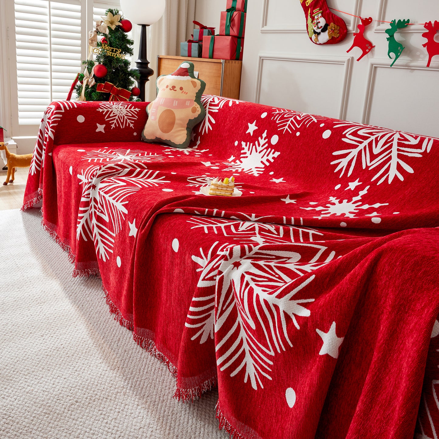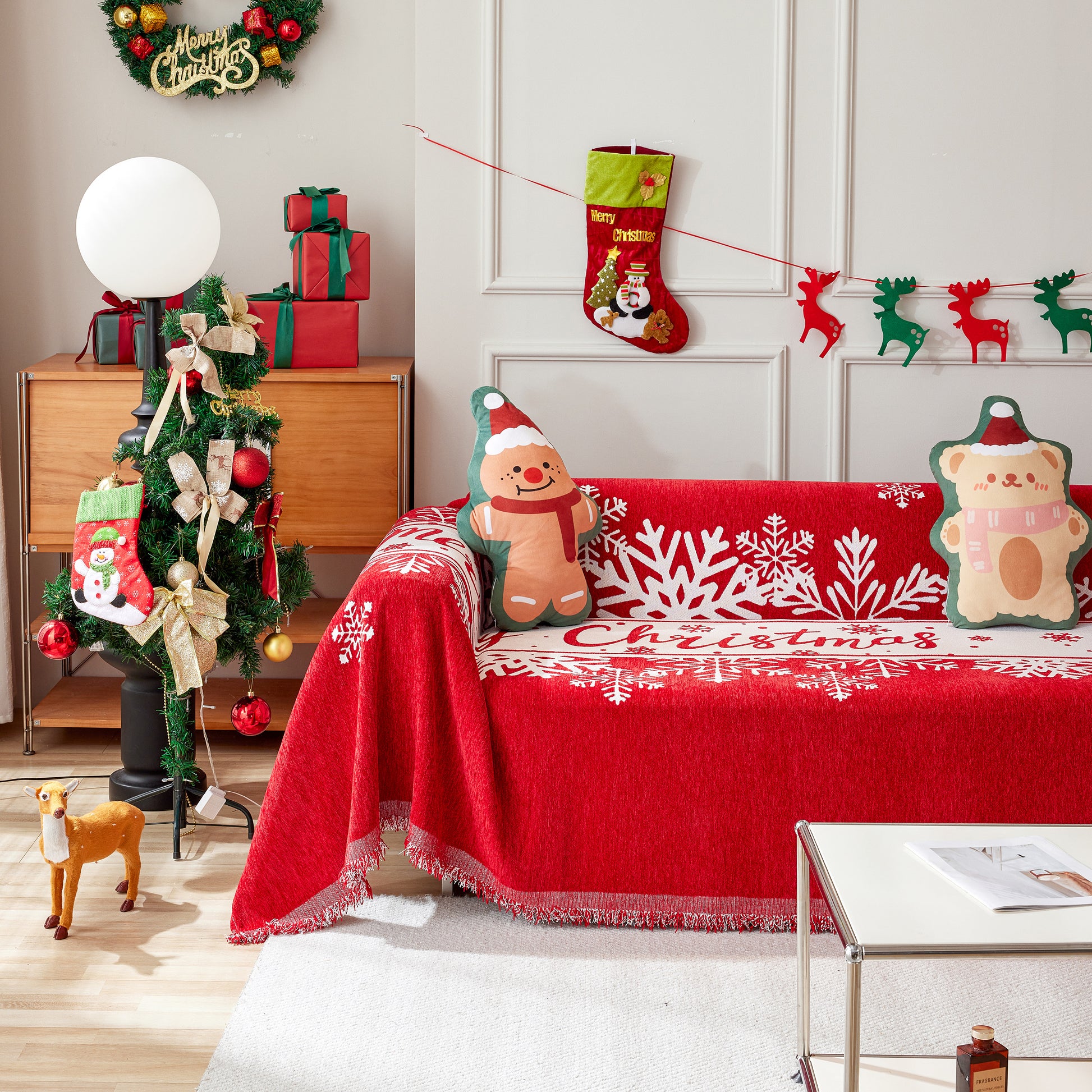 Merry Christmas Cozy Chenille Couch Cover Blanket, Non Slip Sofa Cover, Furniture Covers for Pets