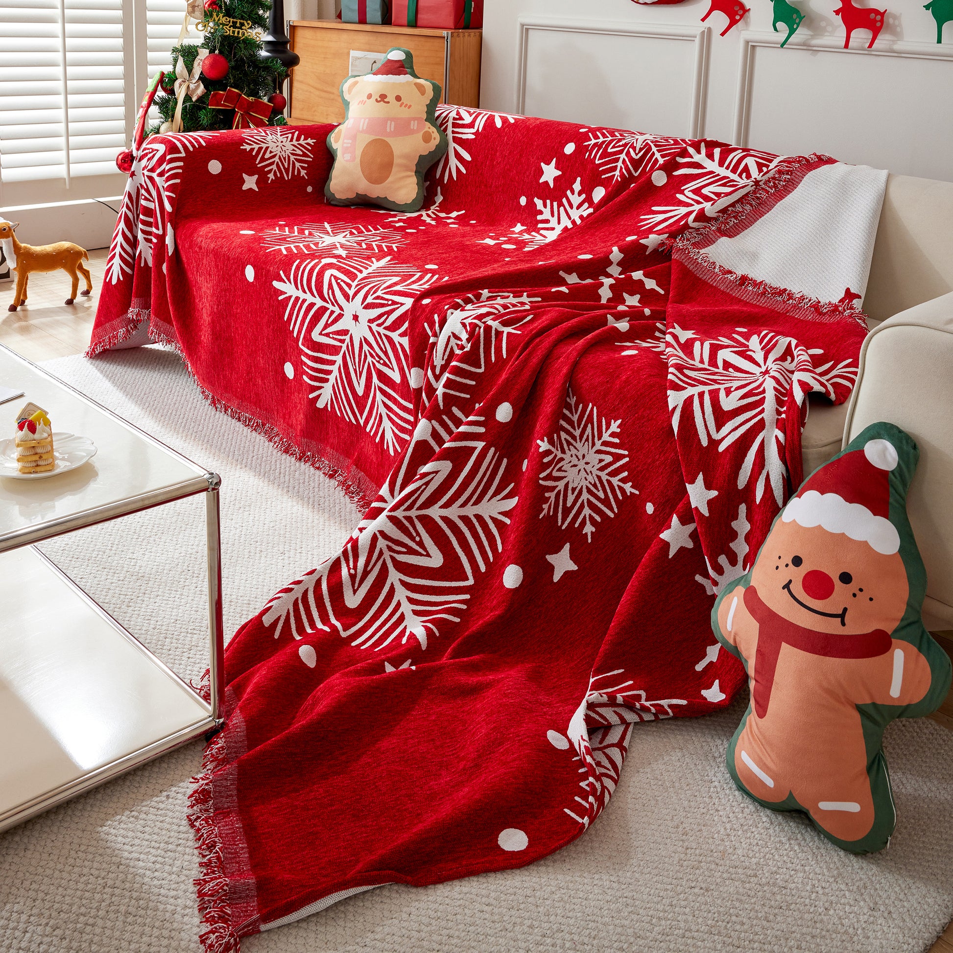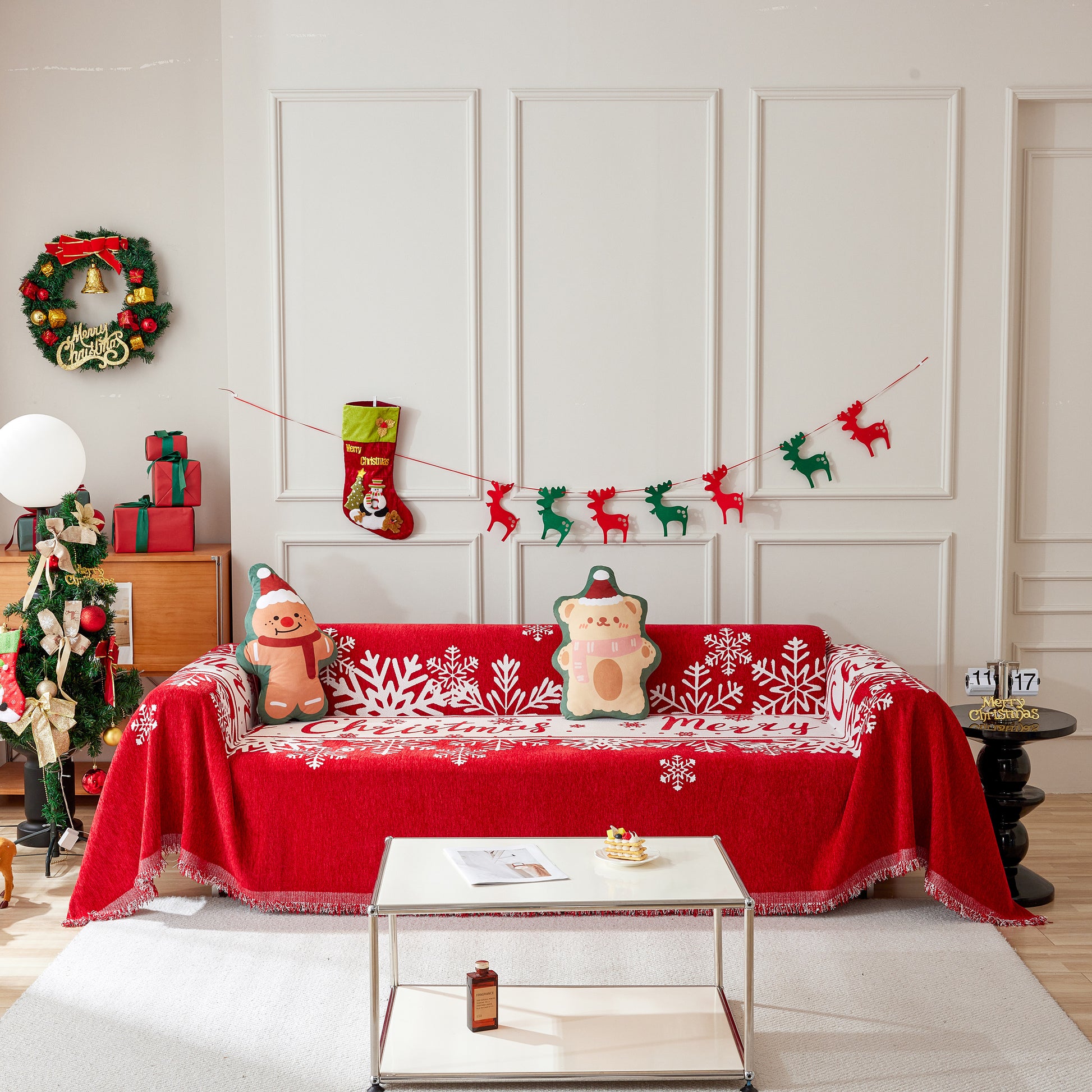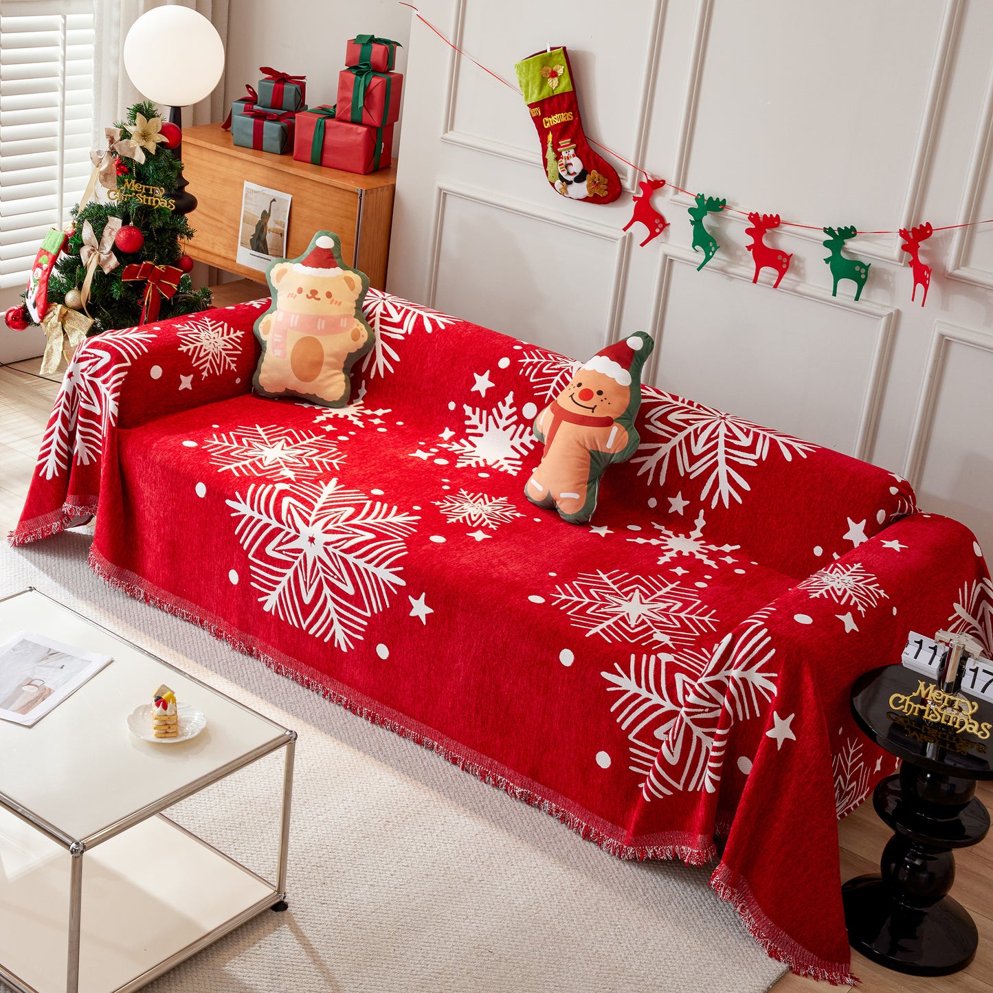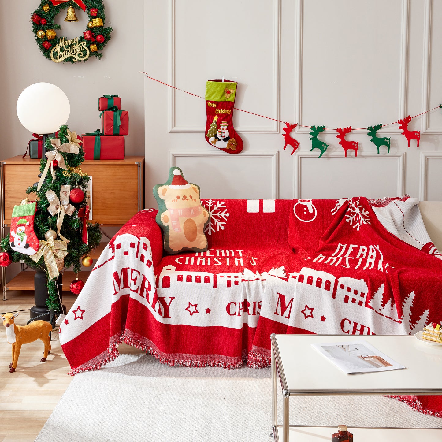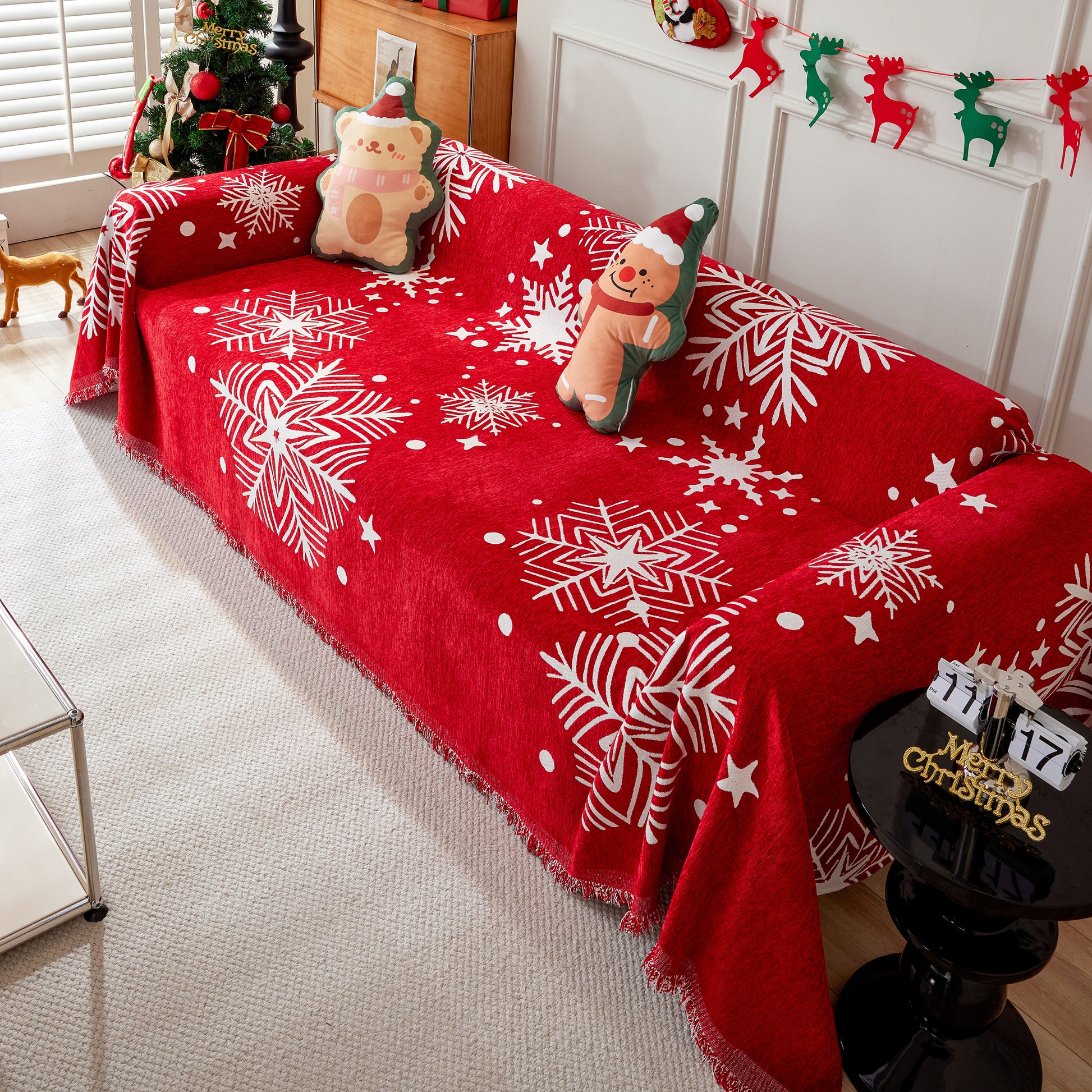 Merry Christmas Cozy Chenille Couch Cover Blanket, Non Slip Sofa Cover, Furniture Covers for Pets