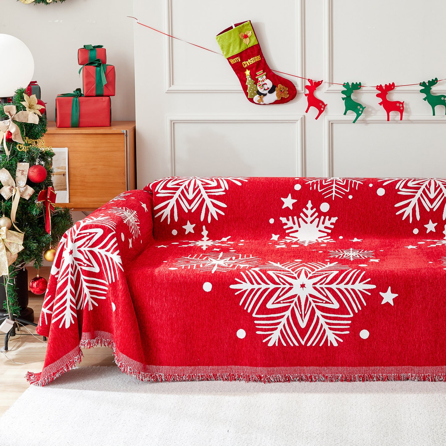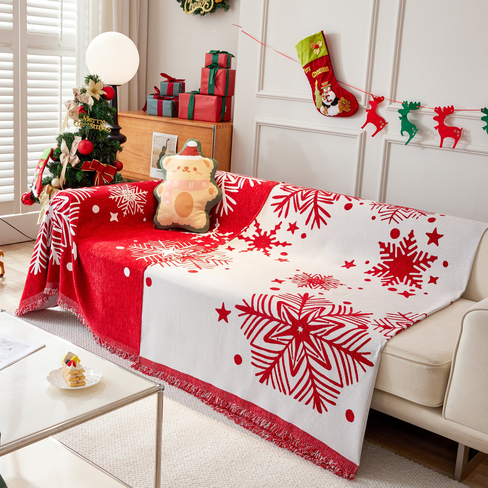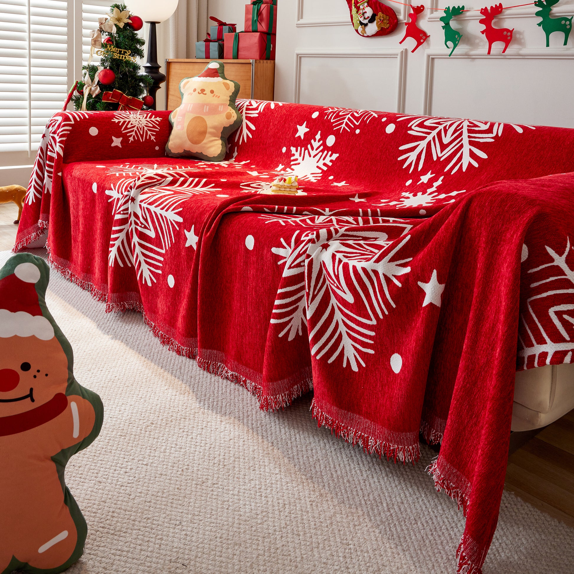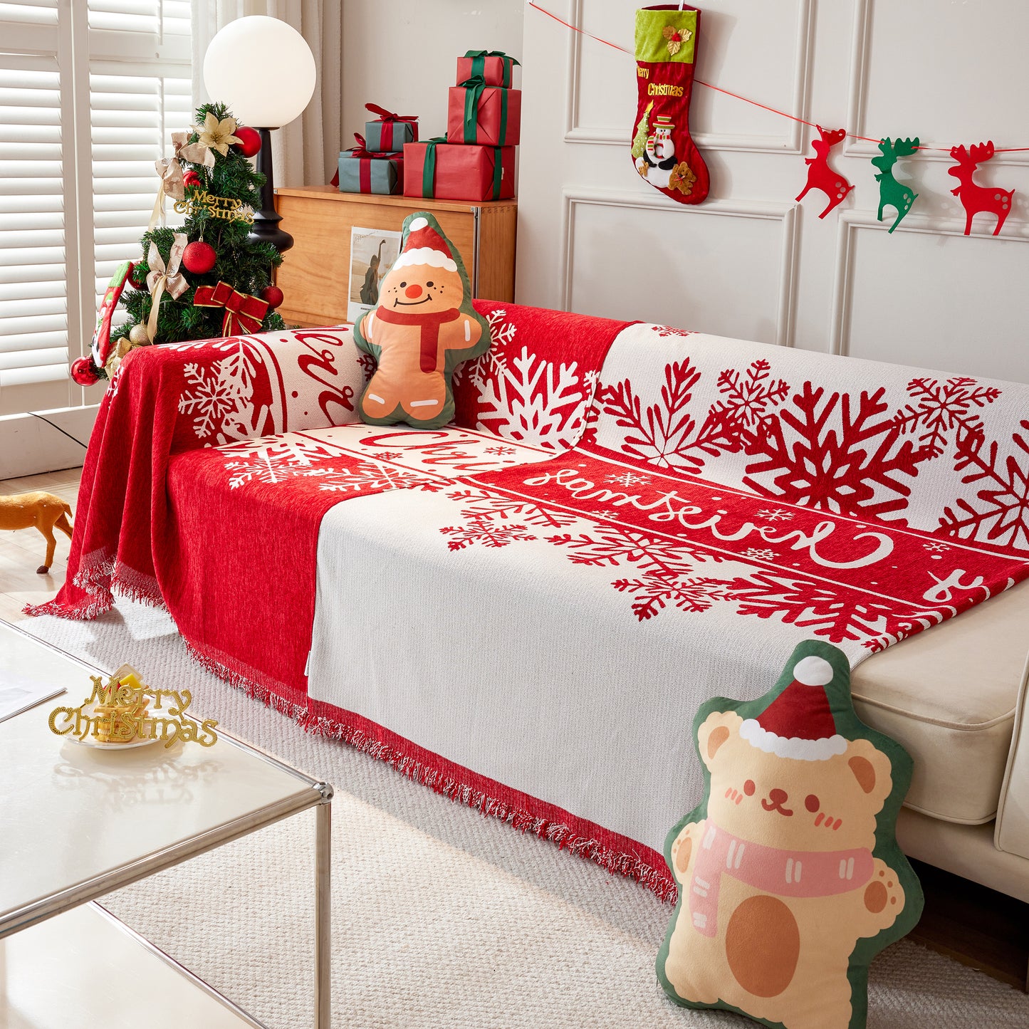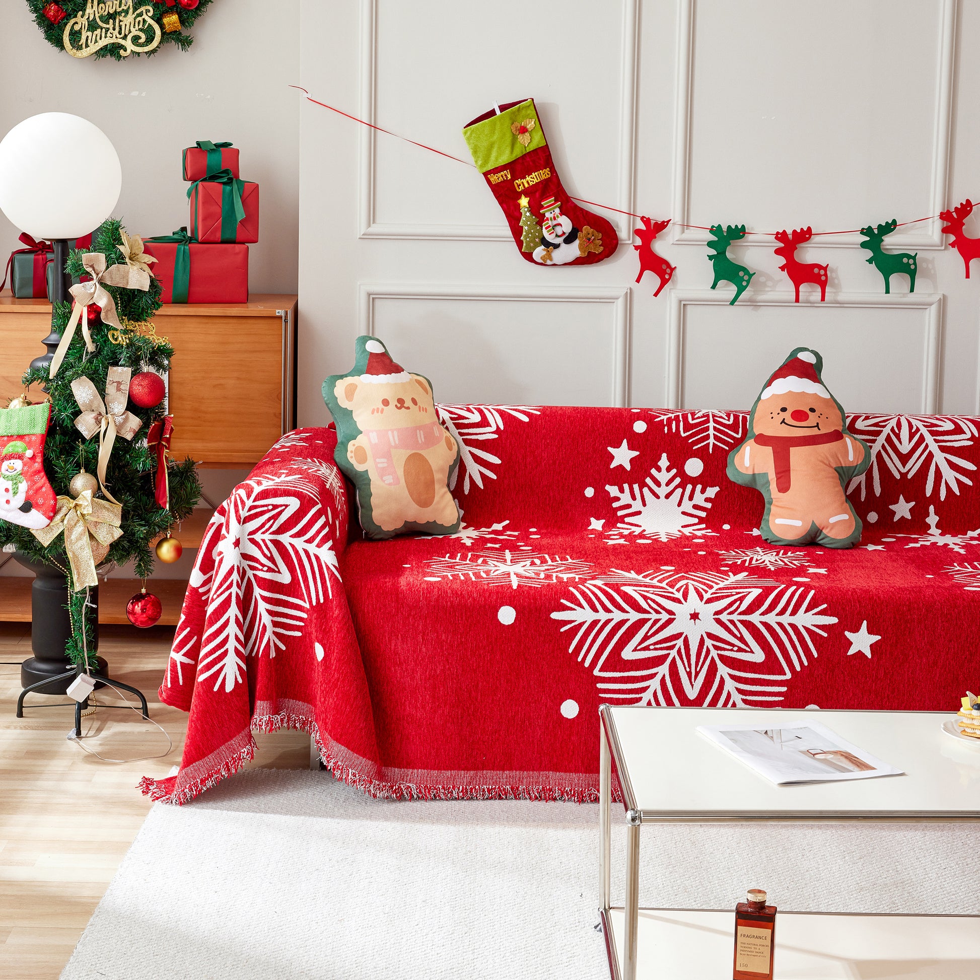 Merry Christmas Cozy Chenille Couch Cover Blanket, Non Slip Sofa Cover, Furniture Covers for Pets