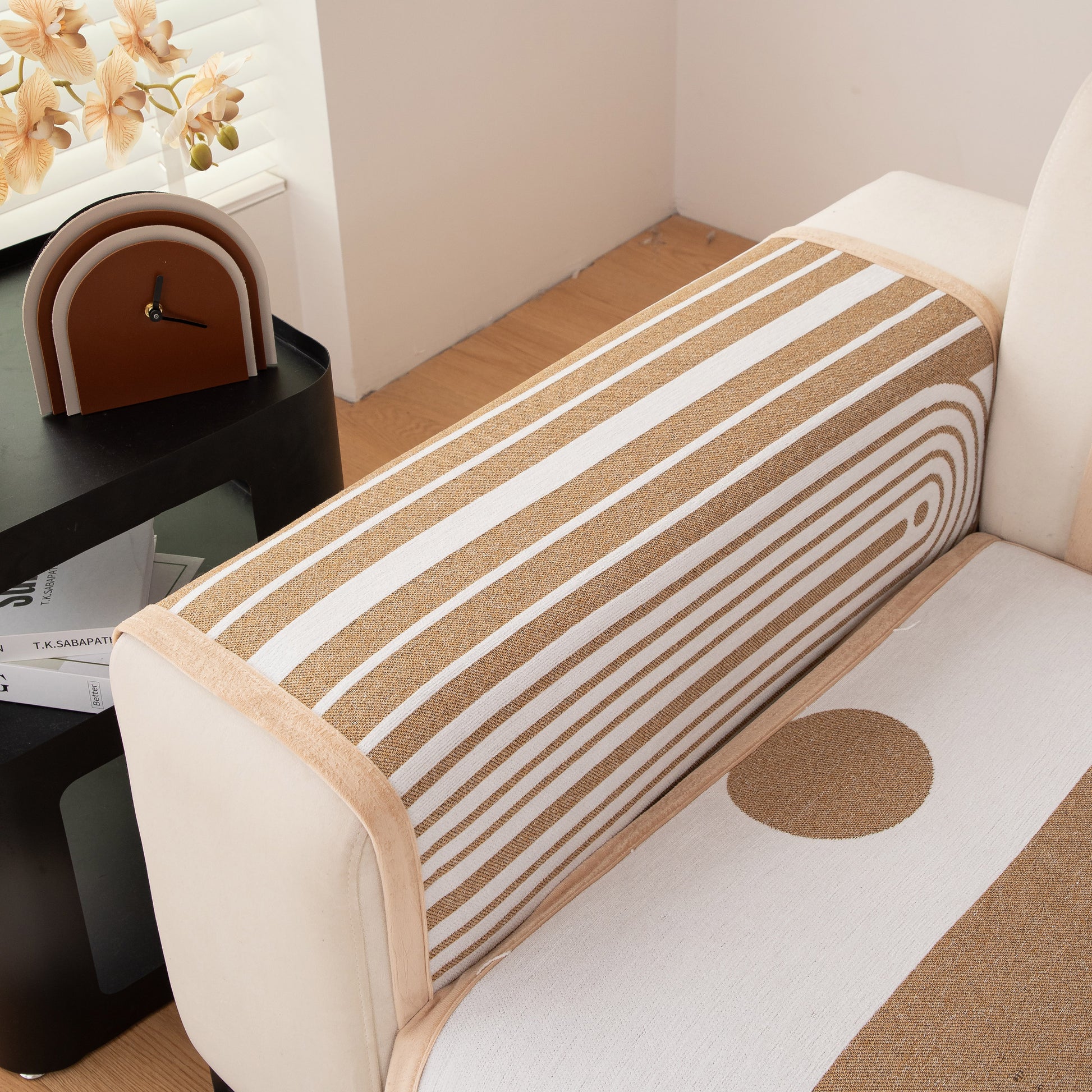 This modern sofa cover is designed with both aesthetics and practicality in mind. The front side features a soft-touch chenille fabric, woven with bold curves and circular patterns that lend a modern, architectural feel to the room. The back side is lined with anti-slip silicone dots to help reduce shifting during everyday use.