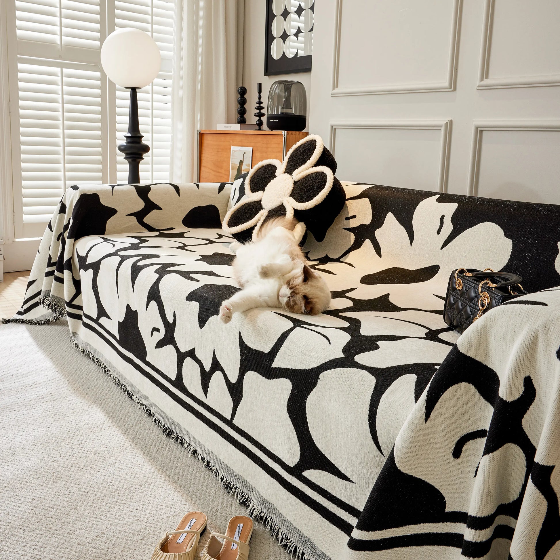 Couvertures de couverture réversible douce épaisse à motif floral pour canapé, couverture de protection de canapé