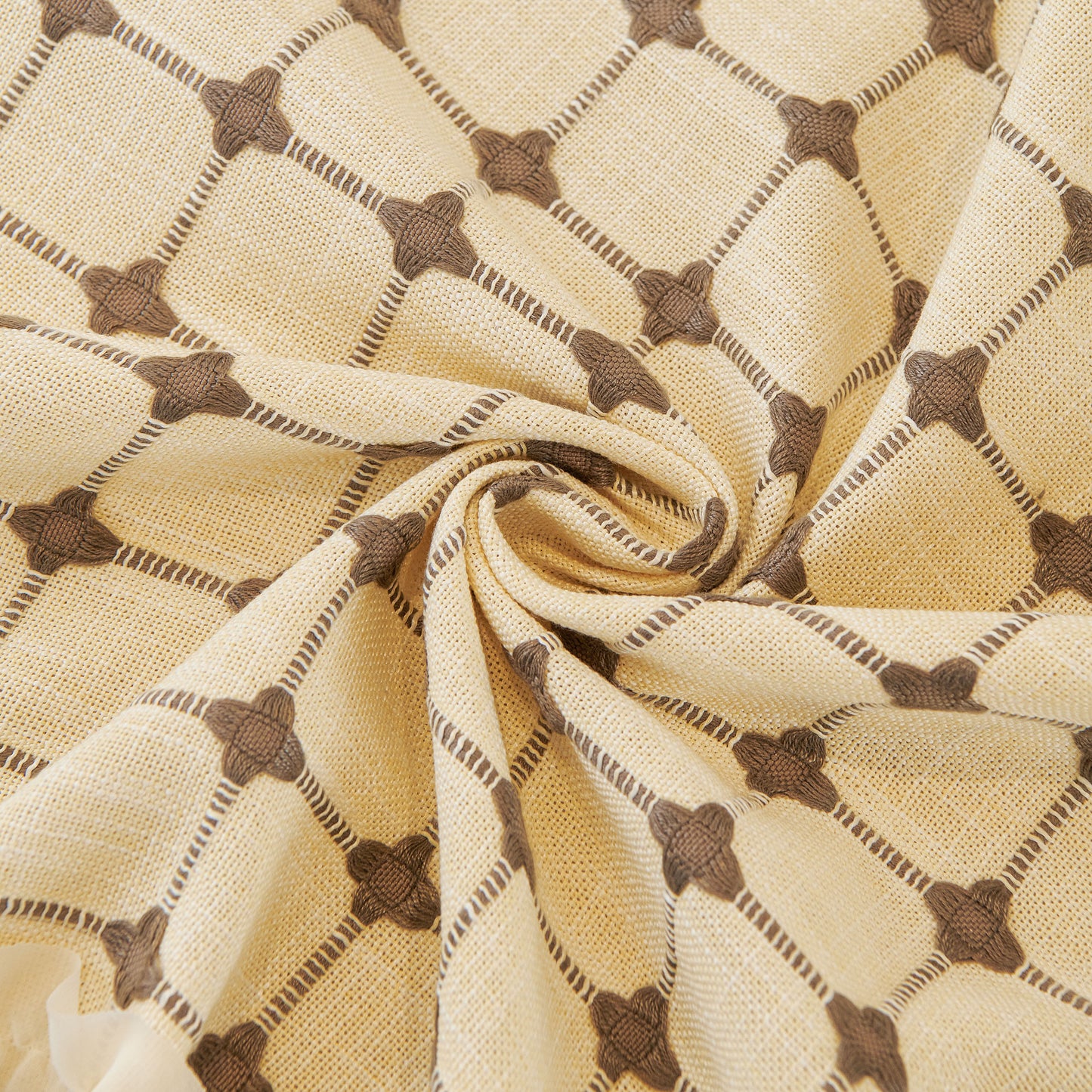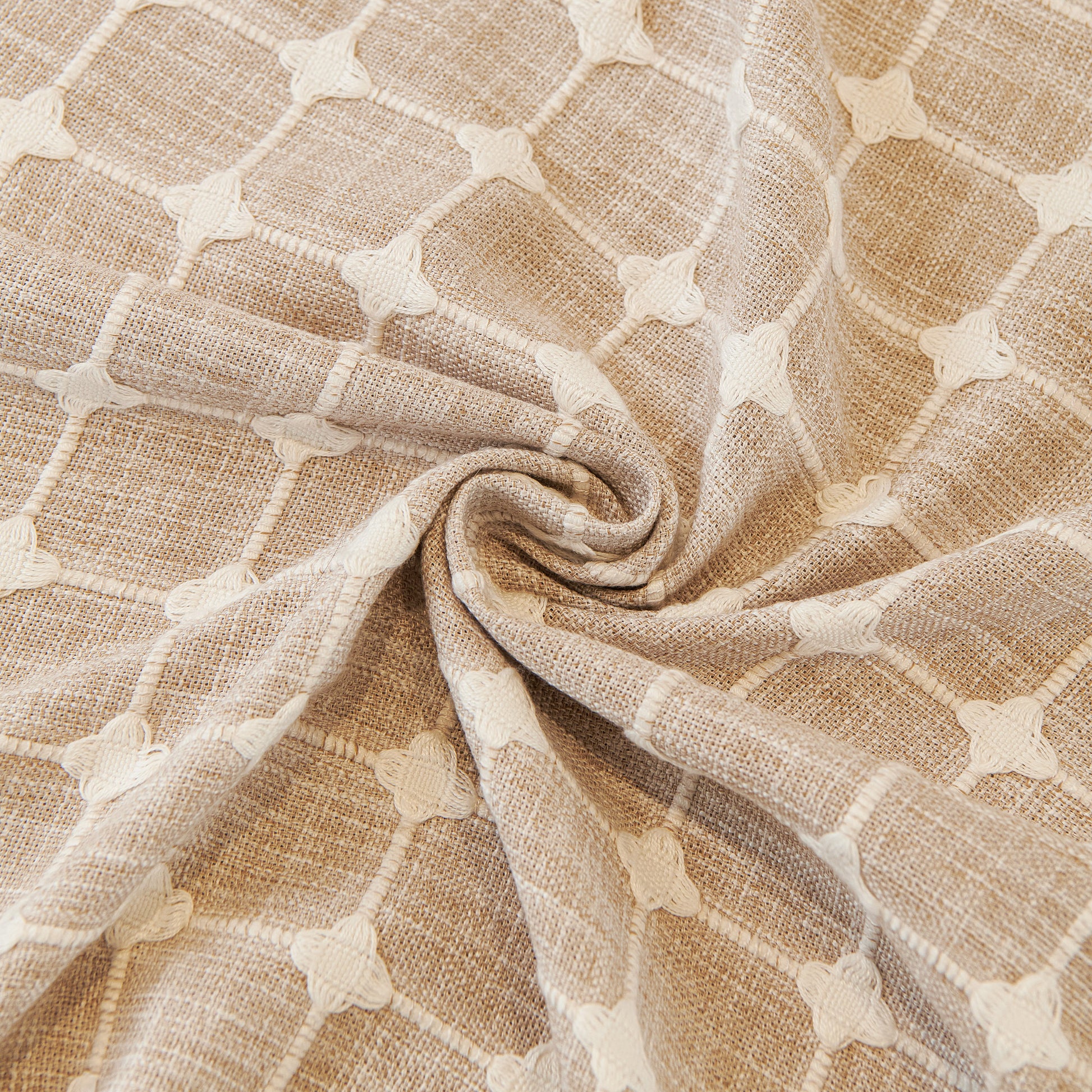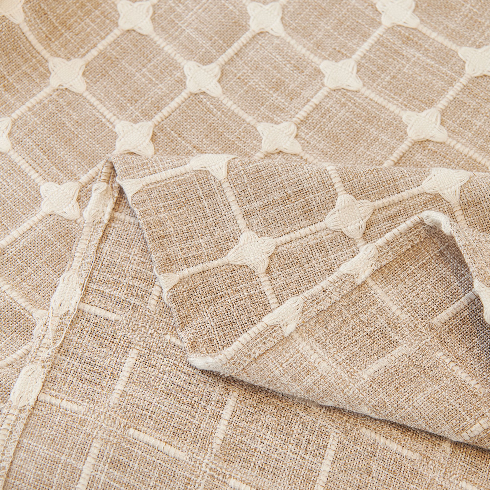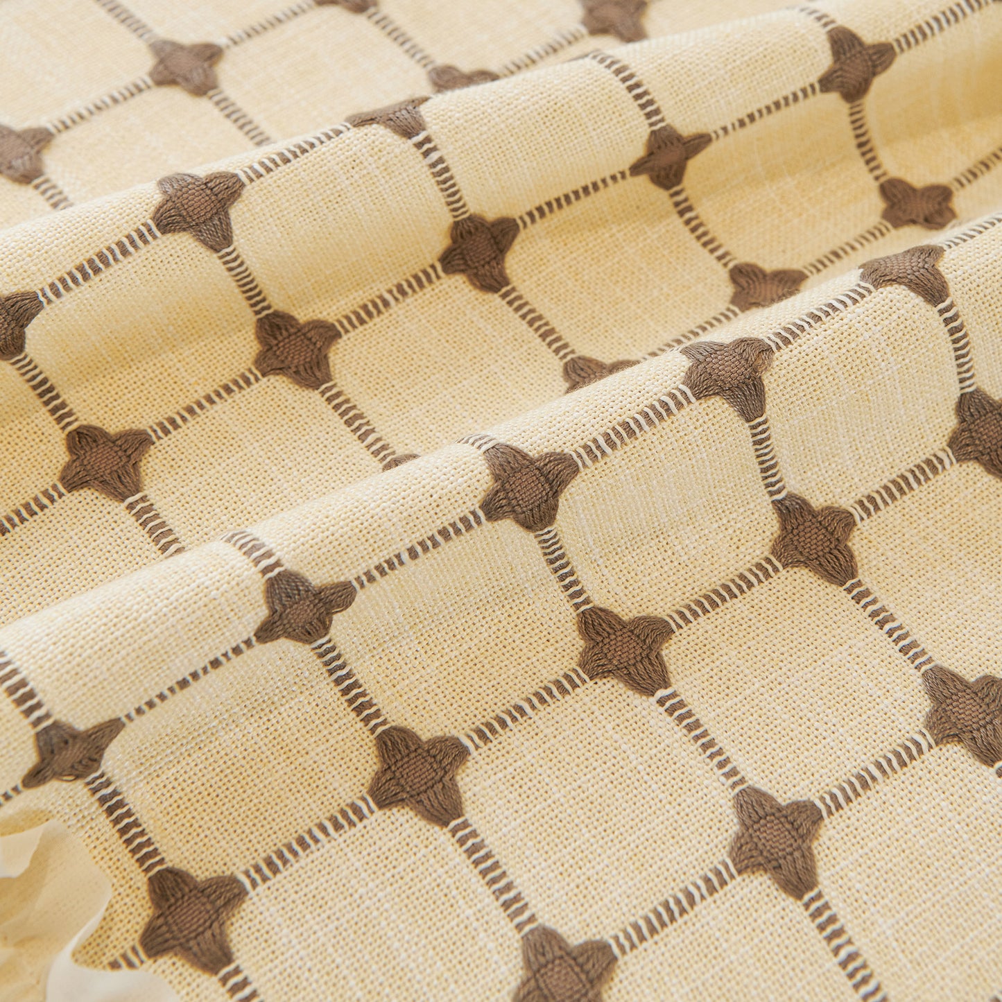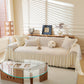This sofa cover is made from a chenille woven fabric with a grid-textured surface, offering a soft yet structured feel. The lower edge is finished with a lightweight sheer ruffle skirt, adding a layered look without adding weight. The overall construction balances decorative texture with breathable comfort.