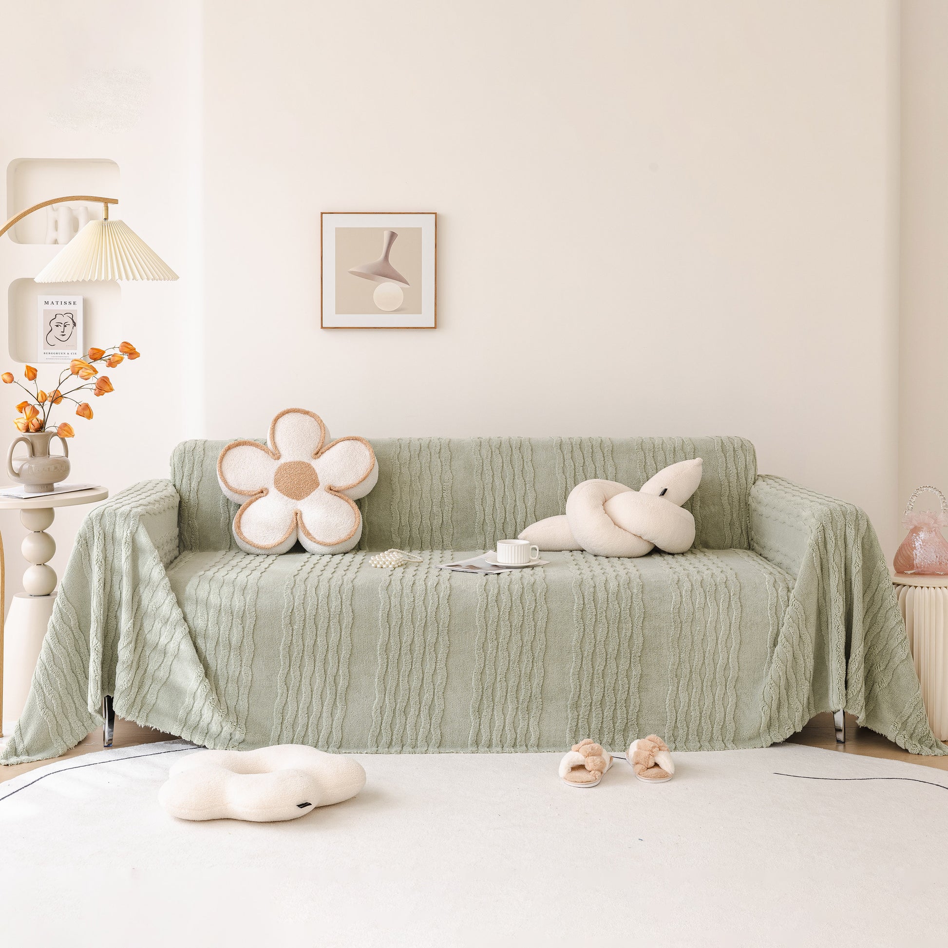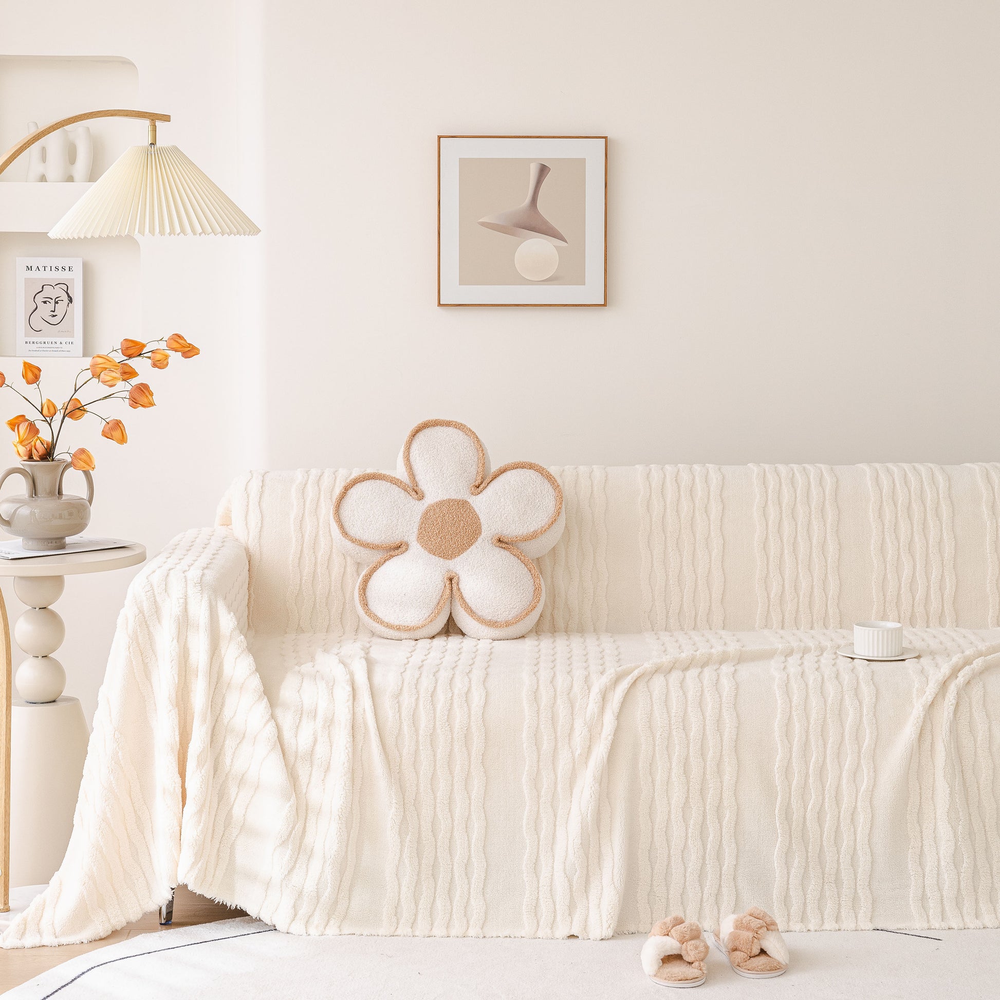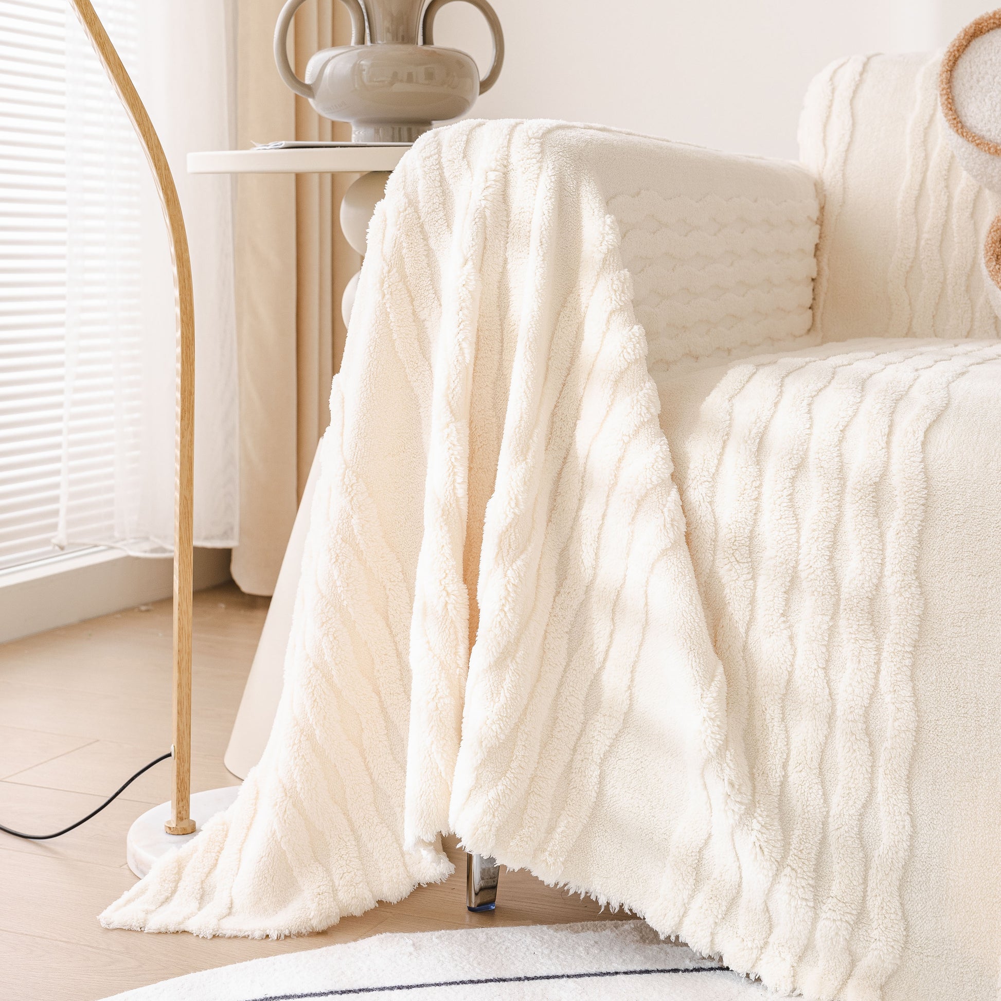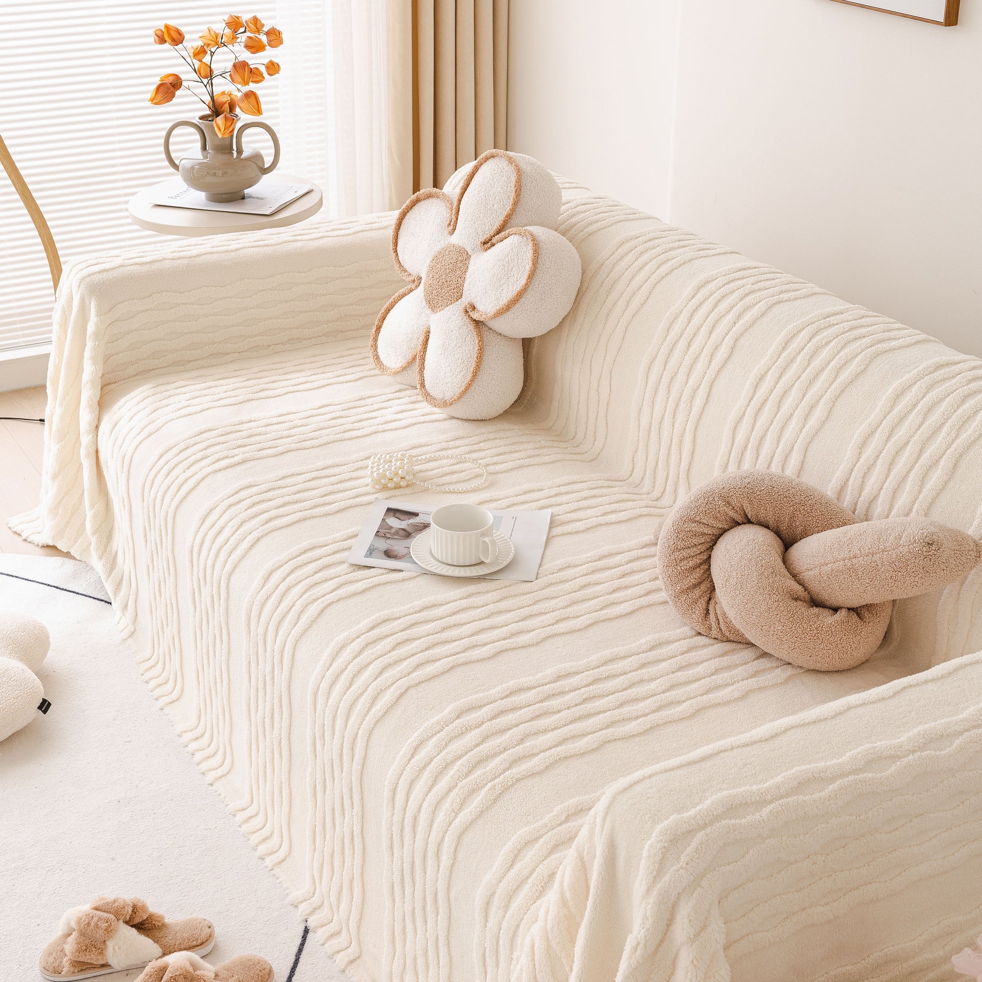 Modern 3D Water Ripple Sofa Cover, Non-Shedding Cream Style Furniture Protector Throw