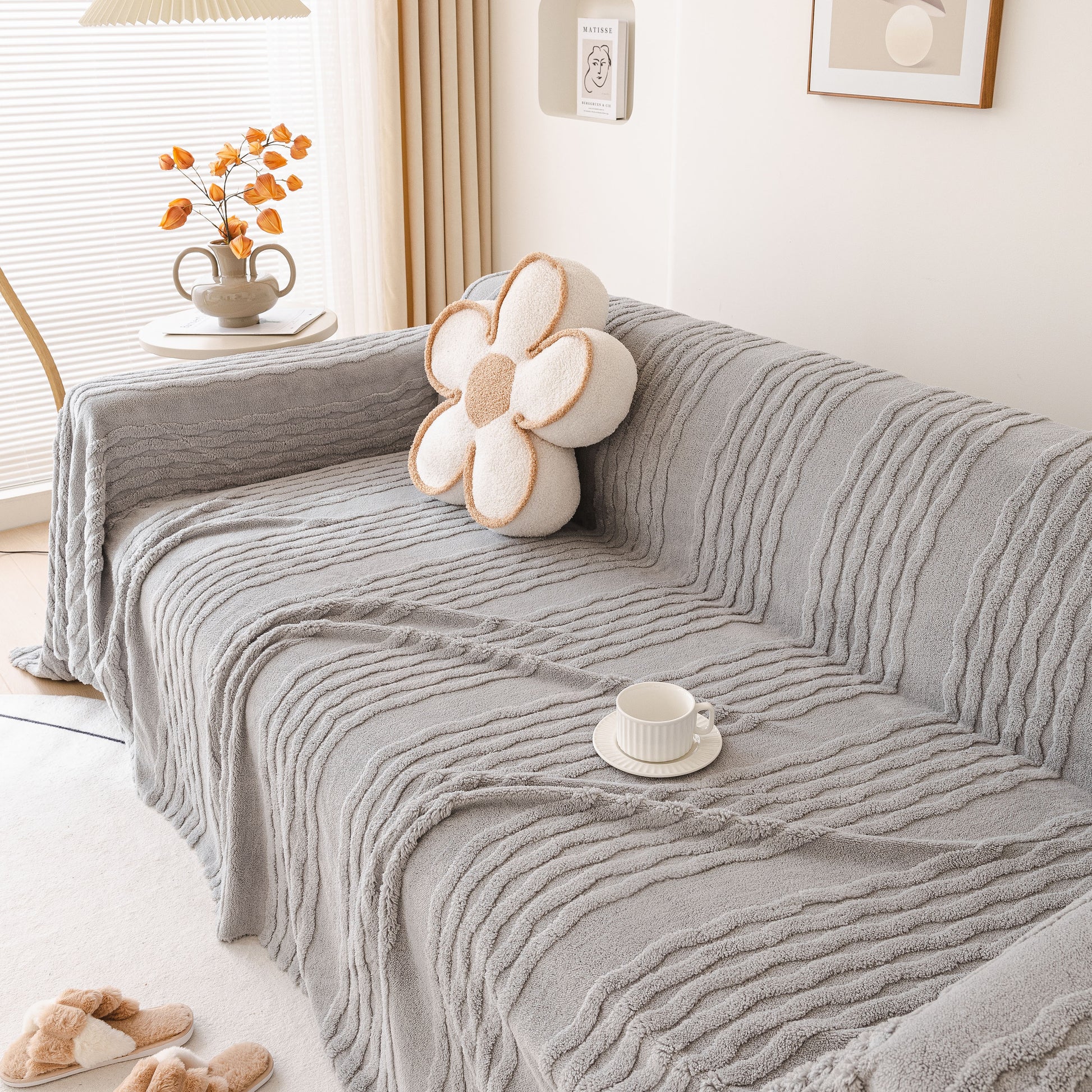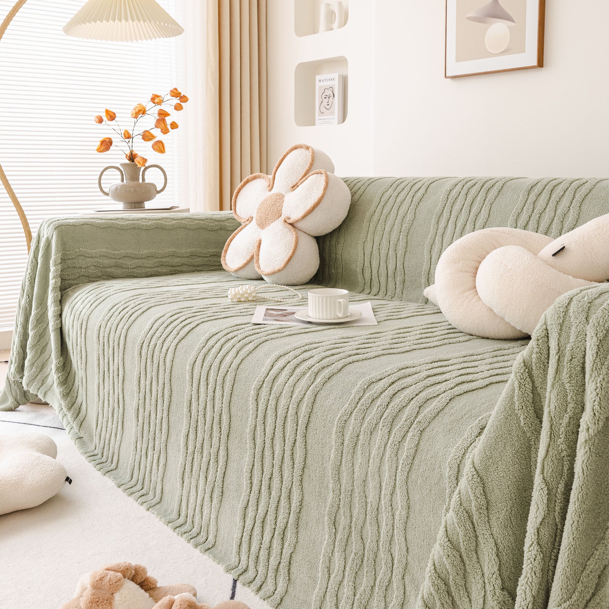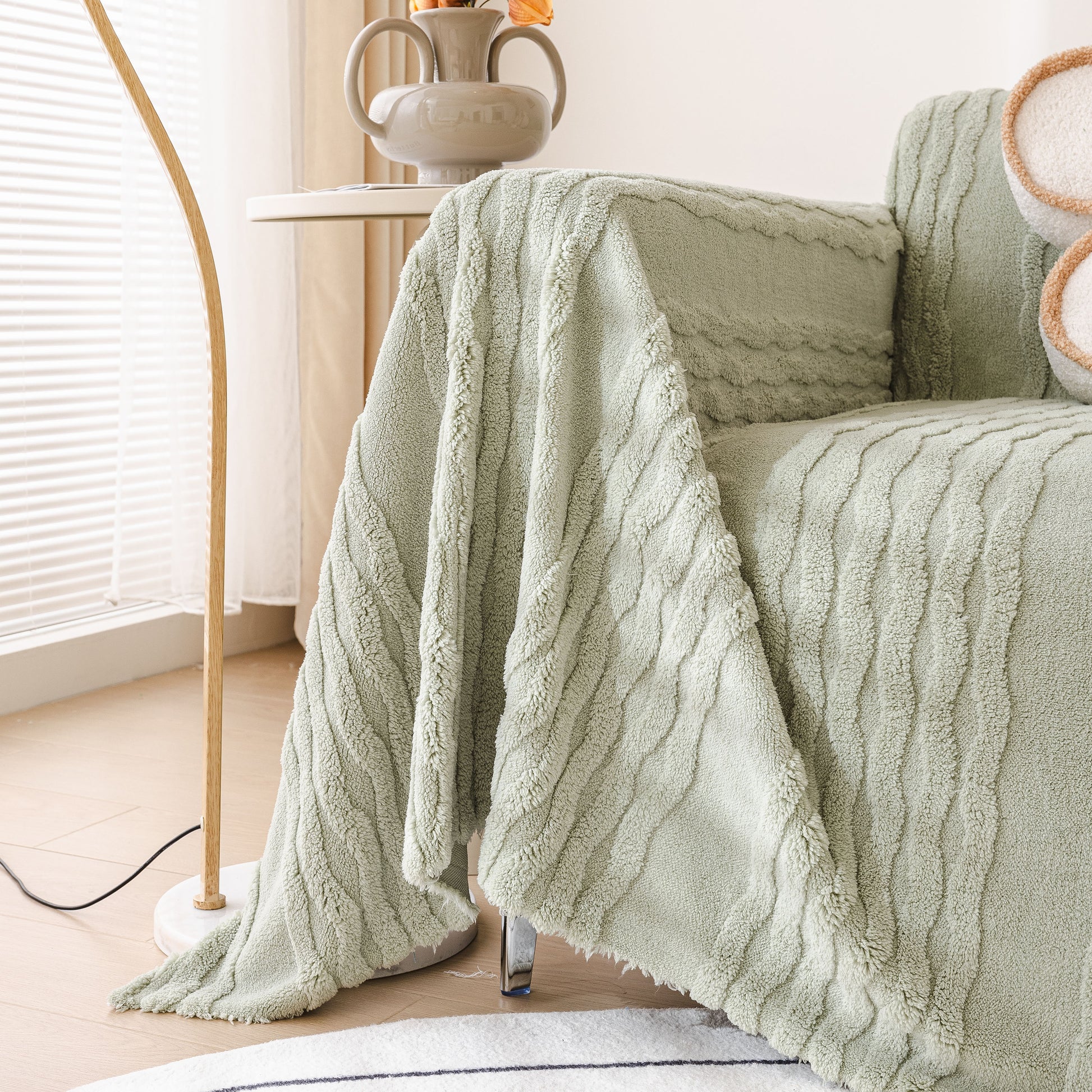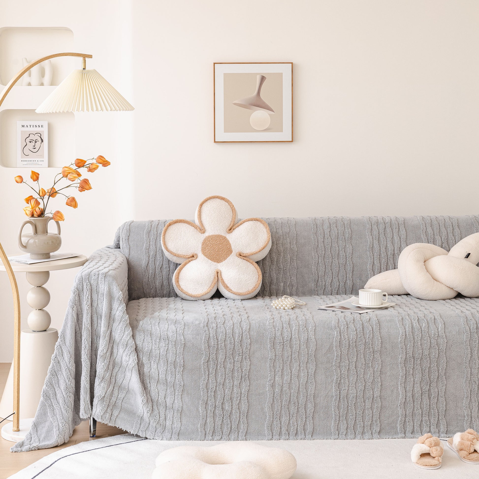 Modern 3D Water Ripple Sofa Cover, Non-Shedding Cream Style Furniture Protector Throw