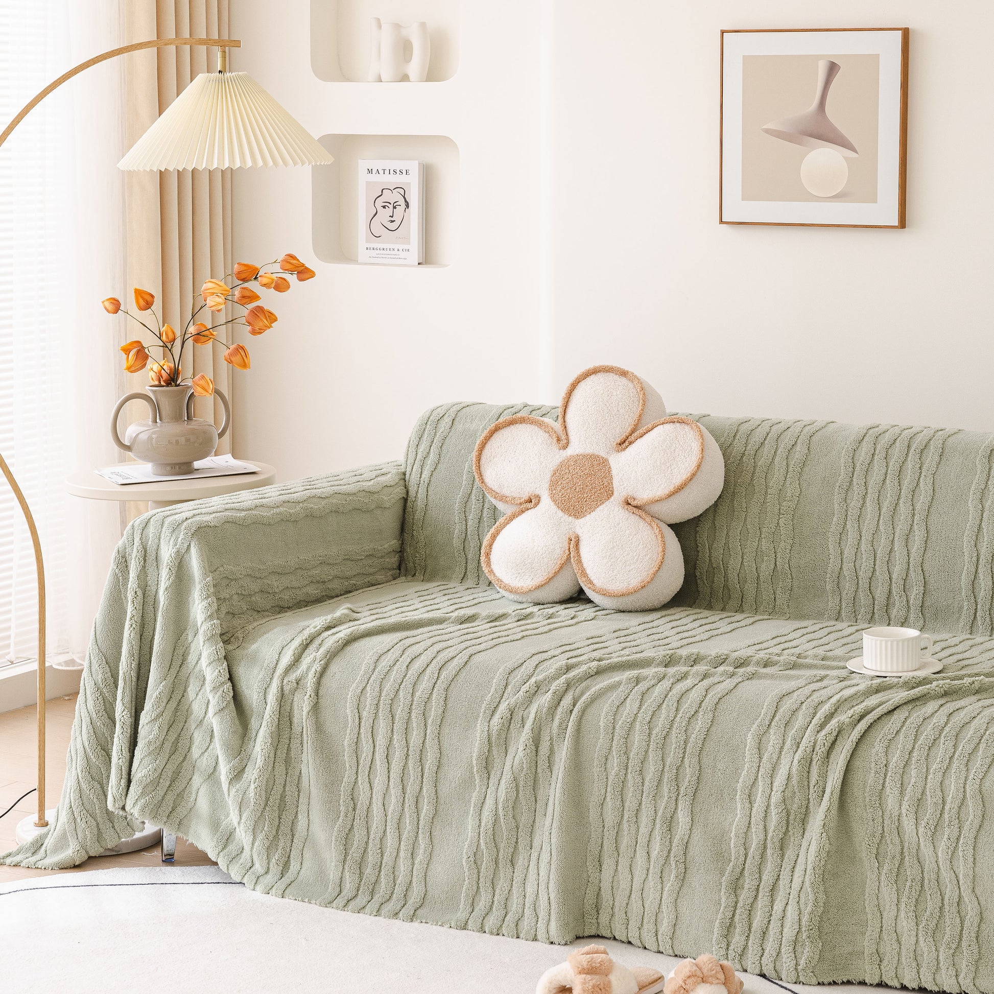 Easy to Install: Forget about complicated straps and foam sticks. This "throw-and-go" cover embraces a lazy, casual installation method. Simply drape it over your couch, tuck the excess fabric into the gaps for stability, and let the fringed edges hang naturally. It instantly refreshes old furniture and protects new sofas from pet fur, scratches, and cookie crumbs.