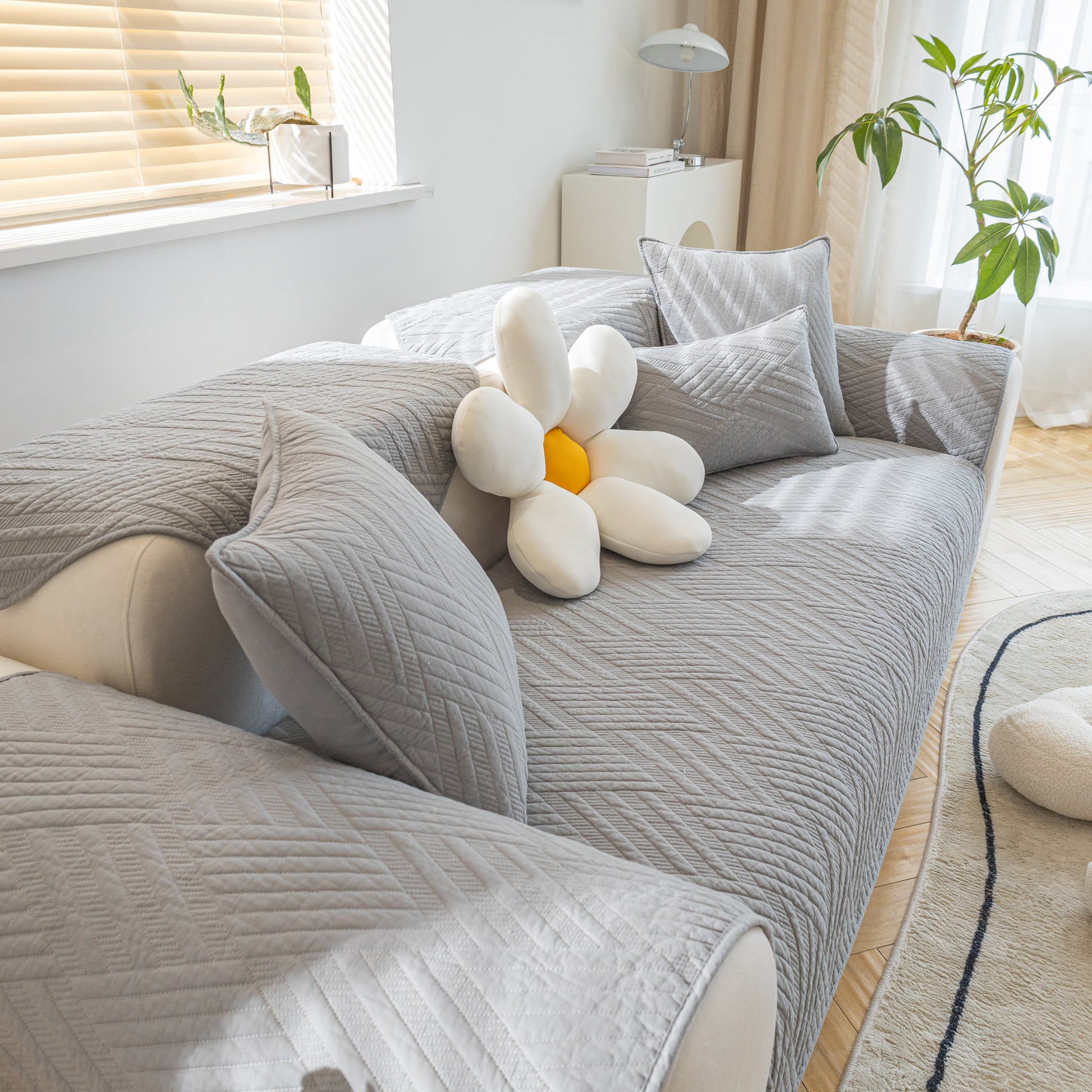 Quilted Geometric Cotton Sofa Cover, Non-Slip & Thick Padded Furniture Covers