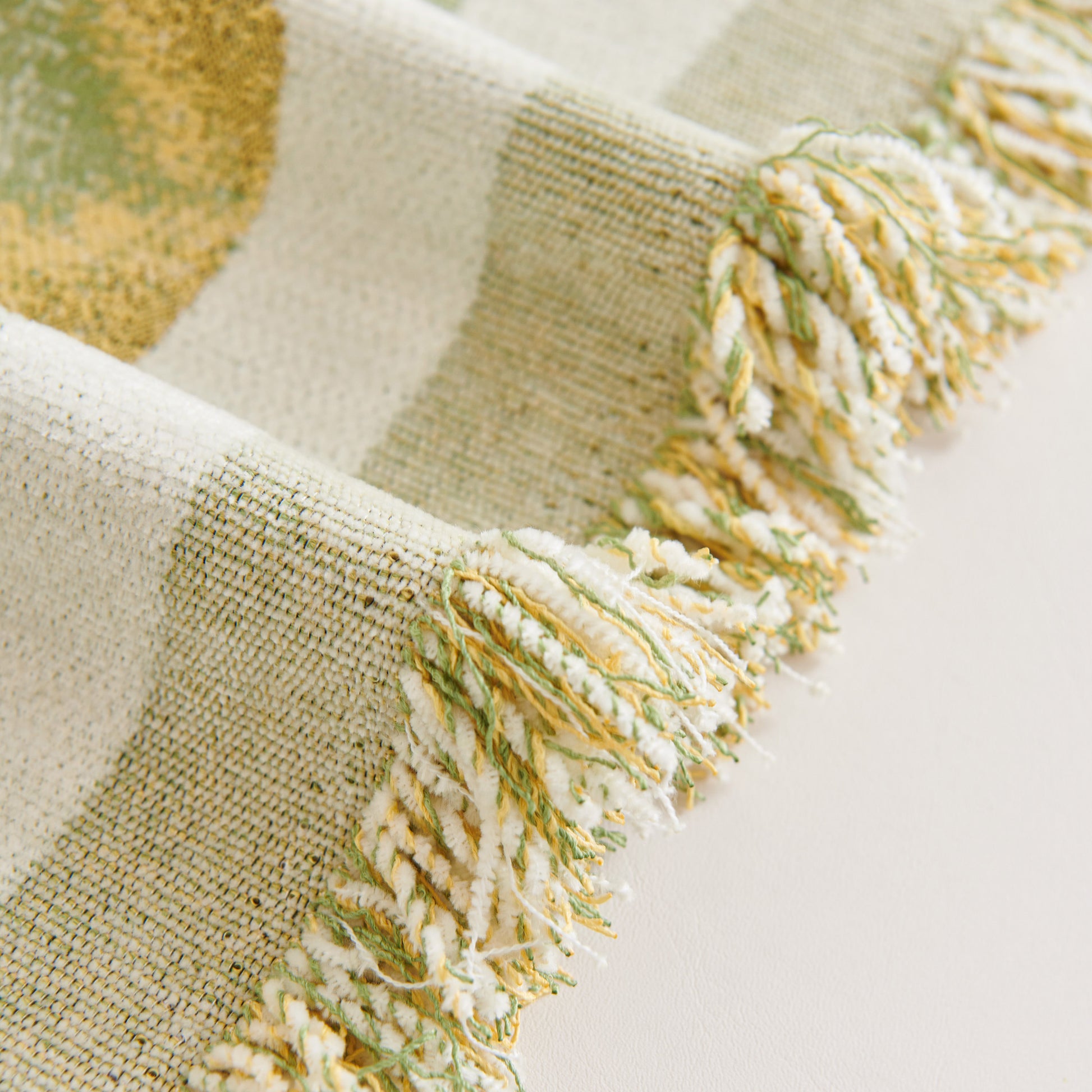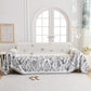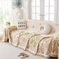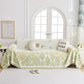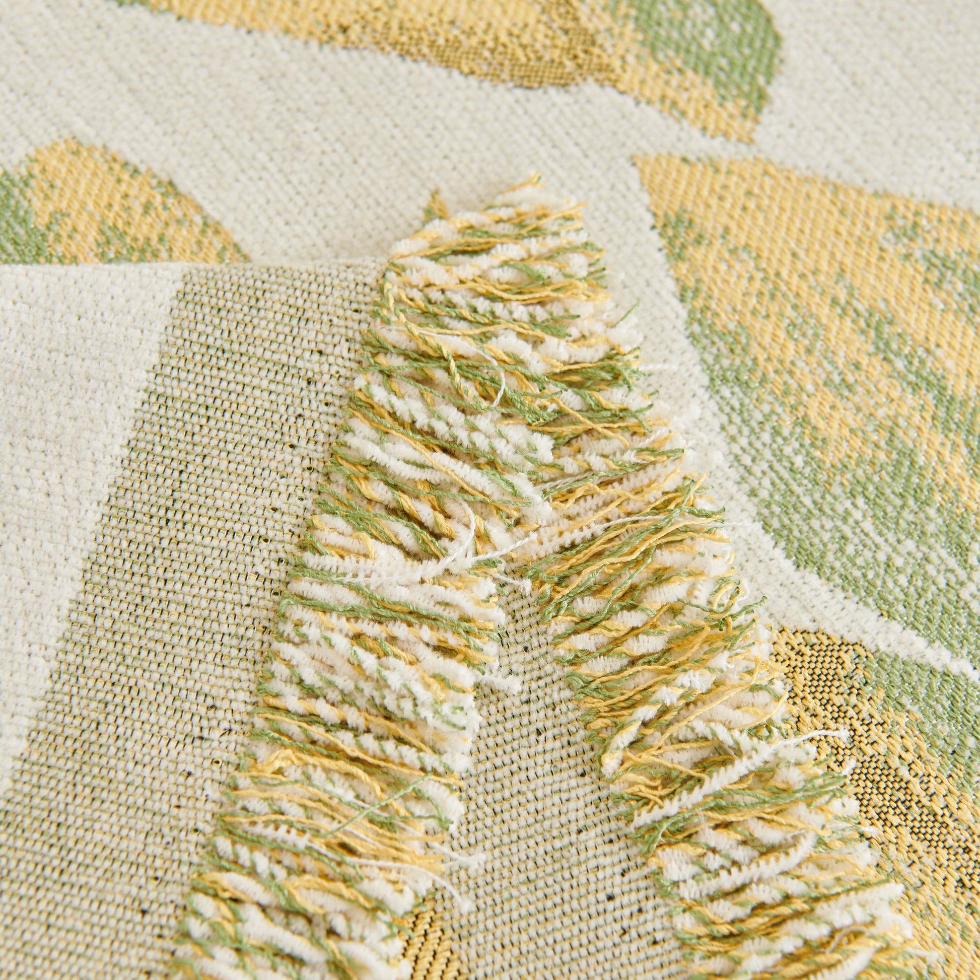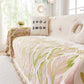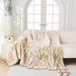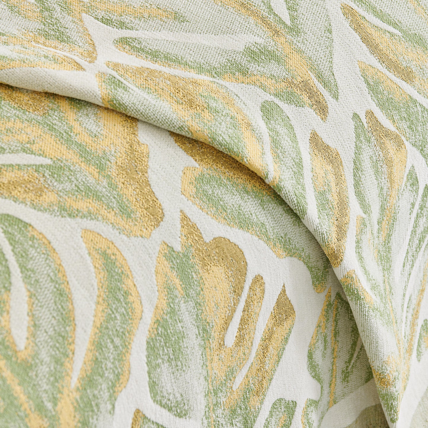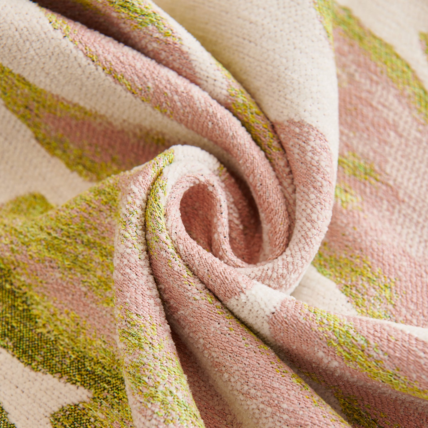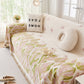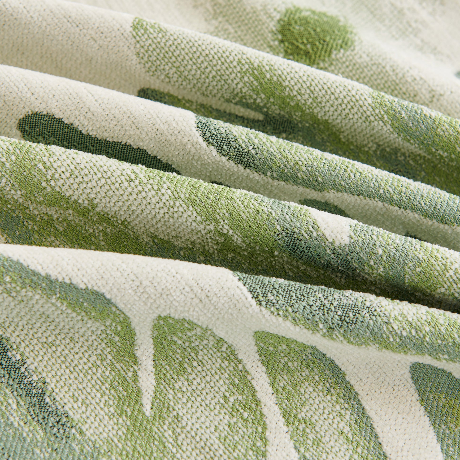 A parte da frente exibe um padrão de folhas em grande escala com uma estética pintada à mão, adicionando um toque de charme natural ao seu espaço. Projetado para cobrir a maioria das superfícies de sofás, ajuda a proteger contra poeira, manchas e marcas de garras. Versátil no uso, também funciona bem como um corredor de cama, manta para sesta ou tapete decorativo.