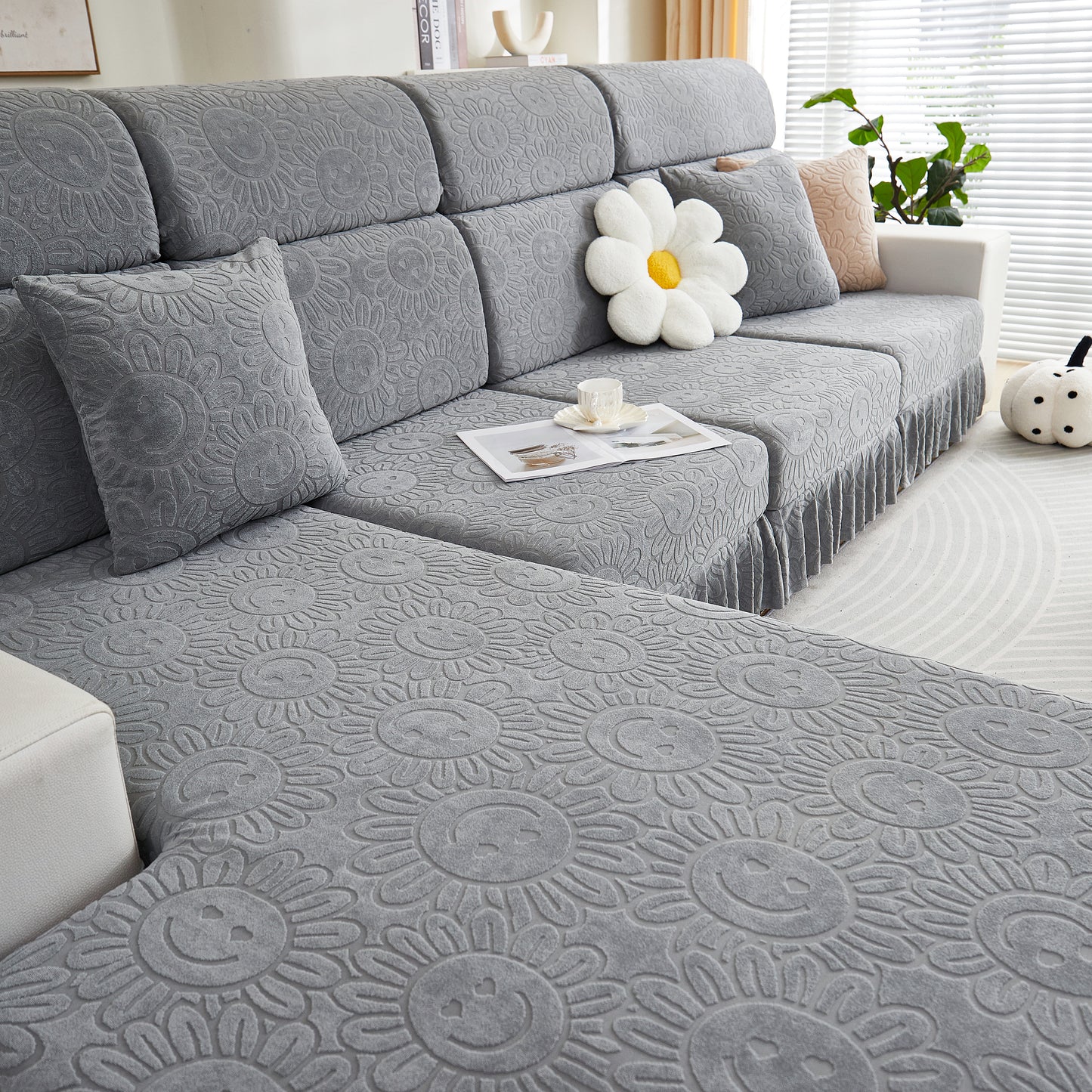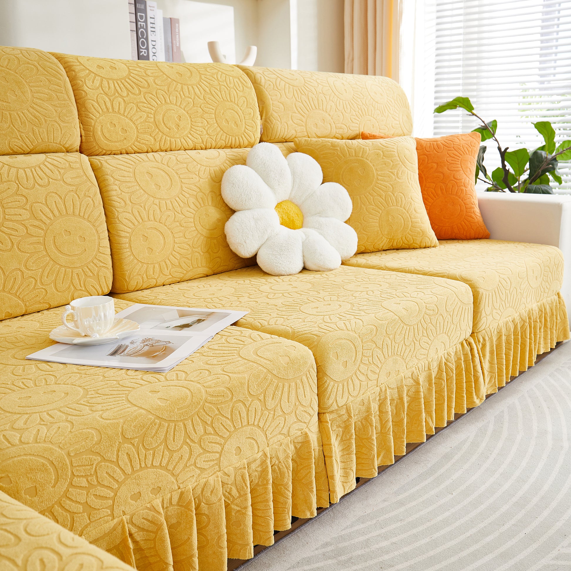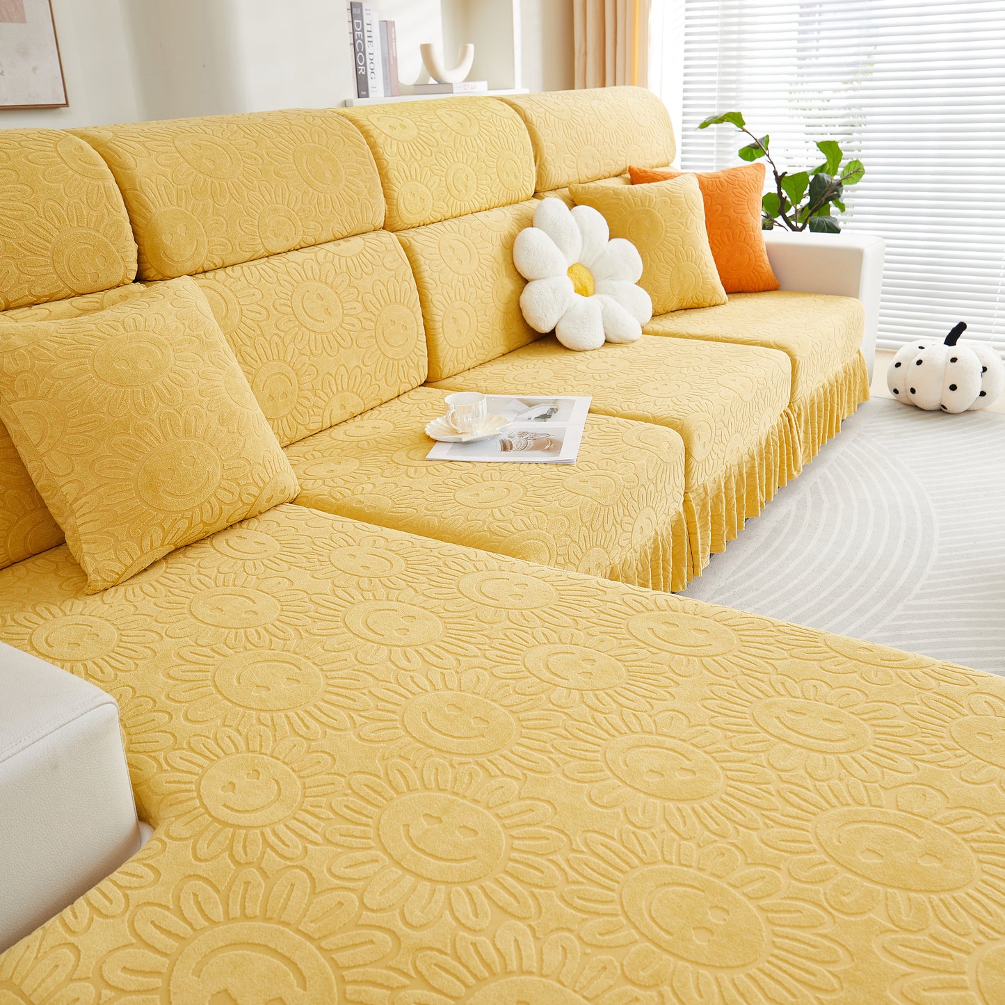Sofföverdrag, solrosmönstrade elastiska soffkuddöverdrag för 1/2/3/4-sits soffor