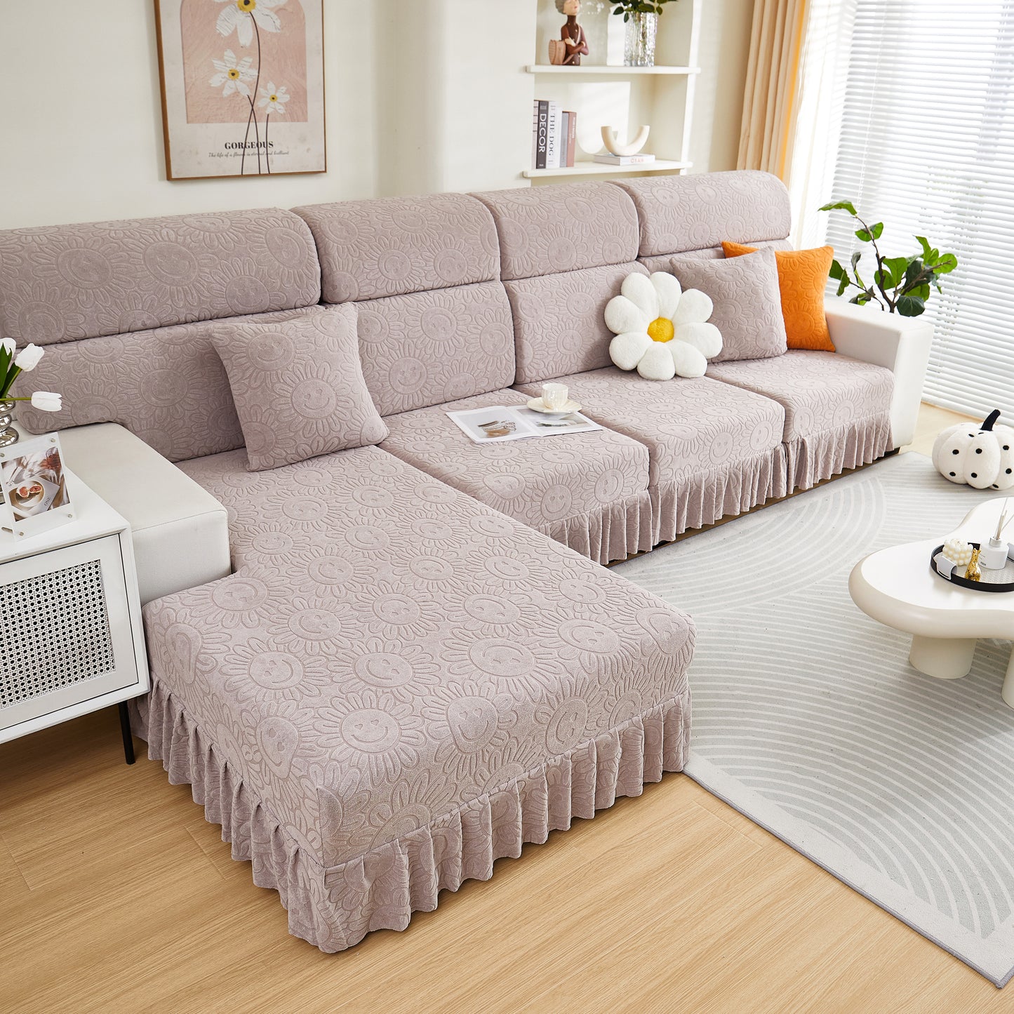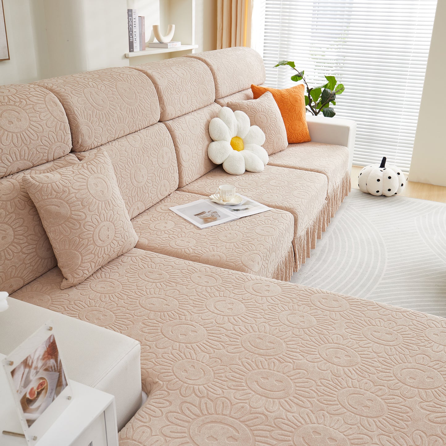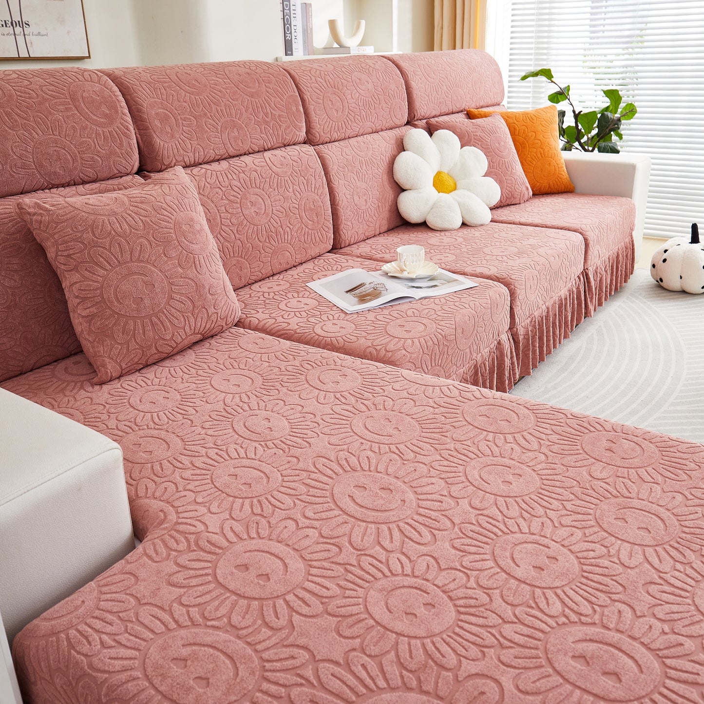 Sofföverdrag, solrosmönstrade elastiska soffkuddöverdrag för 1/2/3/4-sits soffor